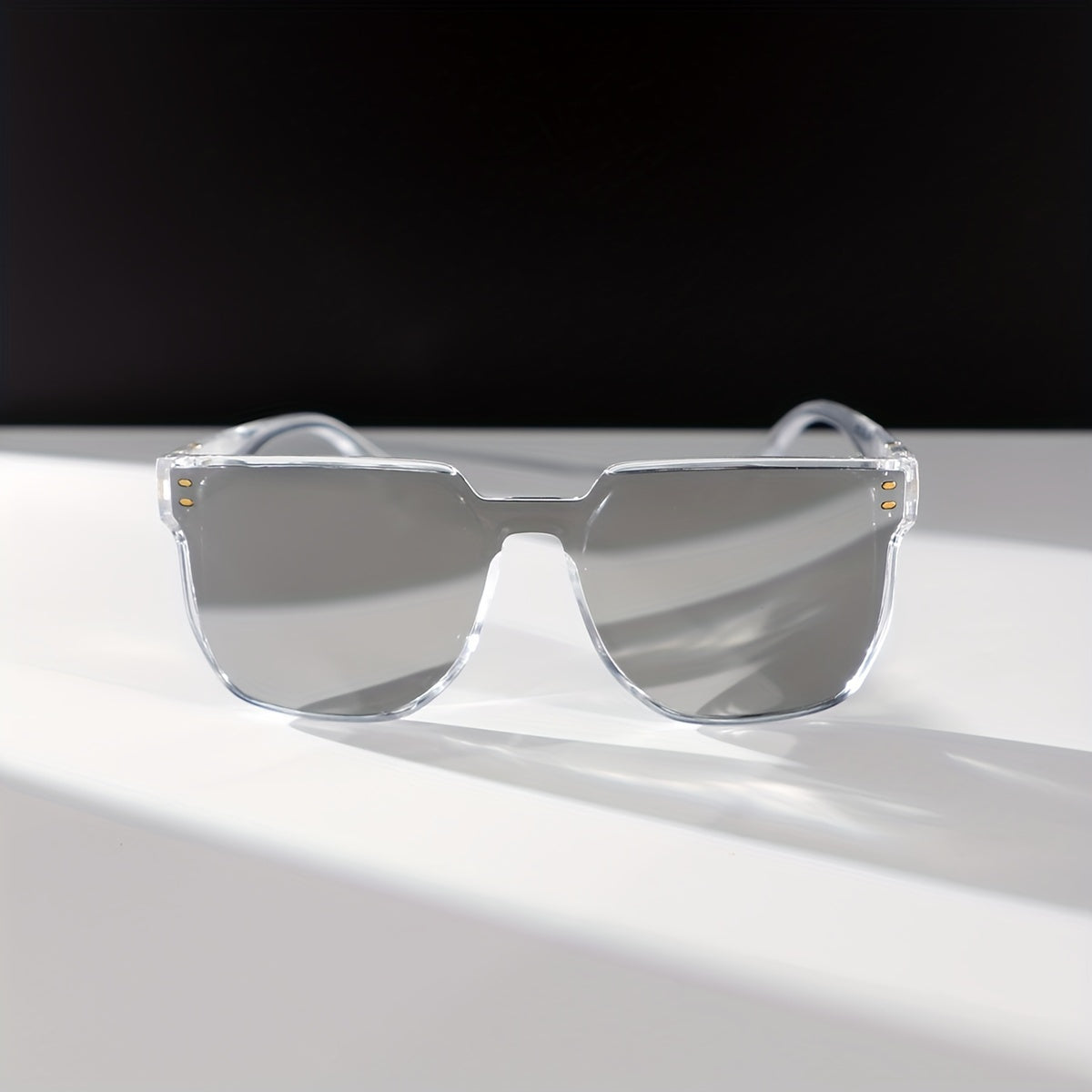 1 Pair of Women's Transparent Silvery Mirror Reflective Square Frame Modern Fashion Casual Glasses with Rice Nails