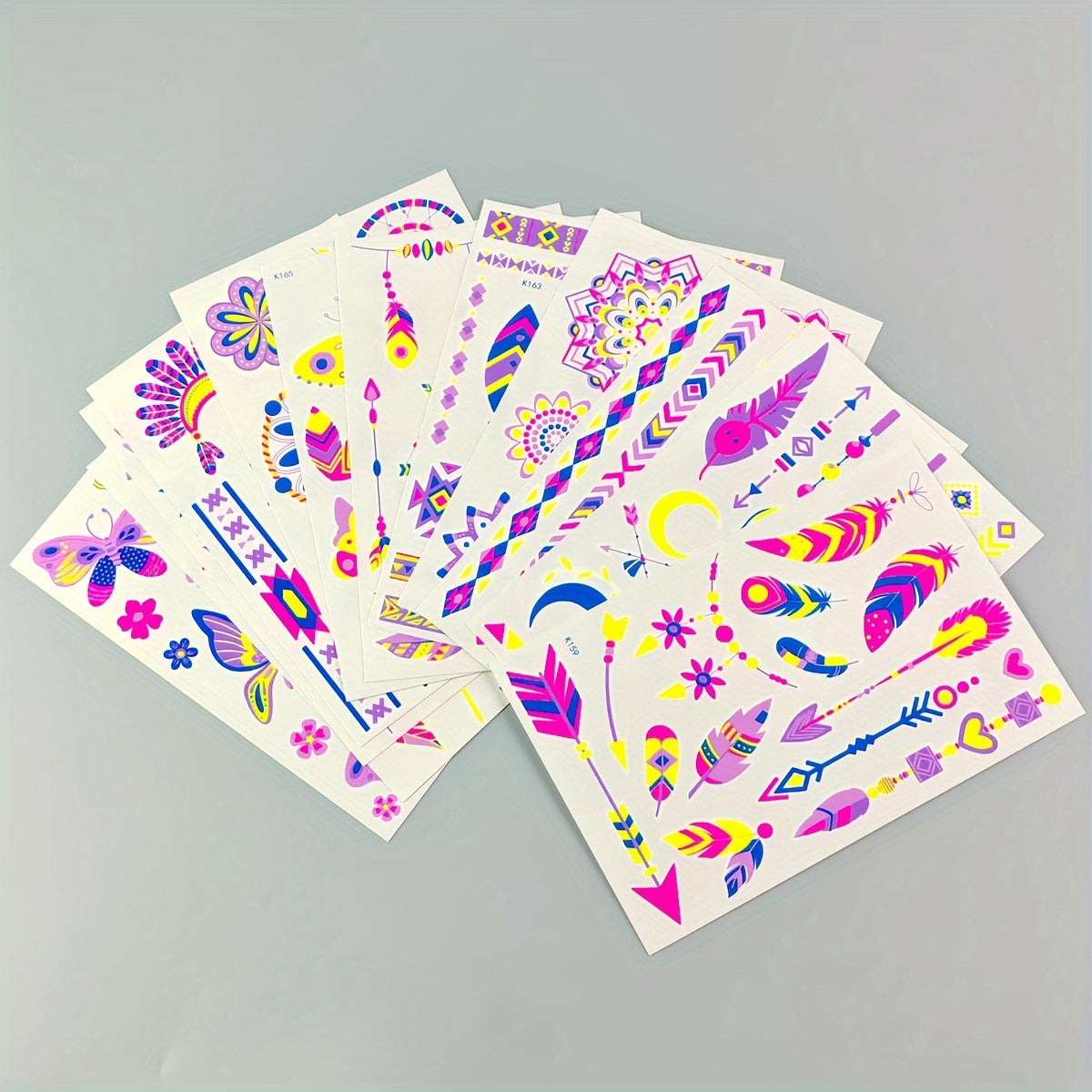 12 Sheets NeonGlow in the Light Temporary Tattoos