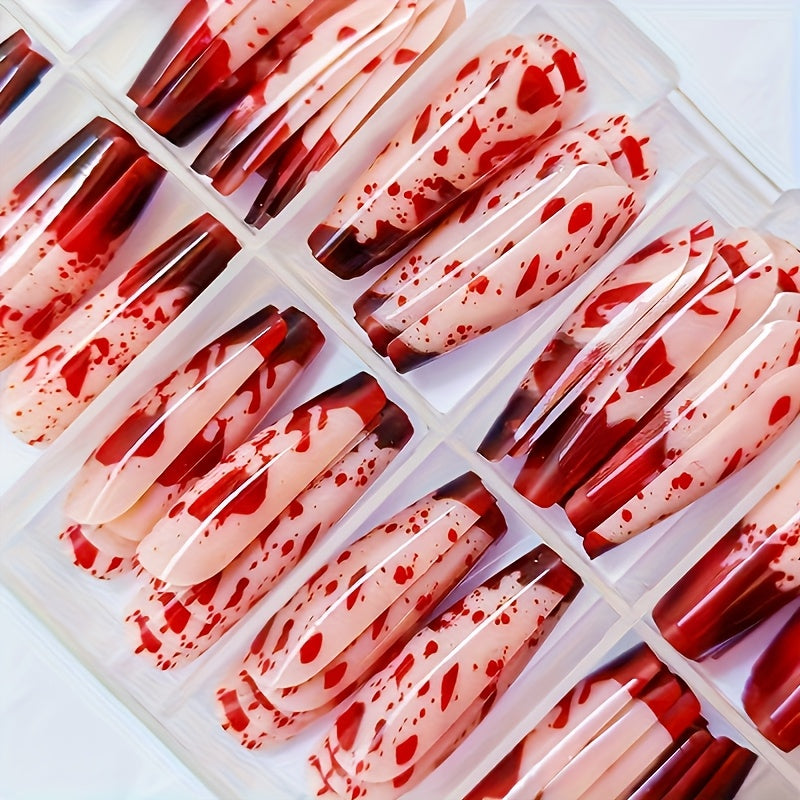 120pcs Blood Red Gothic Nail Extensions Kit - Long Full Set Press On Nails with Dripping Blood Effect, Glossy Fake Nails & Liquid Red Polish for Halloween, Parties, Casual Attire - Easy Application, Comfortable & Durable (120