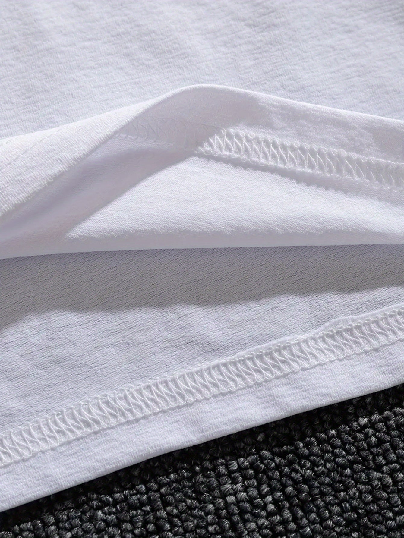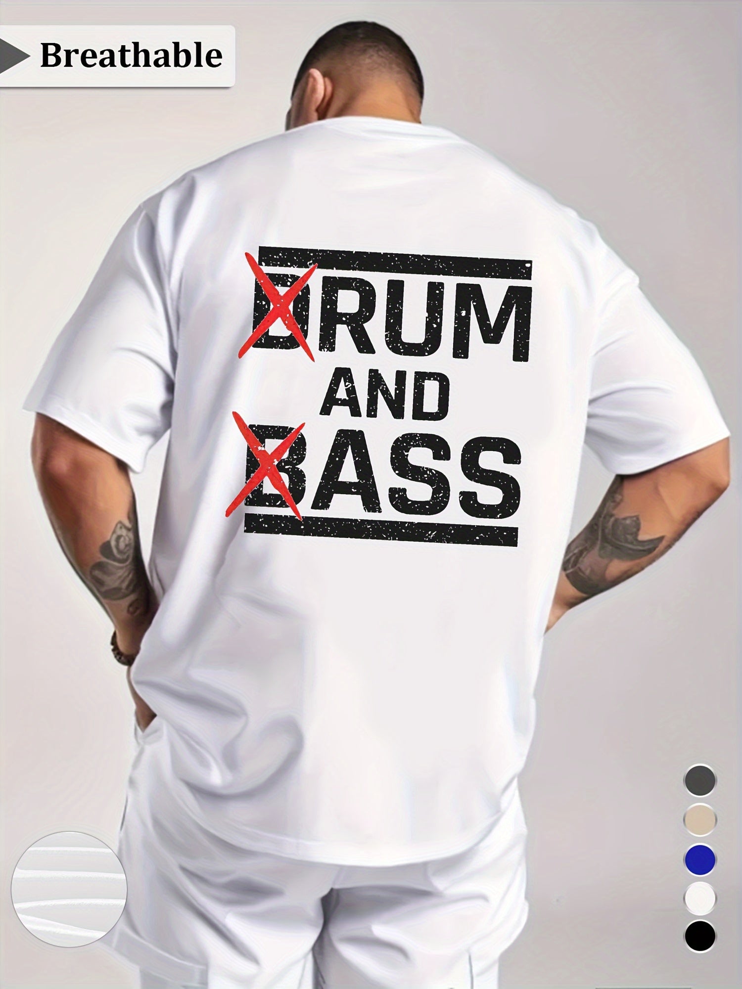 1pc Men'S Casual Crew Neck T-Shirt - Polyester Knit Fabric with Medium Stretch, Short Sleeve Print Top for Going Out, Summer Season - Regular Fit H Tee with "Drum & Bass" Slogan Design
