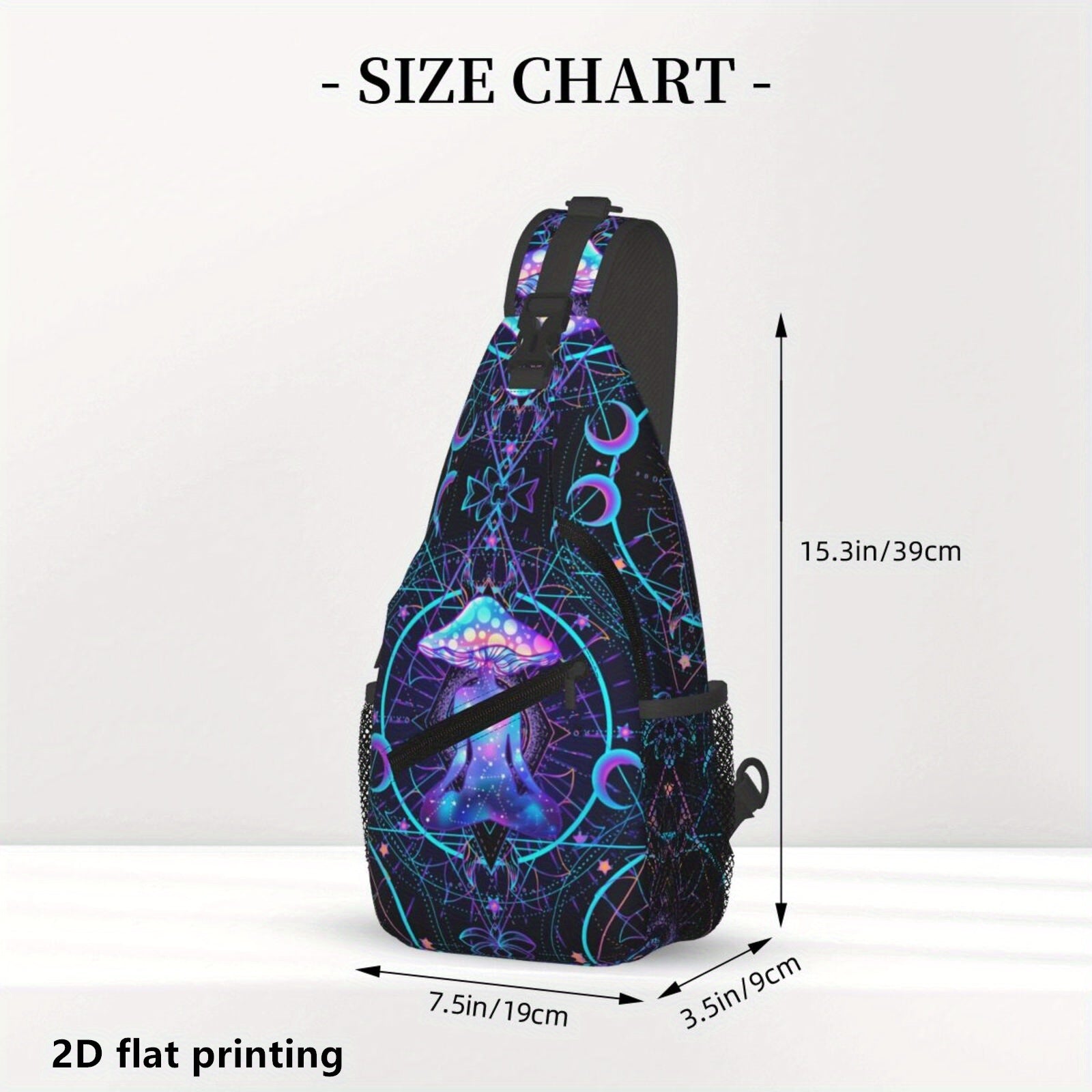 1pc Neon Mushroom Print Crossbody Chest Pack - Psychedelic 2D Flat Printing, Durable Polyester with Zipper Closure & Adjustable Strap for Outdoor Hiking, Cycling, Travel - Women's Fashionable Lightweight Daypack, Cycling Gear