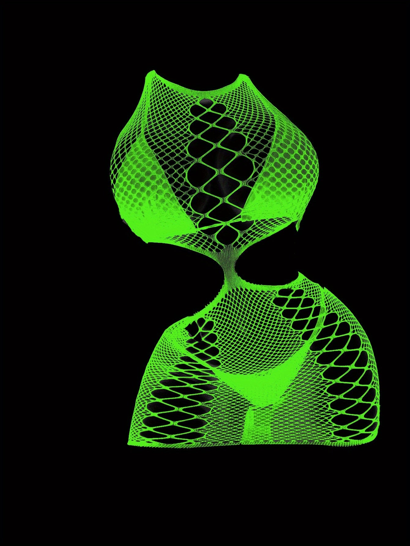 1pc Sexy Women's Glow at Night Fishnet Cover Up Without Bikini - High Elasticity Bodycon Dress with Hollow Out Cutouts, See-Through Beachwear for Music Festivals, Summer Vacations & Night Out, Festival Attire, Bodycon Fashion
