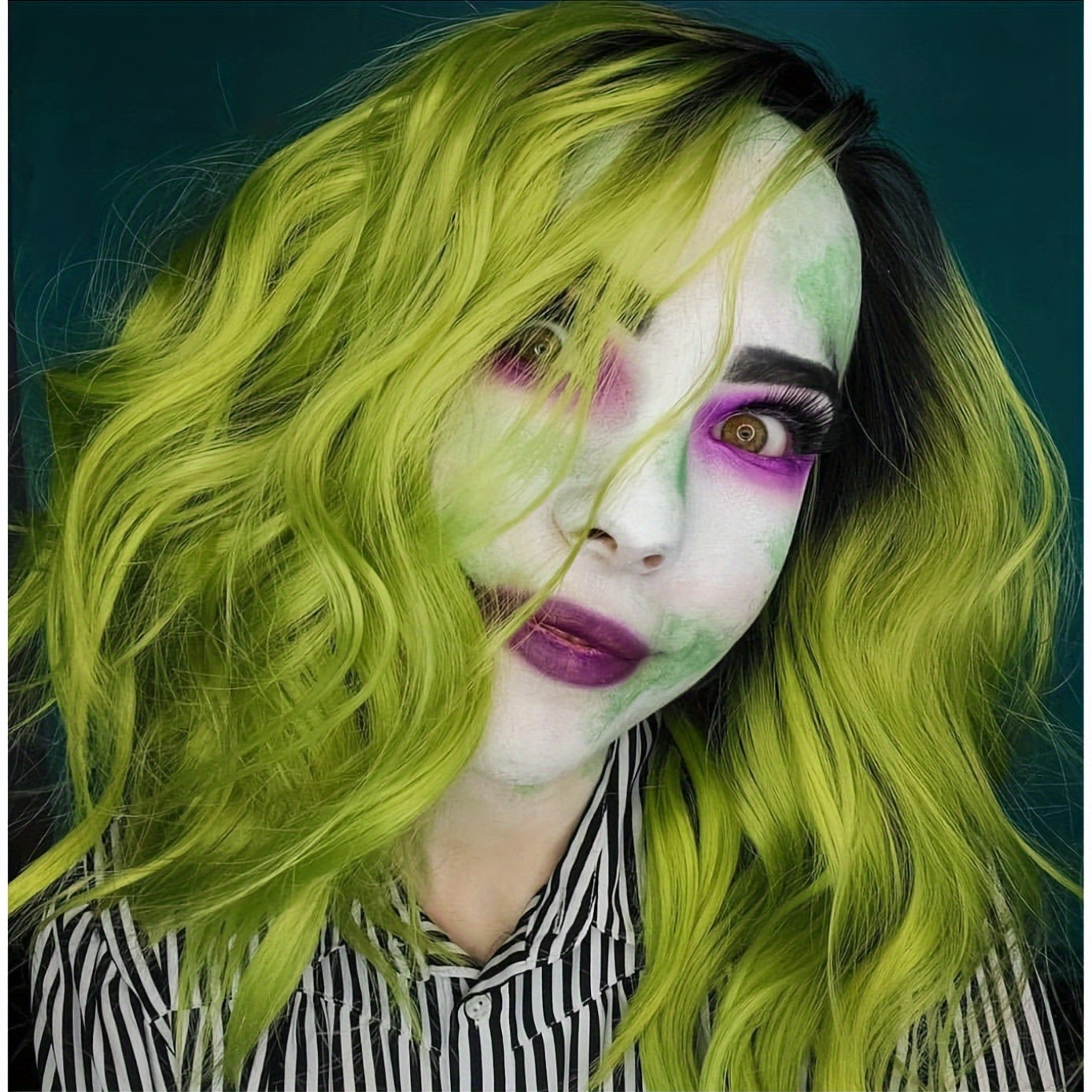 1pc Women'S Cosplay Curly Wave Wig, High Temperature Fiber, Medium Parted Mixed Color, Rose Net Cap, Long Hair for Festival and Party Wear