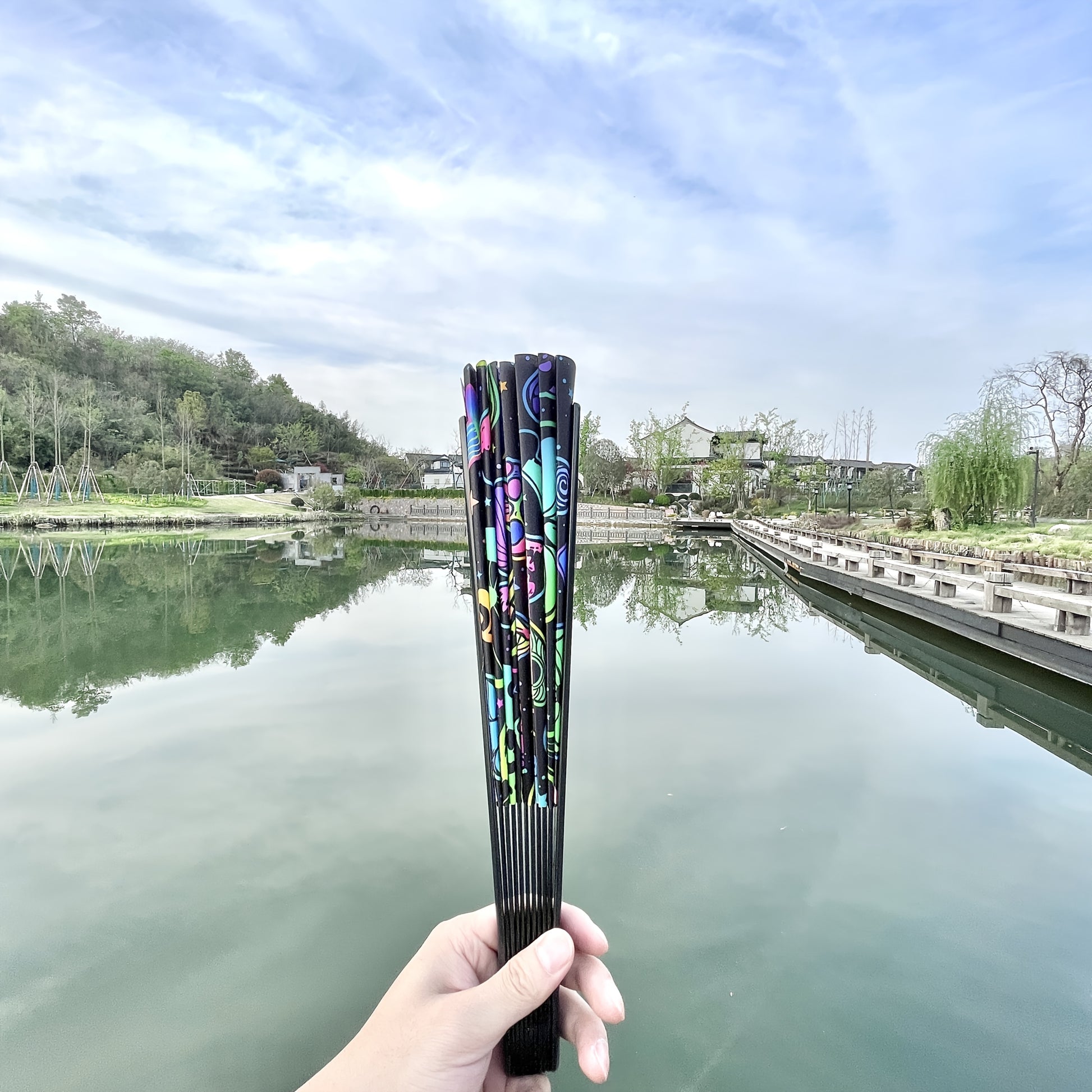 33.02cm UV Glow Carnival Folding Fan - Vibrant Neon Mushroom & Butterfly Design, Durable Plastic, Perfect for Parties, Festivals, and Gifts, Handheld & Button Operated, Festive Accessory | Glow Party Fan | Durable Plastic Fan