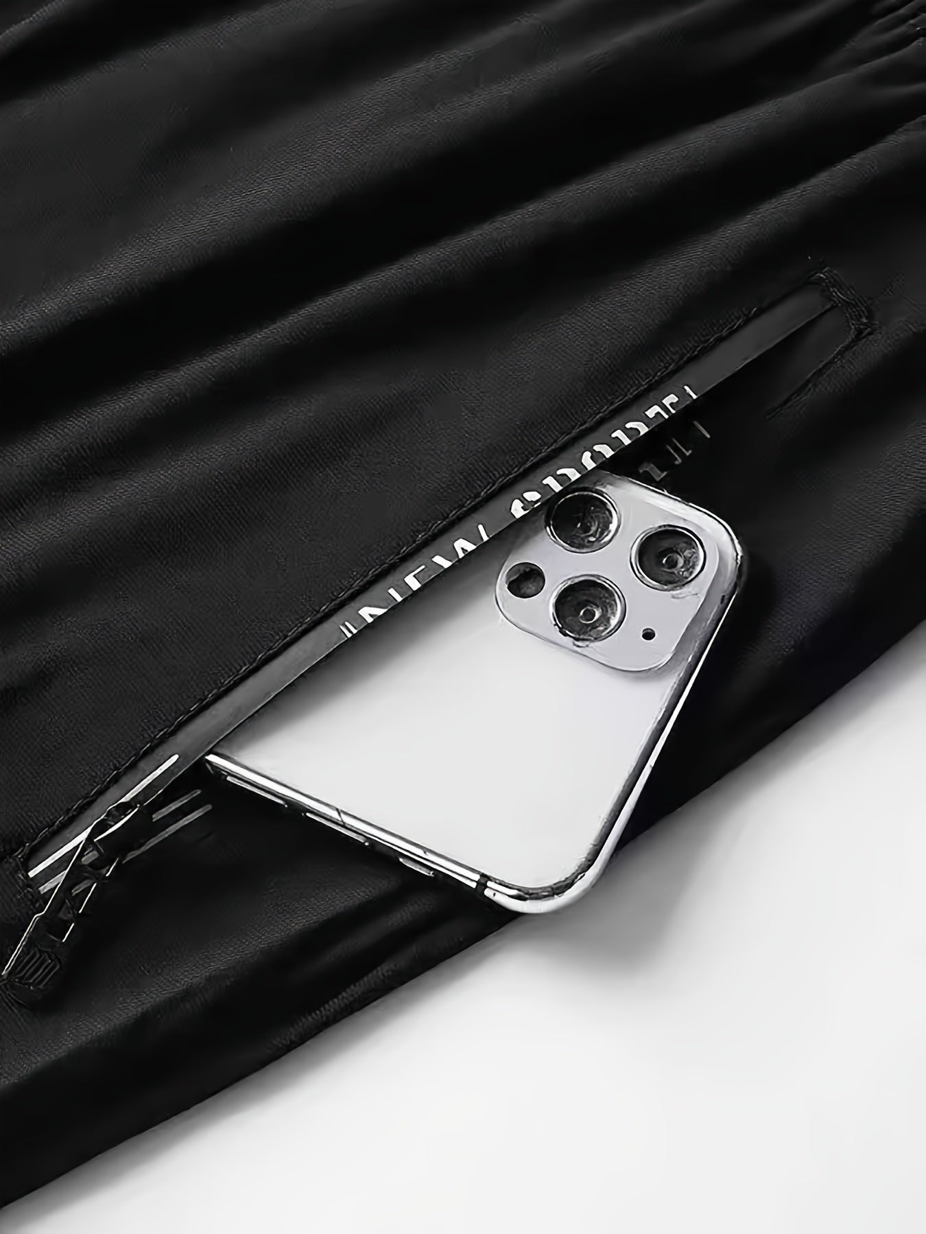 3pcs Men'S Lightweight Quick-Dry Running Shorts - Summer Casual Sport, Loose Fit, Zipper with White Accents, Elastic Waistband, Zipper Pockets, Polyester and Spandex Blend, Large Size