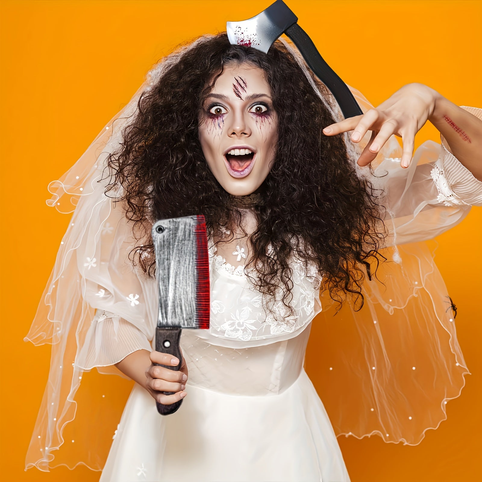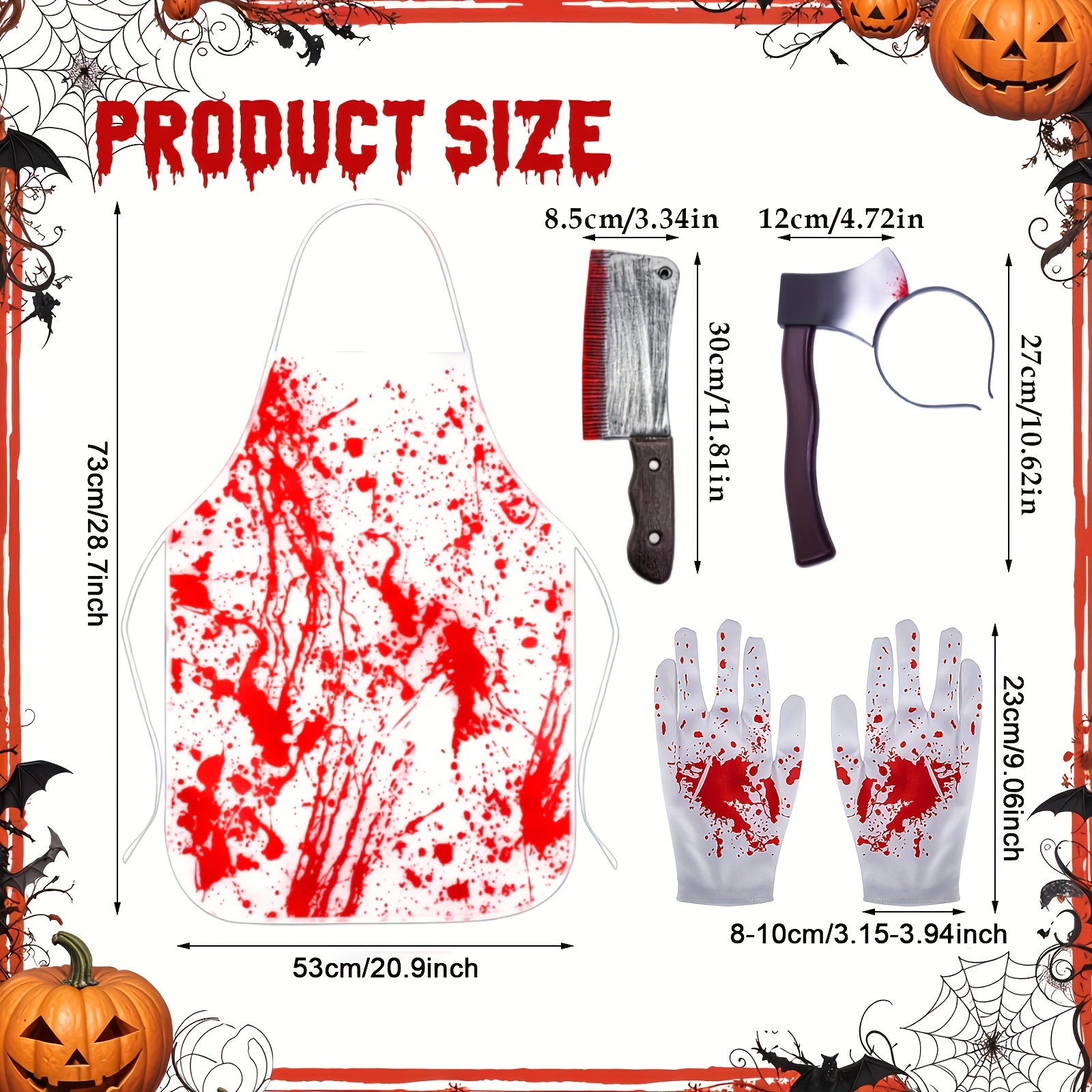 4pcs Bloody Butcher Costume Accessories Set for Men and Women, Including Axe Headband, Apron, Gloves, Fake Cleaver for Scary Party Fright Night and Halloween Party