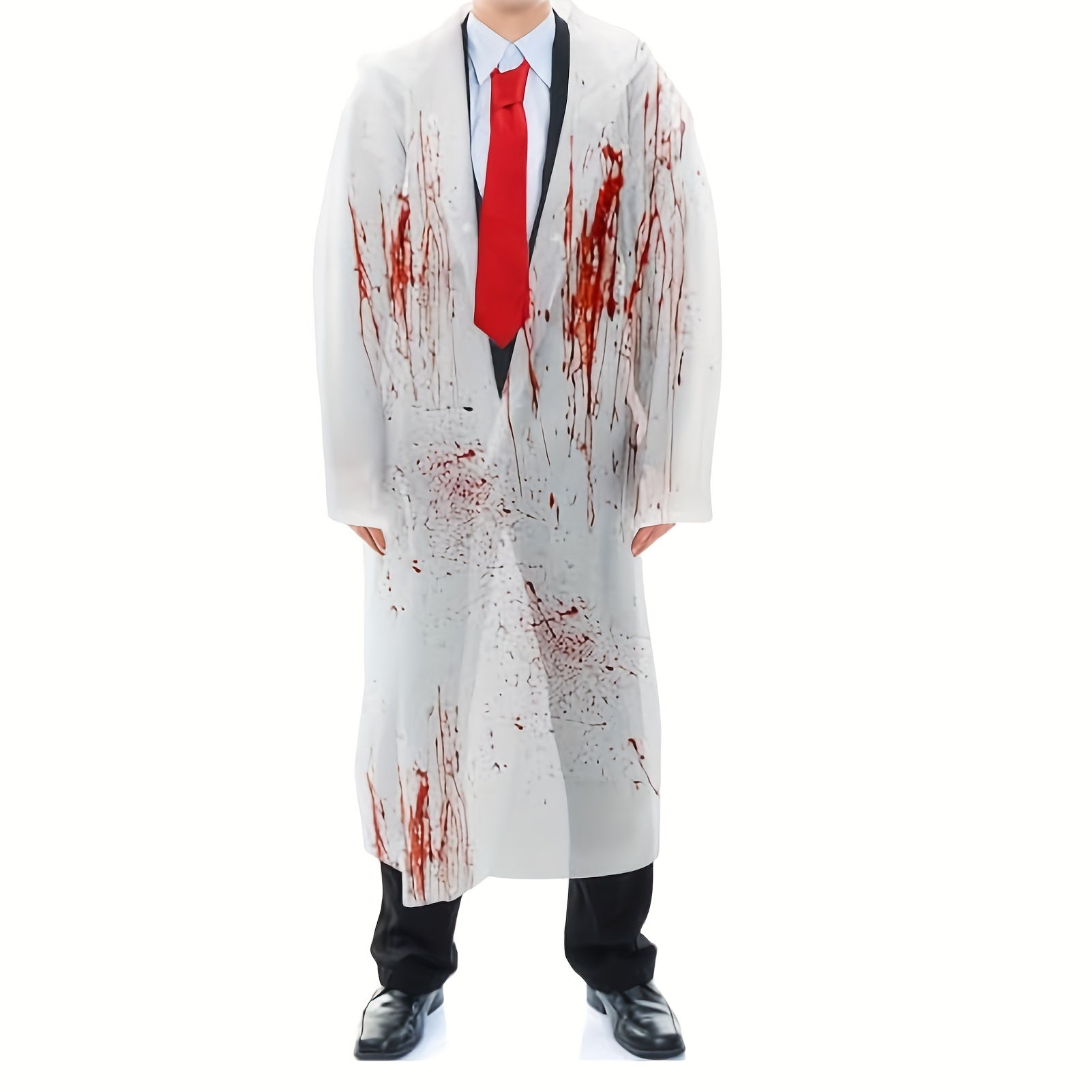 7pcs Halloween Zombie Costume Set, Raincoat with No Print, Requires DIY, Includes Halloween Props Knife, Red Tie, Suitable for Cosplay Role Play Party