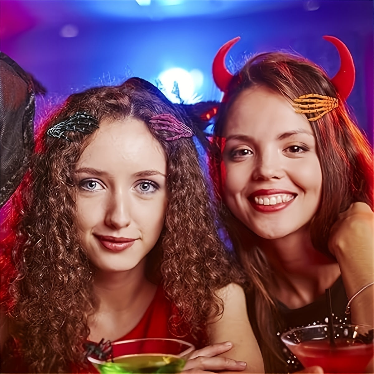 8pcs Skull Hair Clips - Colorful Skeleton Claw Clips, Punk Rock Horror Style Hair Accessories, Halloween Party Gift, Fun Hairstyle Add-Ons