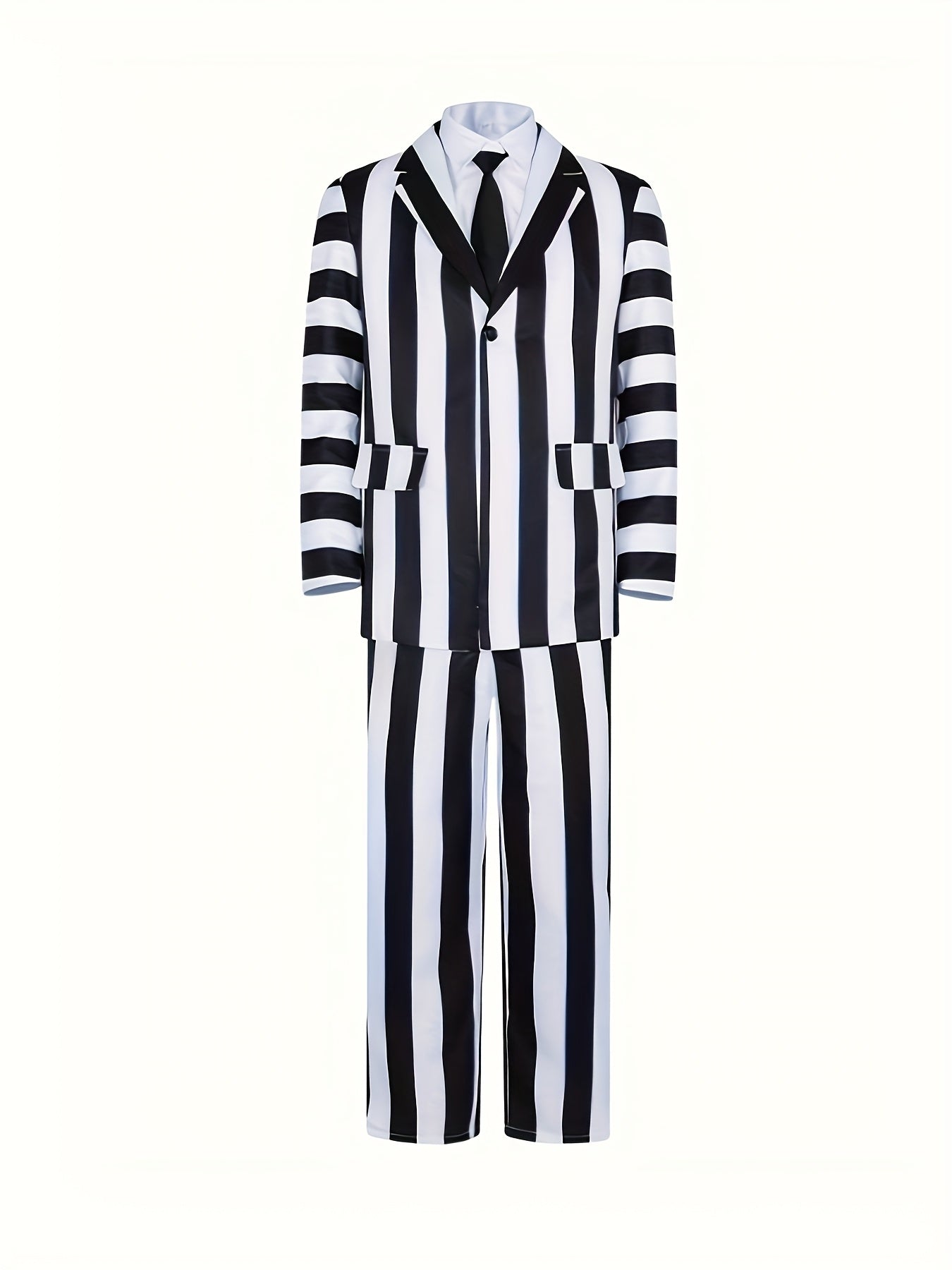 Adam Role Play Costume Men'S Black and White Striped Suit Jacket Shirt Pants Set Halloween Carnival Cosplay Anime Costume