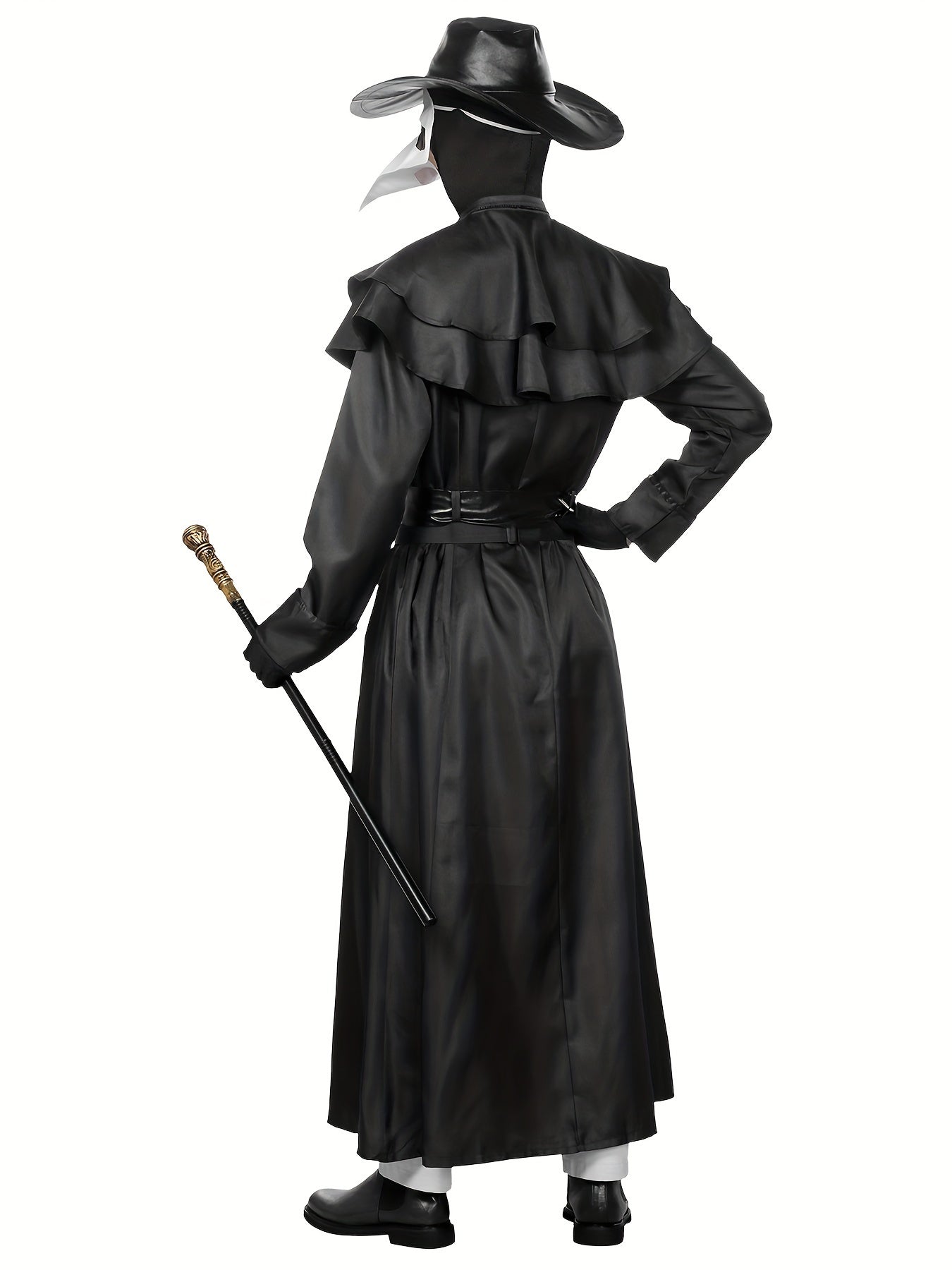 Adult Men'S Steampunk Plague Doctor Costume - Halloween Medieval Monk Priest Renaissance Party Outfit with Cape, Robe, Mask, and Accessories - Polyester 100% Solid Color with Stand Collar and Belt - Regular Fit Woven Fabric 1