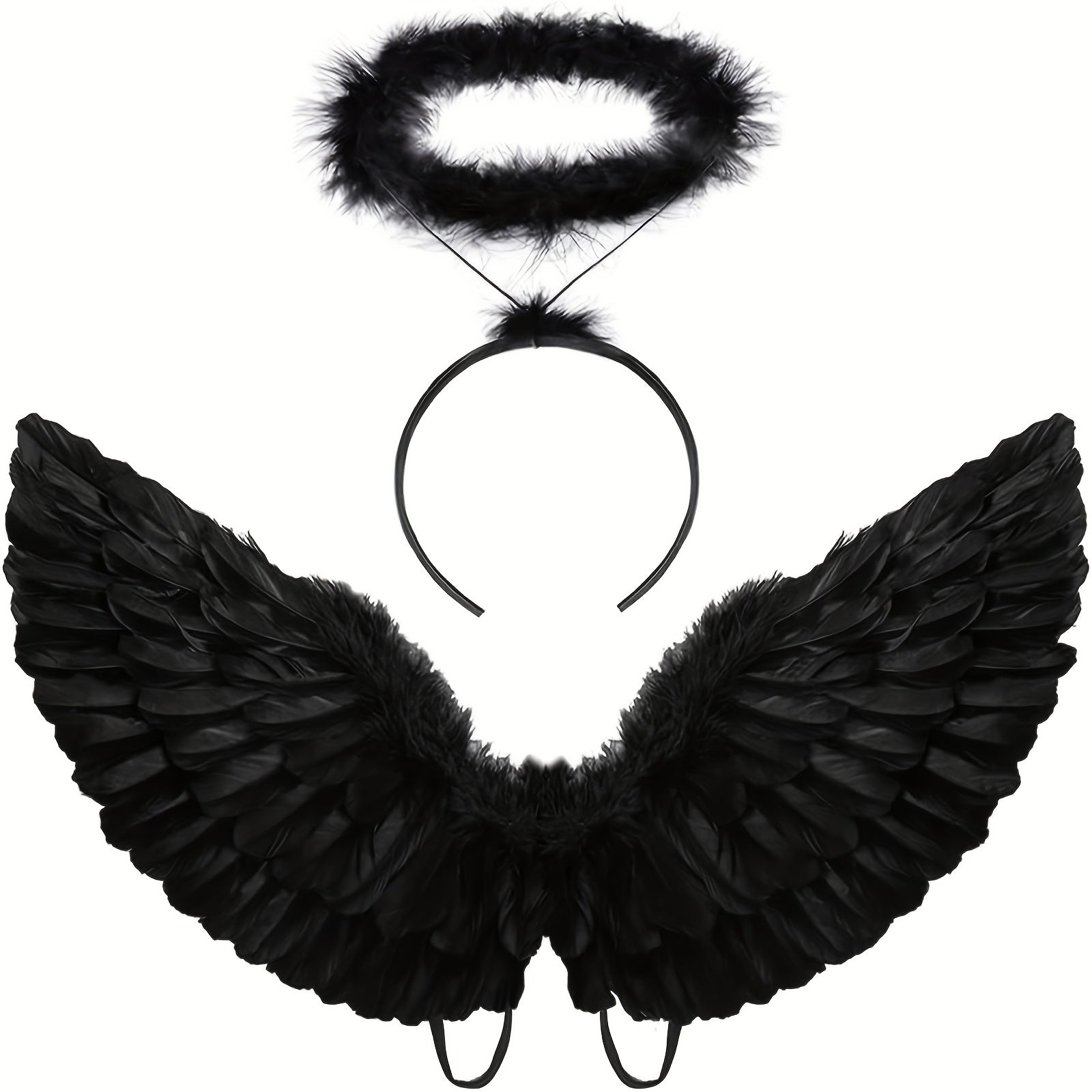 Angel Wings with Halo Costume - Black & White Halloween, Christmas, And Party Costume Accessory for Costume Parties, Halloween Costumes, Festive Attire, Elegant Design, Intricate Detailing for Halloween, Christmas Event & Par