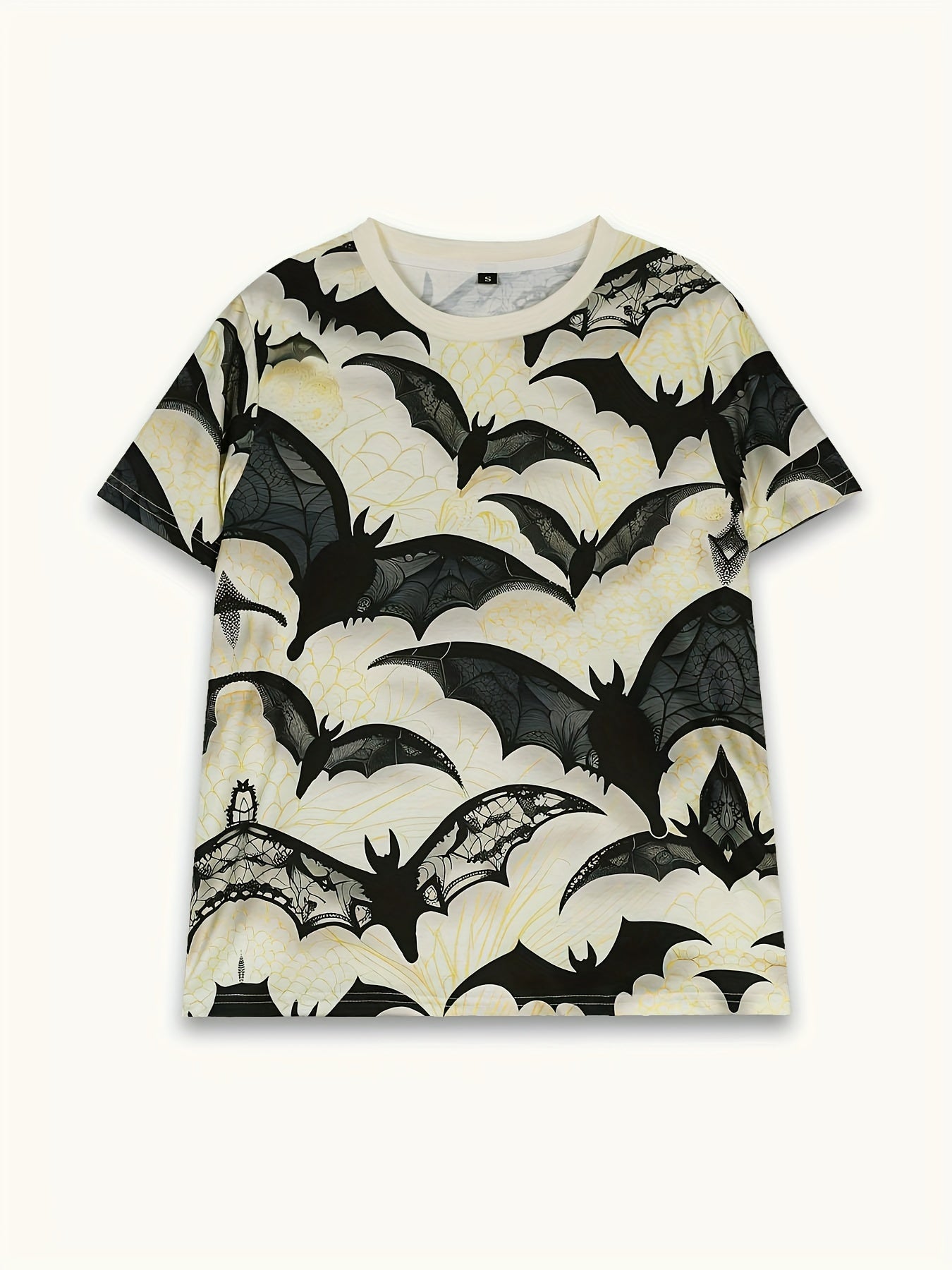 ![[Bat Print T-Shirt] Women's Breathable Casual Bat Print Round Neck T-Shirt | Dark Series Full-Body Bat & Spiderweb Design, Black & Yellow Contrast, Short Sleeve Top for Spring/Summer, Machine Washable, Nontransparent Fabric](http://clubbingclobber.com/cdn/shop/files/62fc8ff9-b12d-4987-941c-23a487035c25.jpg?v=1756818552&width=1445)