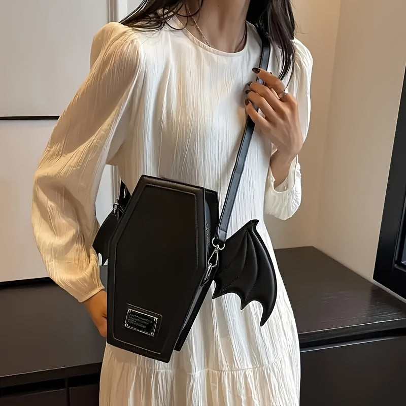 Black Punk Style Bat Wing Backpack - Adjustable Straps, Zipper Closure,, Gothic Coffin Design for Halloween, Parties & Casual Use