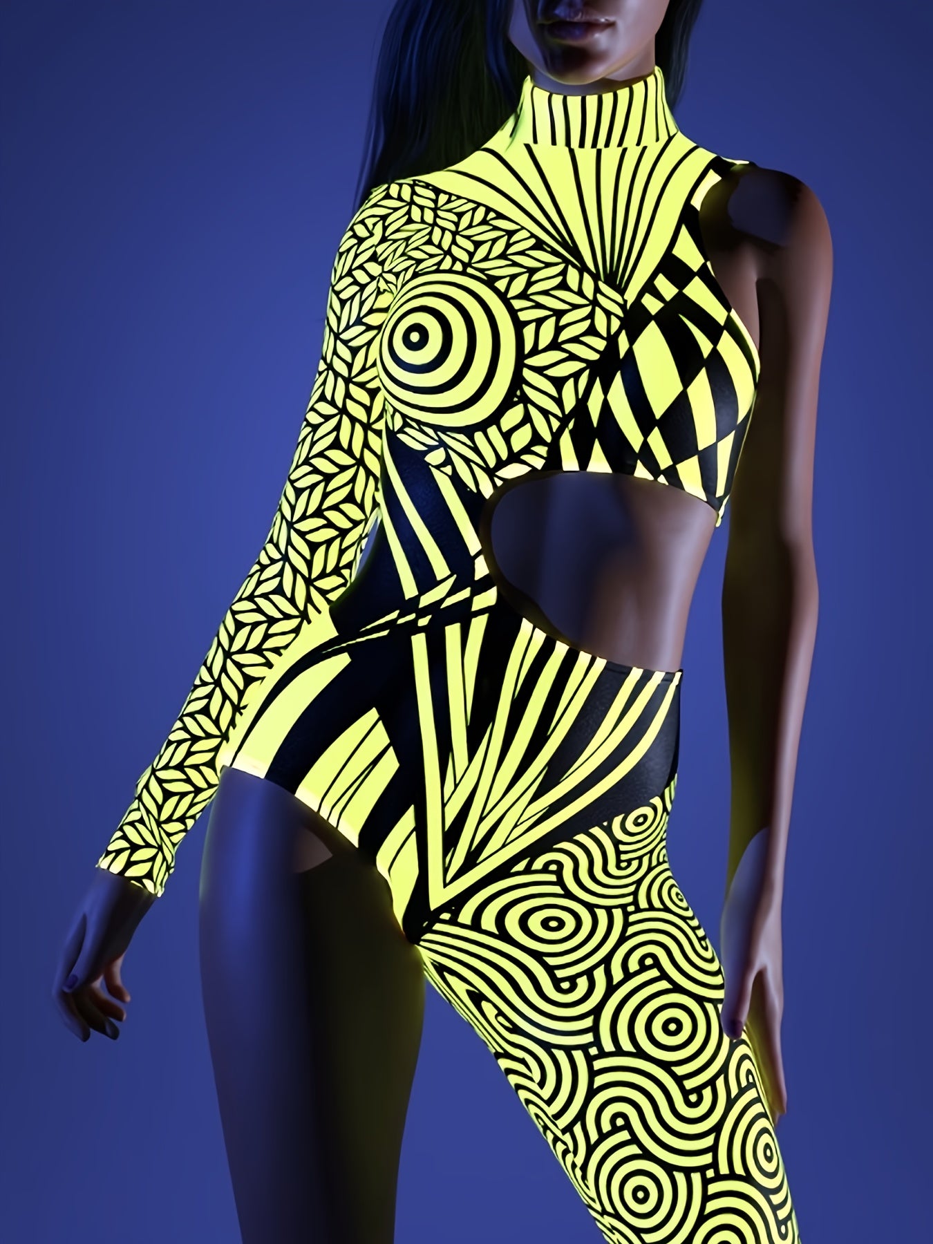ENNMEI Women'S Sexy Party Jumpsuit - Form-Fitting Asymmetrical Design with Geometric Print, Long Sleeves & High-Low Hem, Stretchy Polyester Blend for Festive Occasions & Cosplay Events, Costume Party Wear | Formfitting Jumpsu