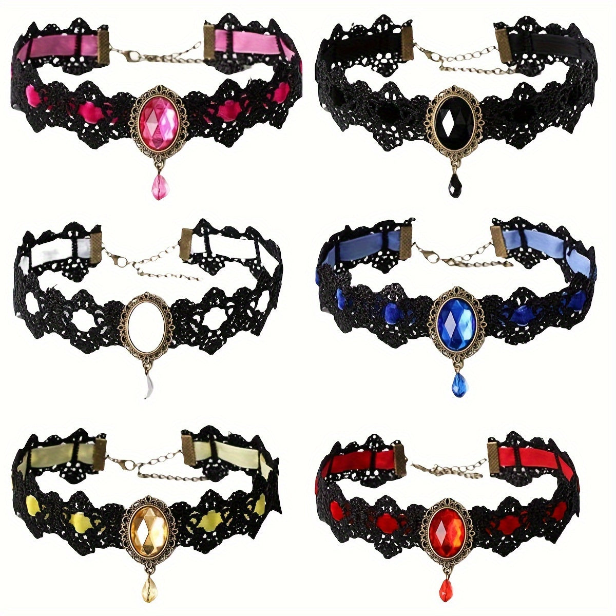 Gothic Lace Choker Necklace with Rhinestone, Adjustable Clavicle Jewelry, Women'S Fashion Collar, Gift for Parties, Halloween, All-Season Accessory