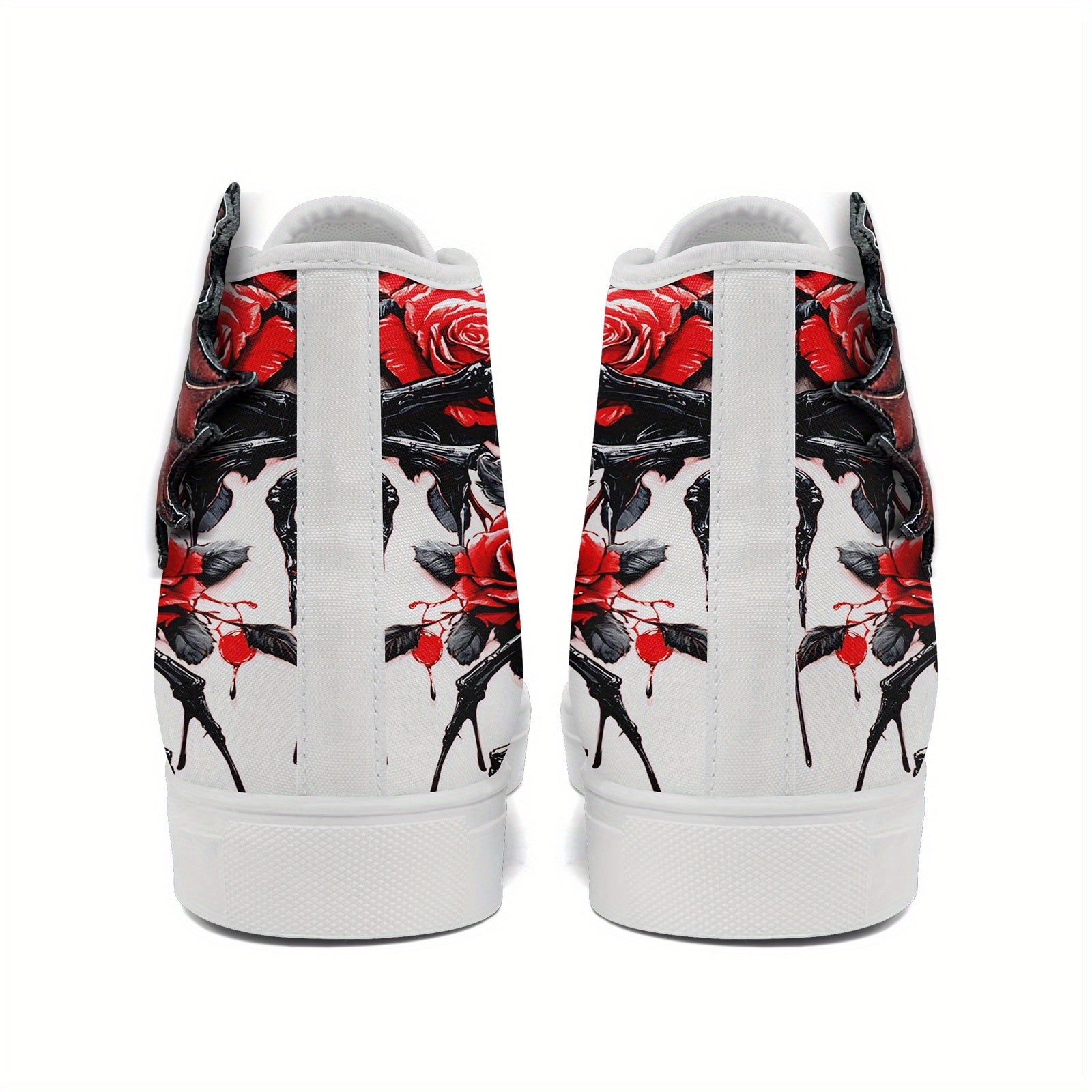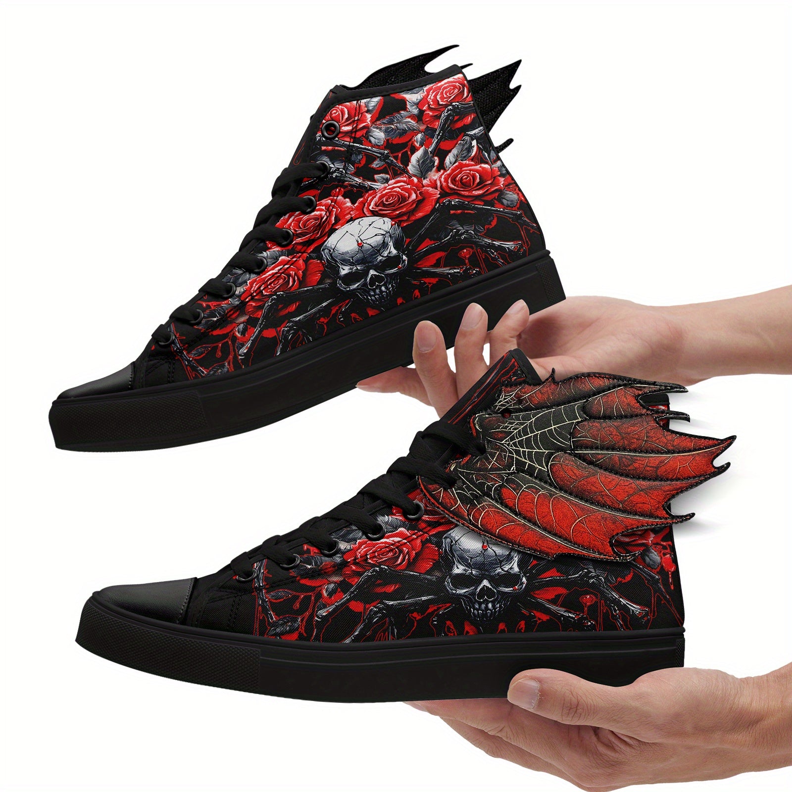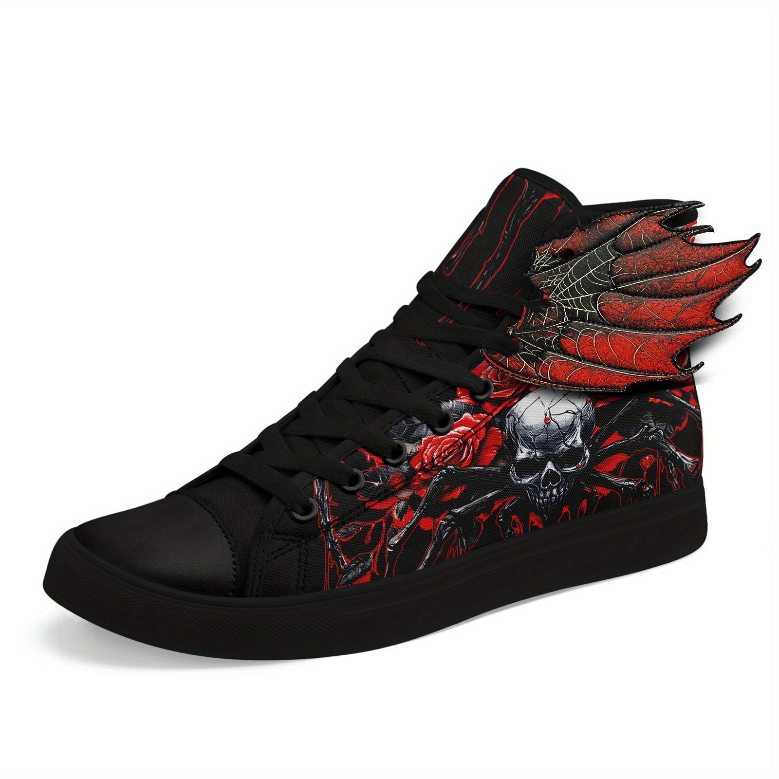 [Gothic Punk Sneakers] Gothic Punk Sneakers for Men - High-Top Shoes with 3D Red Flame Skull & Wing Design | Lace-Up Closure for Halloween, Gothic Parties, Everyday Streetwear | All-Season Comfortable, Casual Sport, Horror Ae