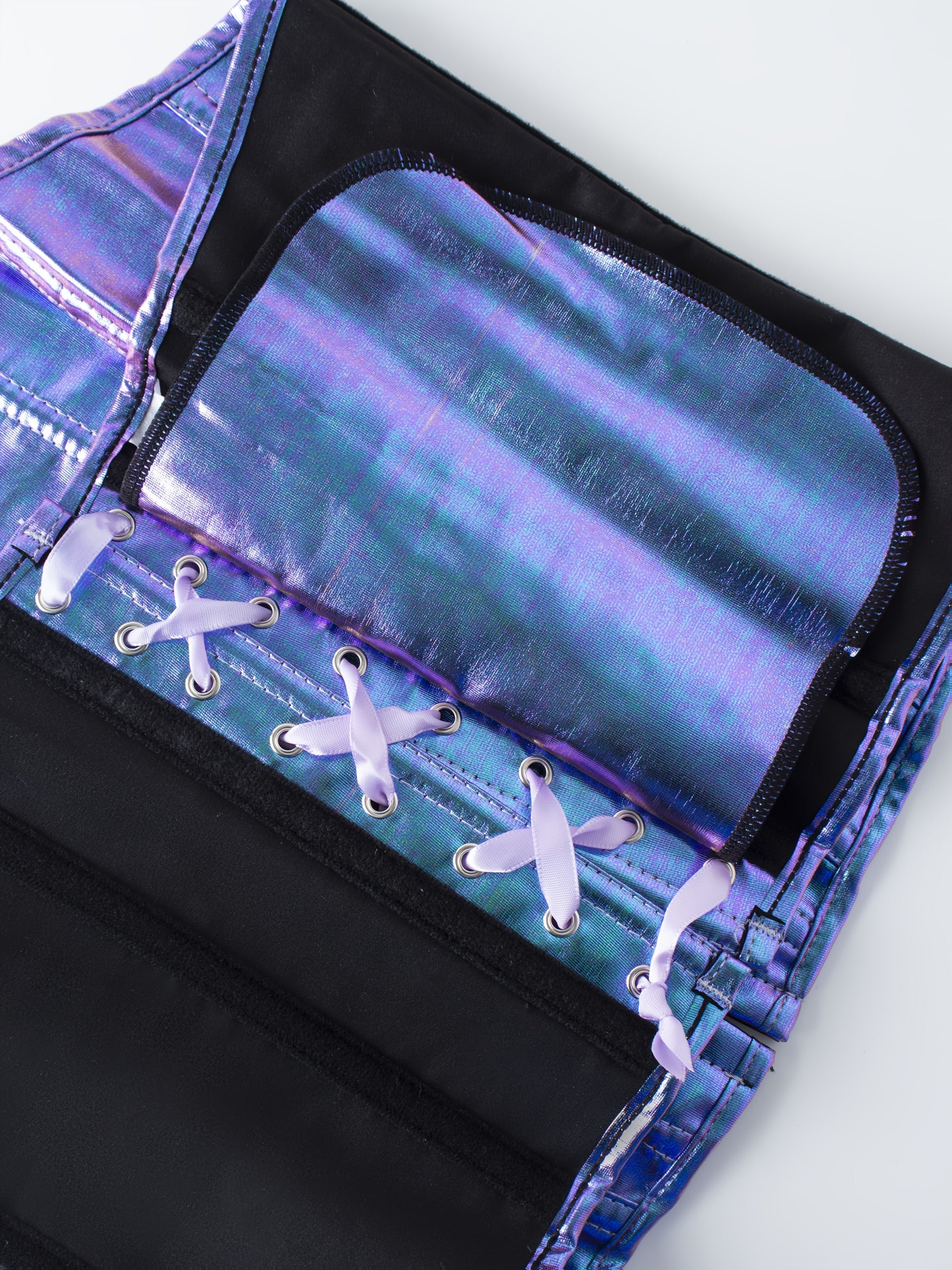 Gradient Purple to Blue Iridescent Corset Top - Lace-Up Back, Push-Up Shapewear for Women, Glossy Finish, Polyester & Elastane Blend, Hand Wash Only, Formfitting Shapewear | Laceup Closure | Smooth Texture