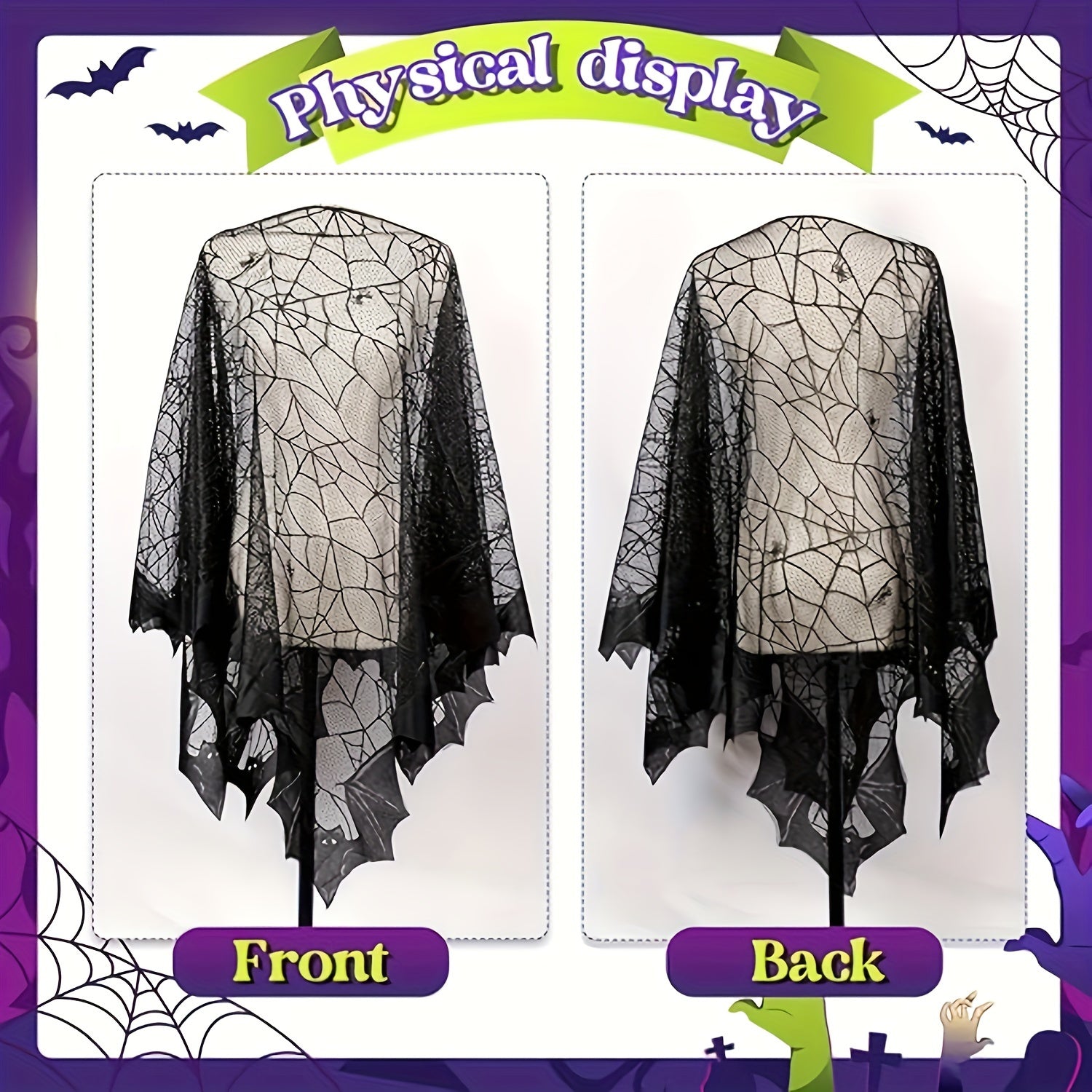 Halloween Bat Wing Shawl Costume - Fabric Spider Web Poncho Cloak for Women - Festive Holiday Party Dress-Up Accessory - No Feathers - Electricity-Free Decoration (Pack of 1)