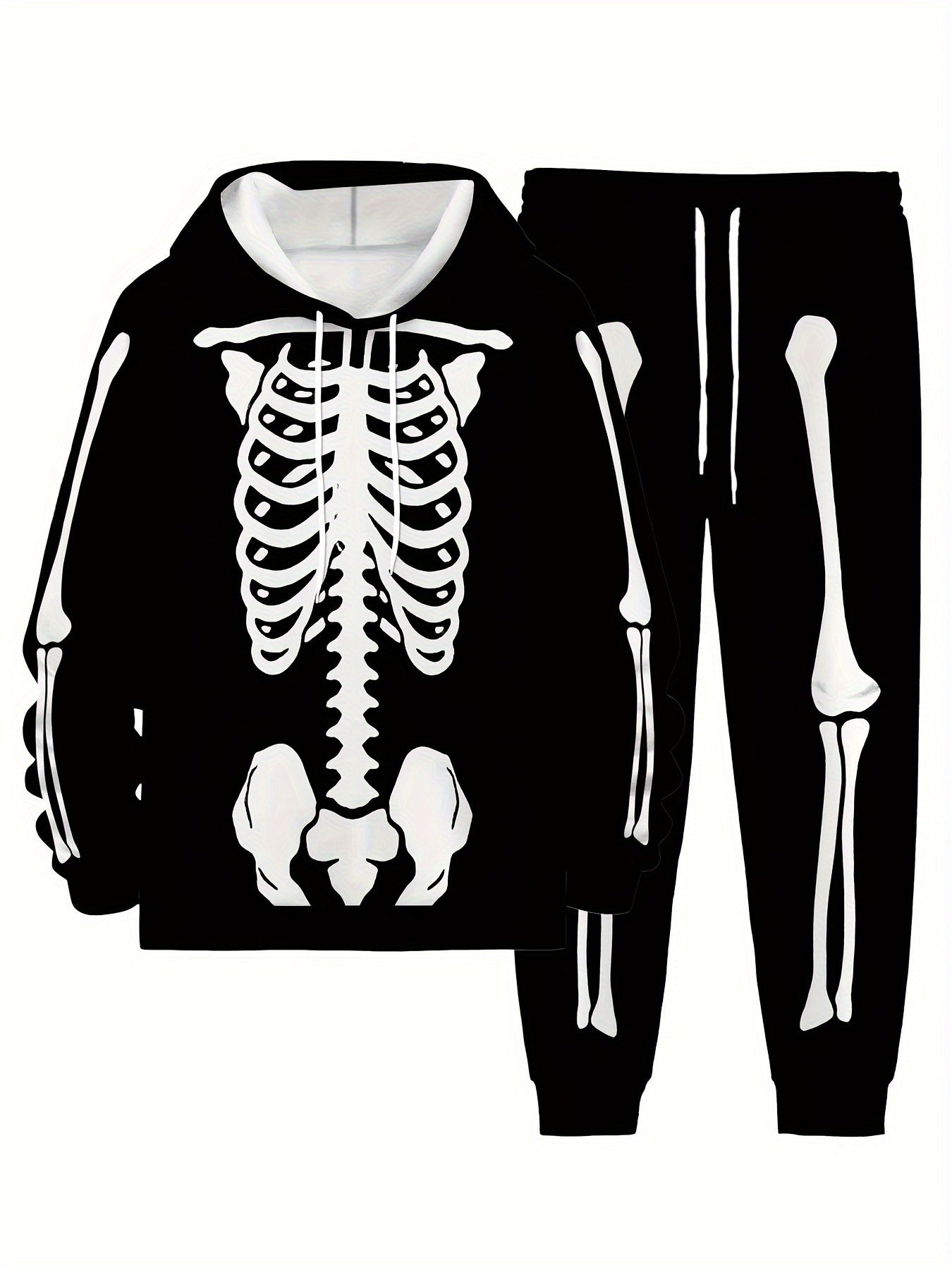 Kebisi Men's 2pcs Halloween Skull Print Casual Hoodie and Sweatpants Autumn and Winter Comfortable Streetwear as a Gift
