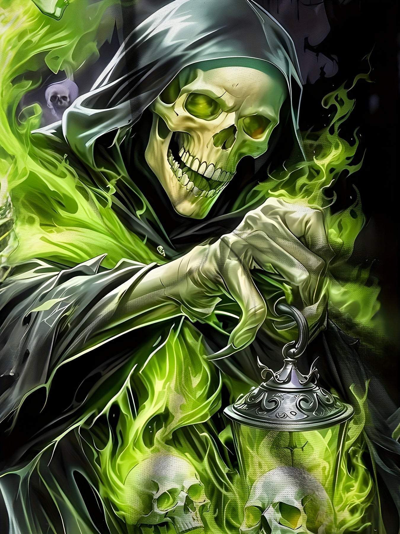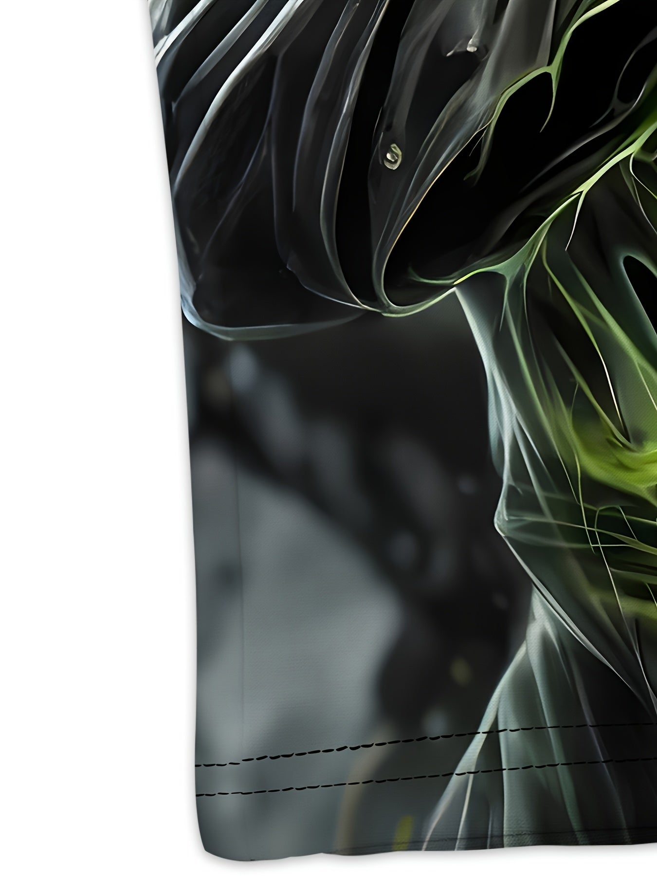Men'S Casual Crew Neck T-Shirt with 3D Skeleton Print, Green Flame and Skulls Design, Lightweight Polyester Fabric, Regular Fit Short Sleeve Tee for Casual Attire, Outdoor Tshirt | Unique Graphic Tee | Durable Casualwea