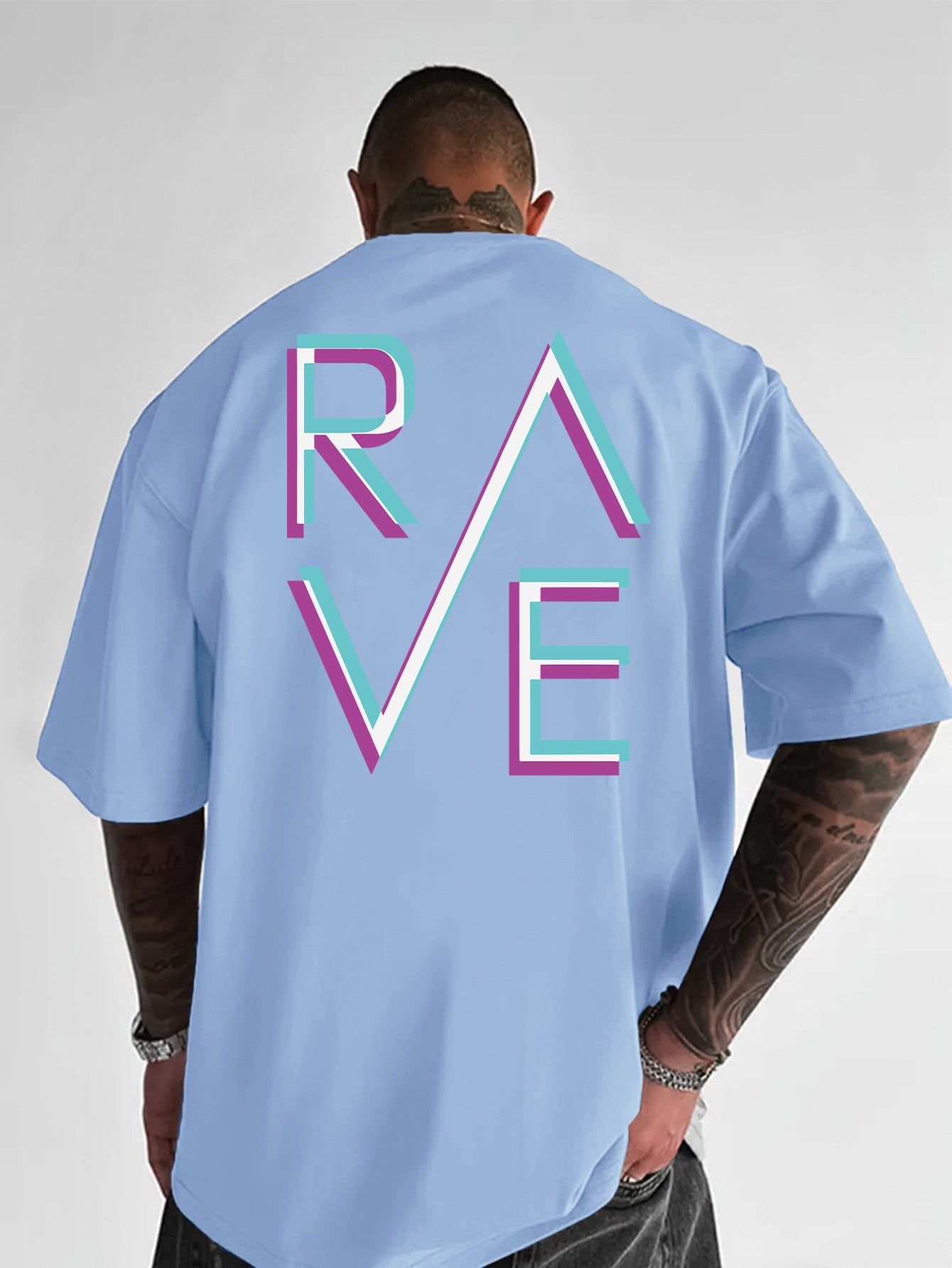 Men'S Casual Loose Fit Crew Neck T-Shirt with "RAVE" Graphic Print - Vibrant Neon Letter Design, Short Sleeve, Summer Essentials, Perfect Gift for Music Lovers, Everyday Tshirt | Vibrant Graphic Tee | Comfortable Fit, PLUS SI