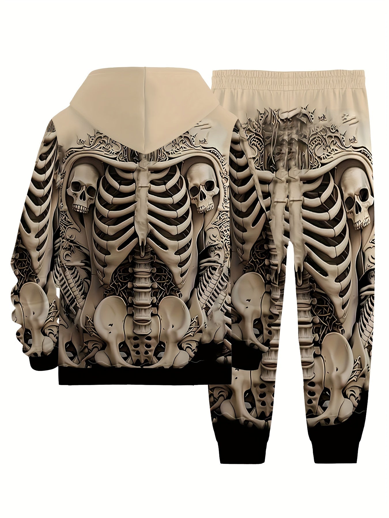 Men's Large Size Skull Pattern 3D Print Street Fashion Casual Hoodie and Pants Set Hoodie and Sweatpants 2pcs Set Suitable for Autumn and Winter Street Outdoor Daily Use as a Gift, PLUS SIZE