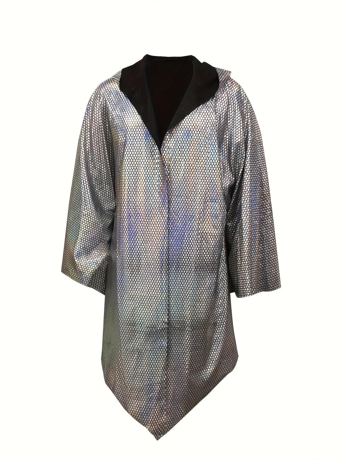 Men's Loose Fit Laser Sequin Hooded Shawl - Sparkling Reflective Nightclub & Rave Apparel, Machine Washable Music Festival Vest with Adjustable Hood for Concerts and Parties, Party Wear, Reflective Fashion, Durable Party Wear