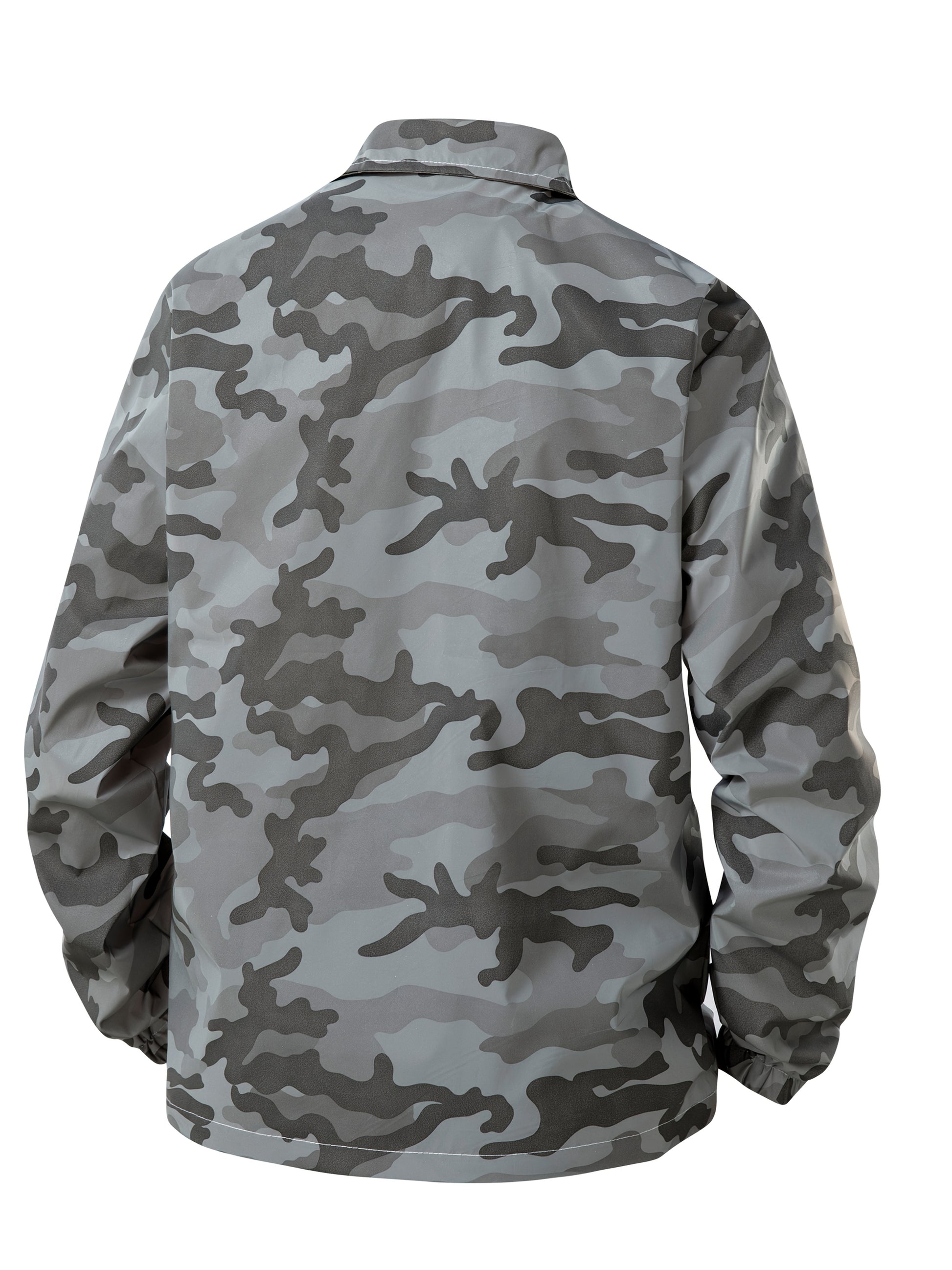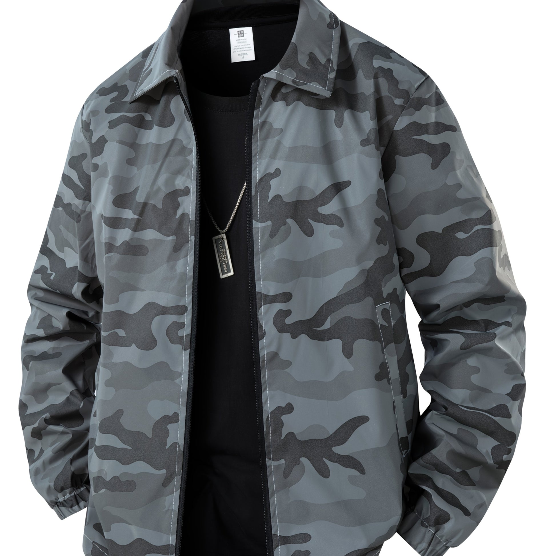 Men's Reflective Camo Soft Shell Jacket - Lightweight Polyester, Zip-Up Design with Flap Pockets, Gray Camouflage Pattern for Outdoor Activities, Running, Training, Hiking & Cycling - Perfect for Casual Wear