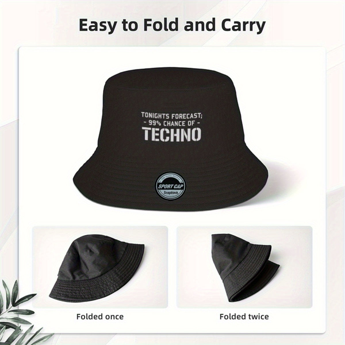 Men's Techno Music Bucket Hat - Tonight's Forecast Chance of Techno Print, Lightweight Breathable Sun Hat for raves, clubs, beach - Machine Washable Polyester Cap (Black/5 Colors Available) - Dad Hat Trucker Hat for Techno En