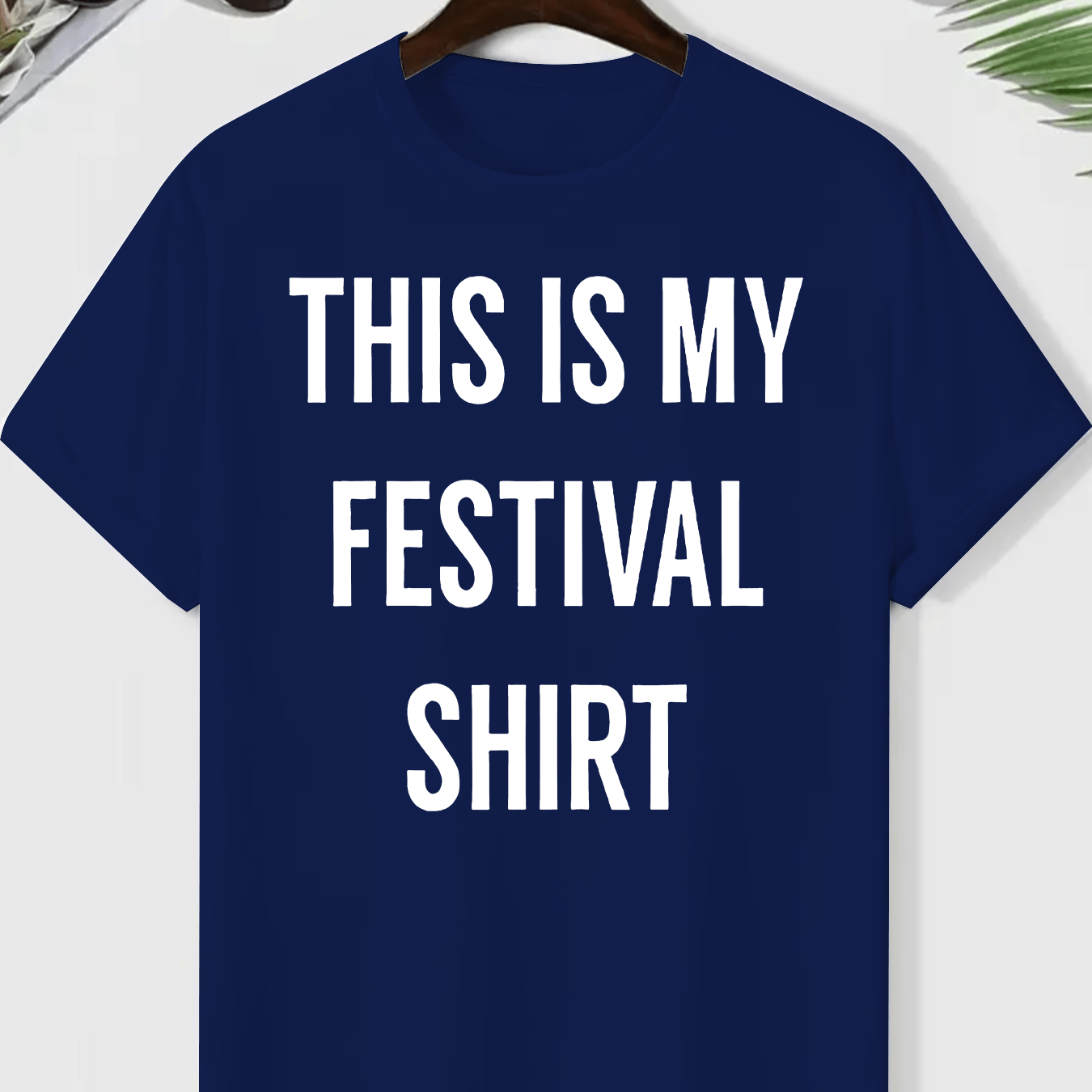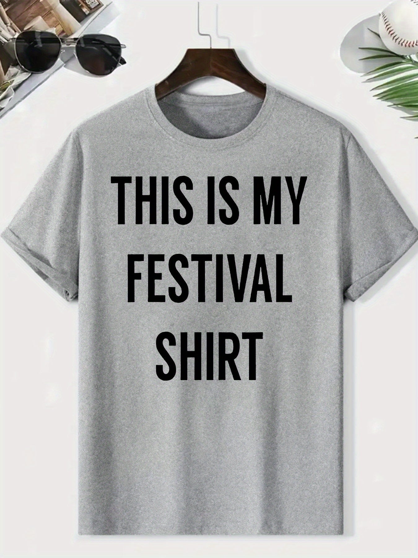 Men's "This Is My Festival Shirt" Graphic Tee - Gray Casual Crew Neck Short Sleeve T-Shirt, Lightweight & Breathable Polyester Blend, Perfect for Summer Festivals & Casual Attire