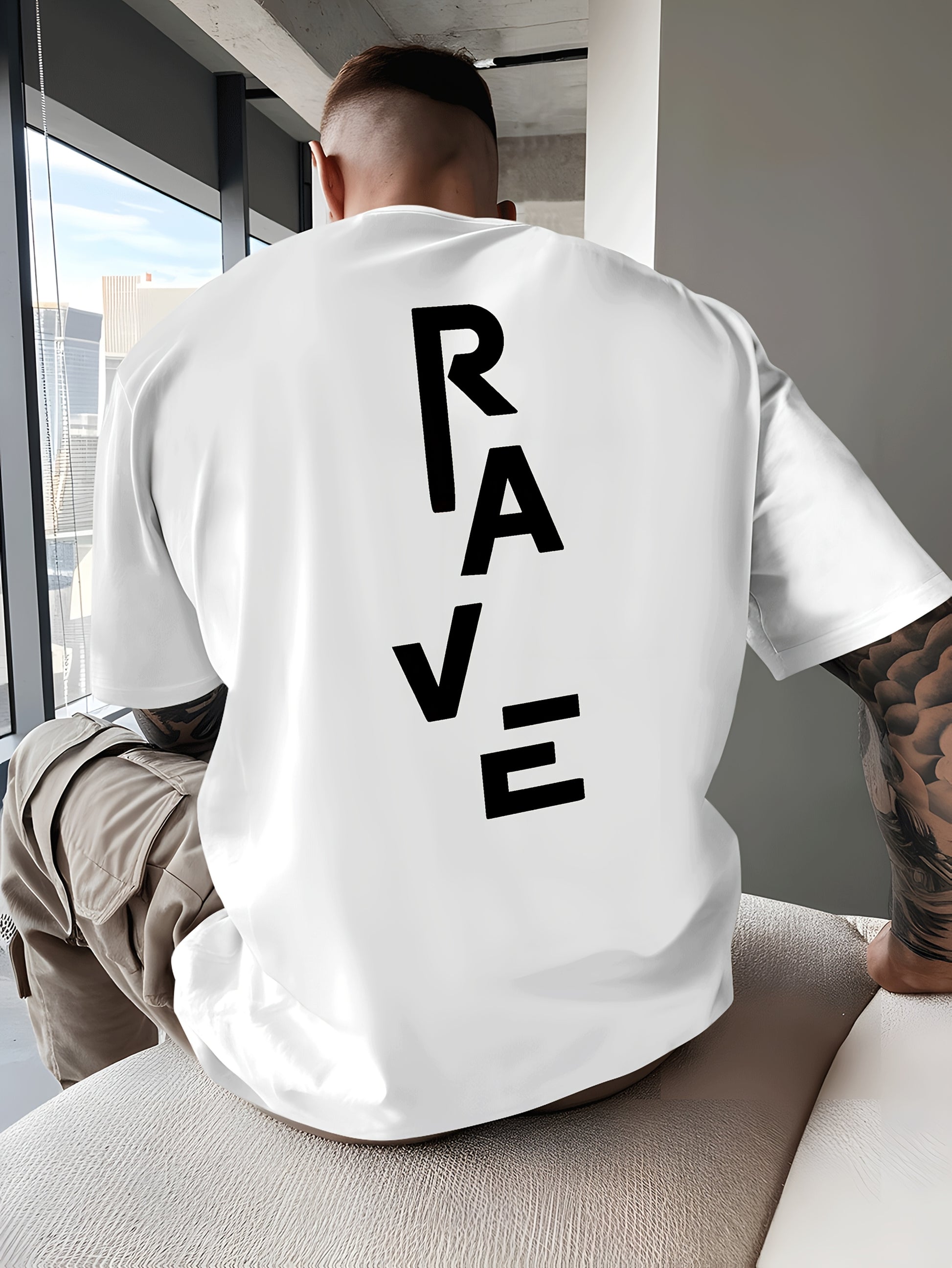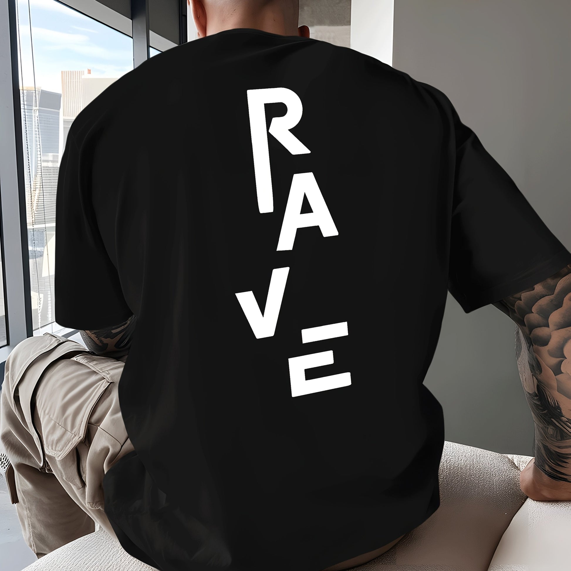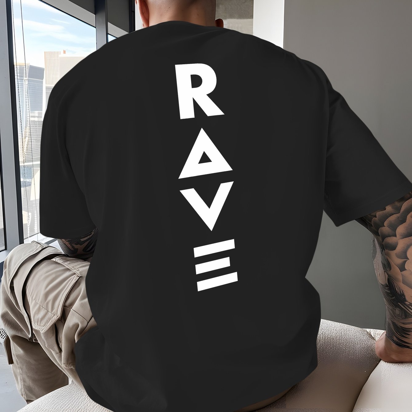 Men's Trendy Summer Short-Sleeve T-Shirt with "Rave" Graphic Print - Breathable, Versatile Round Neck Tee for Beach Vacations & Casual Wear, Breathable Clothing | Relaxed Fit Shirt | Comfortable Fabric, Shirts for Summer