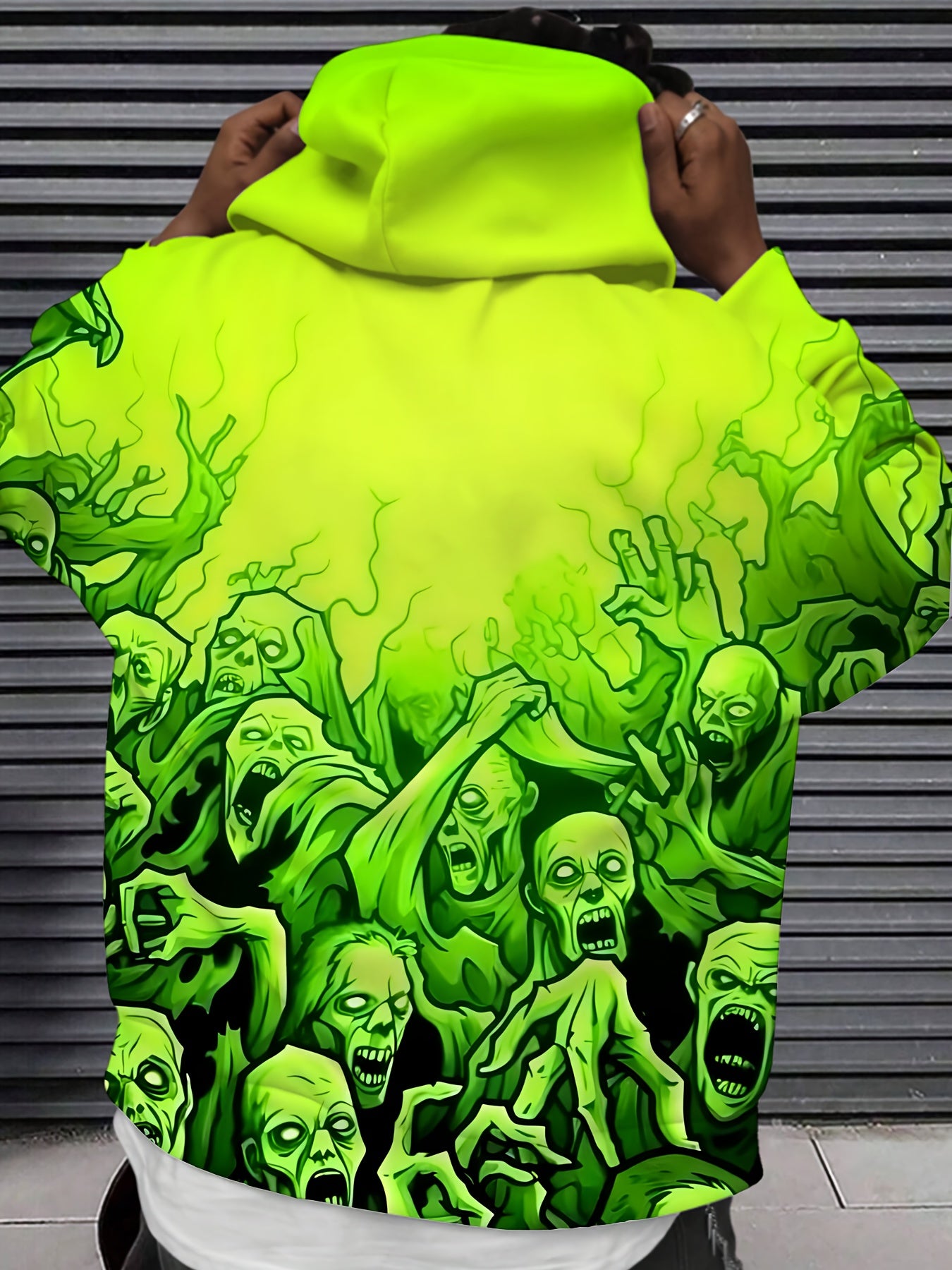 Men'S Y2K Dark Punk Skull Graphic Hoodie - Vibrant Green 3D Print, Elastic Knit Fabric, Drawstring Pocket, Regular Fit for Gym, Outdoor & Casual Wear, Autumn Winter Essential, Gym Apparel | Skull Print Hoodie | Stretchy Knit