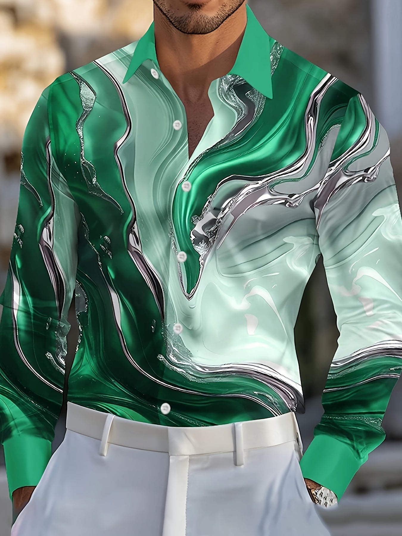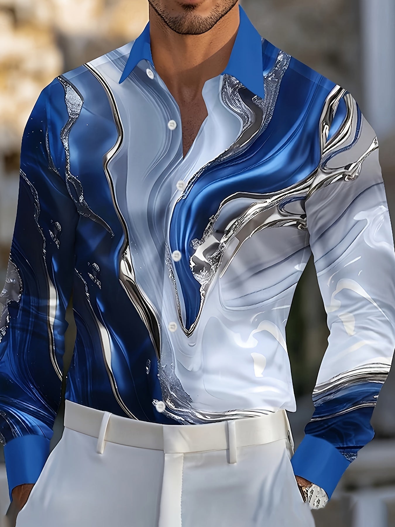 Scary Blood & Handprint Pattern Men's Long Sleeve Lapel Shirt, Men's Halloween Style Clothing For Spring Fall