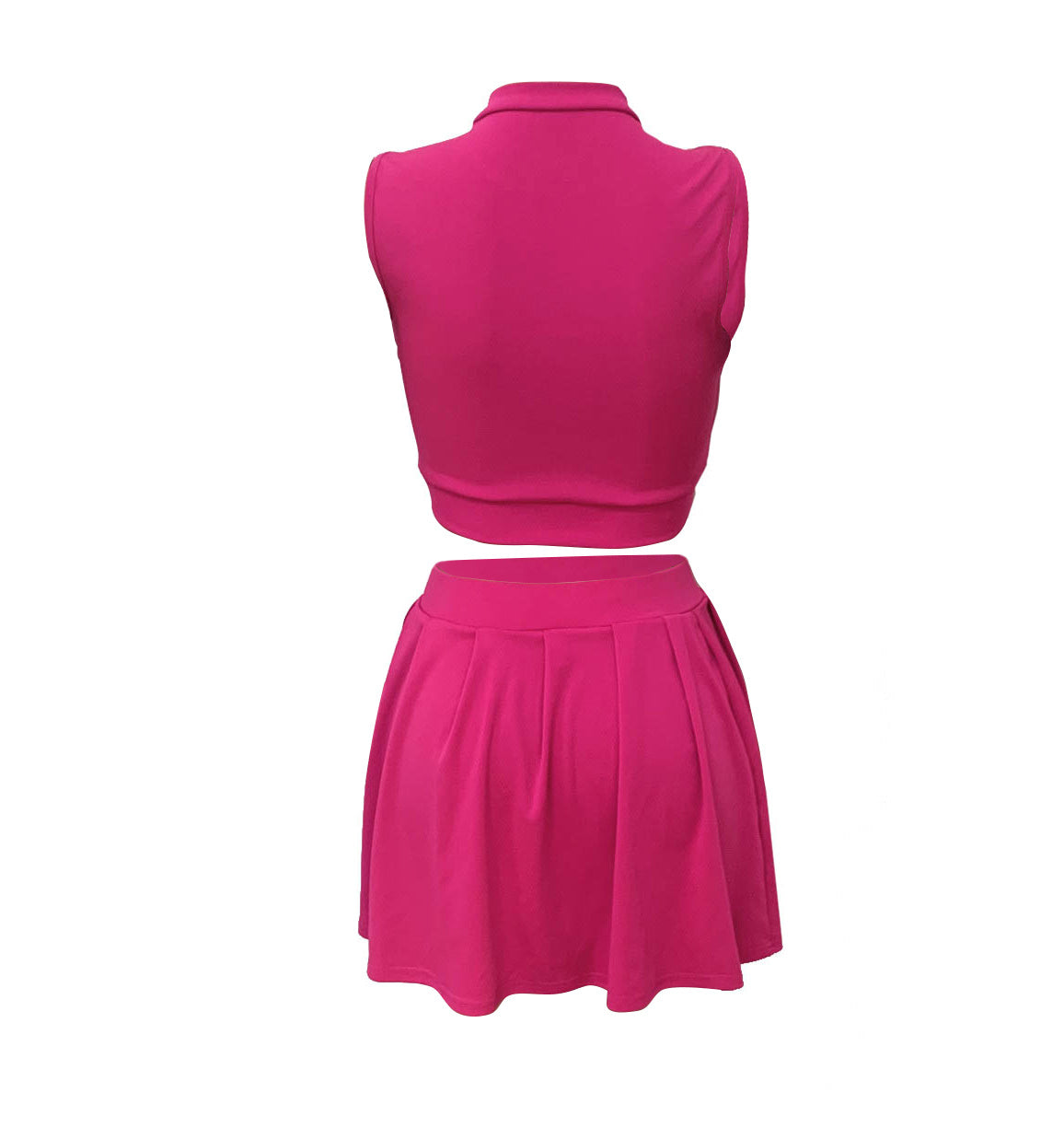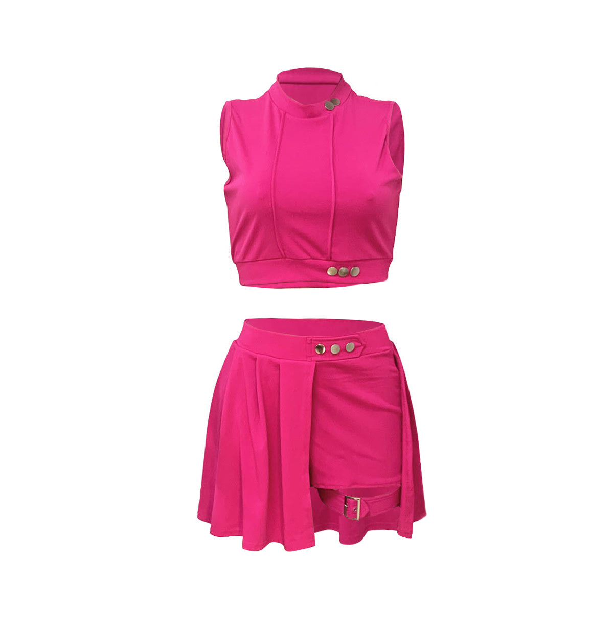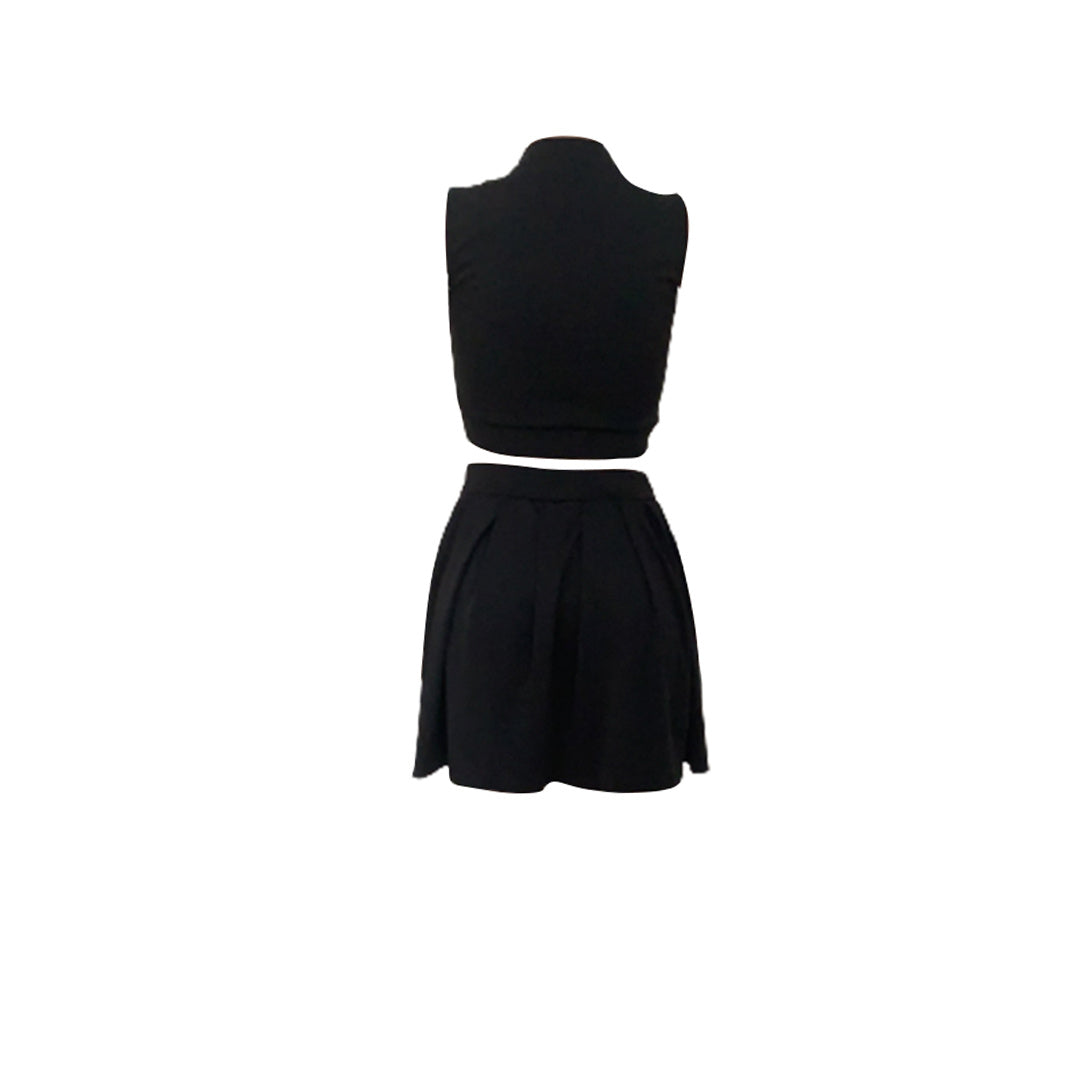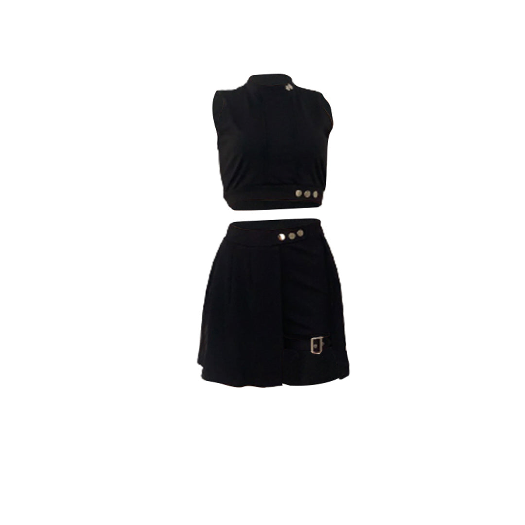 Sexy Button Two-piece Set, Mock Neck Crop Tank Top & High Waist Skirt Outfits, Women's Clothing