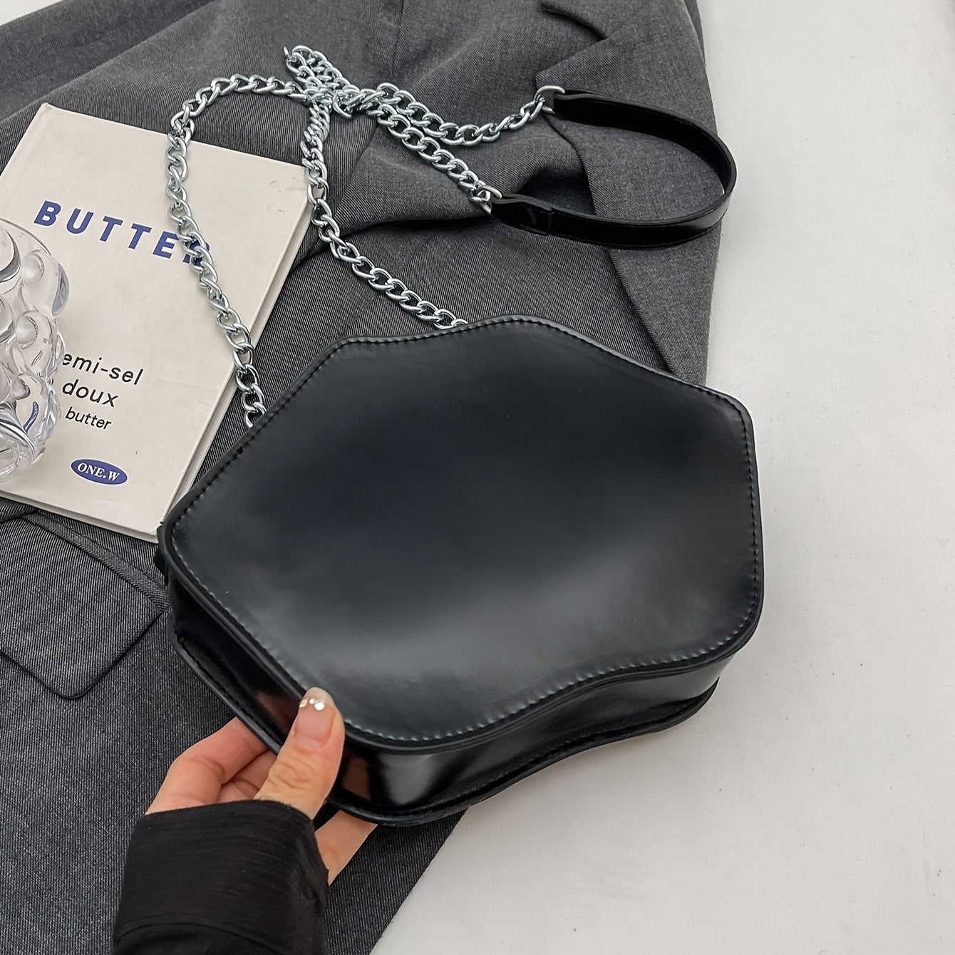 Vampire Lips Print Crossbody Bag - Gothic Style, Black with Red Lips & Fangs Design, Chain Strap, Zipper Closure, Perfect for Halloween & Daily Use, Halloween Accessory | Playful Accessory | Durable Zipper Closure, Halloween