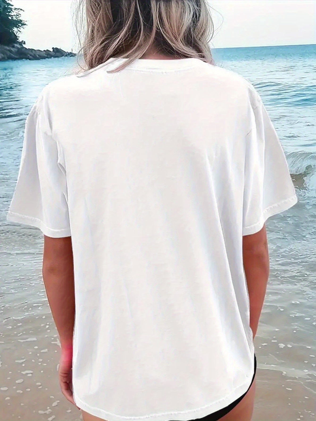 Women'S Casual Oversized T-Shirt with "Born to Rave, Forced to Work" Cartoon Print - Soft Polyester, Round Neck, Short Sleeve, White, Perfect for Summer & Spring, Comfortable Fashion | Playful Graphic Tee | Glossy Fabric Shir