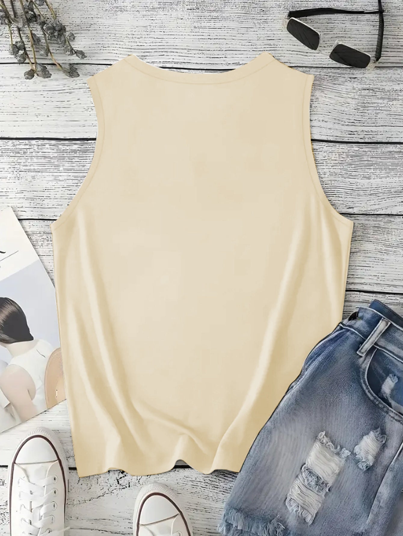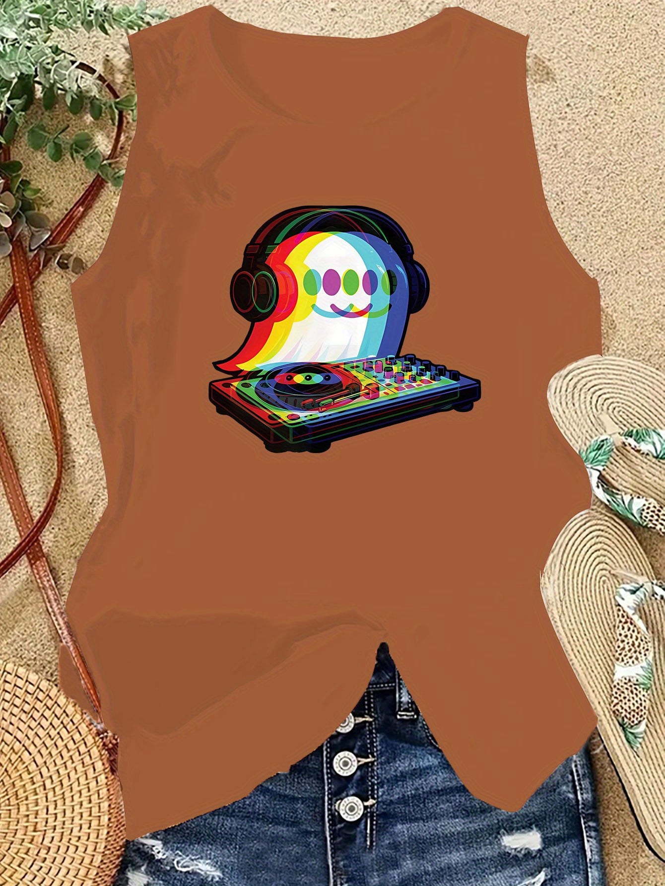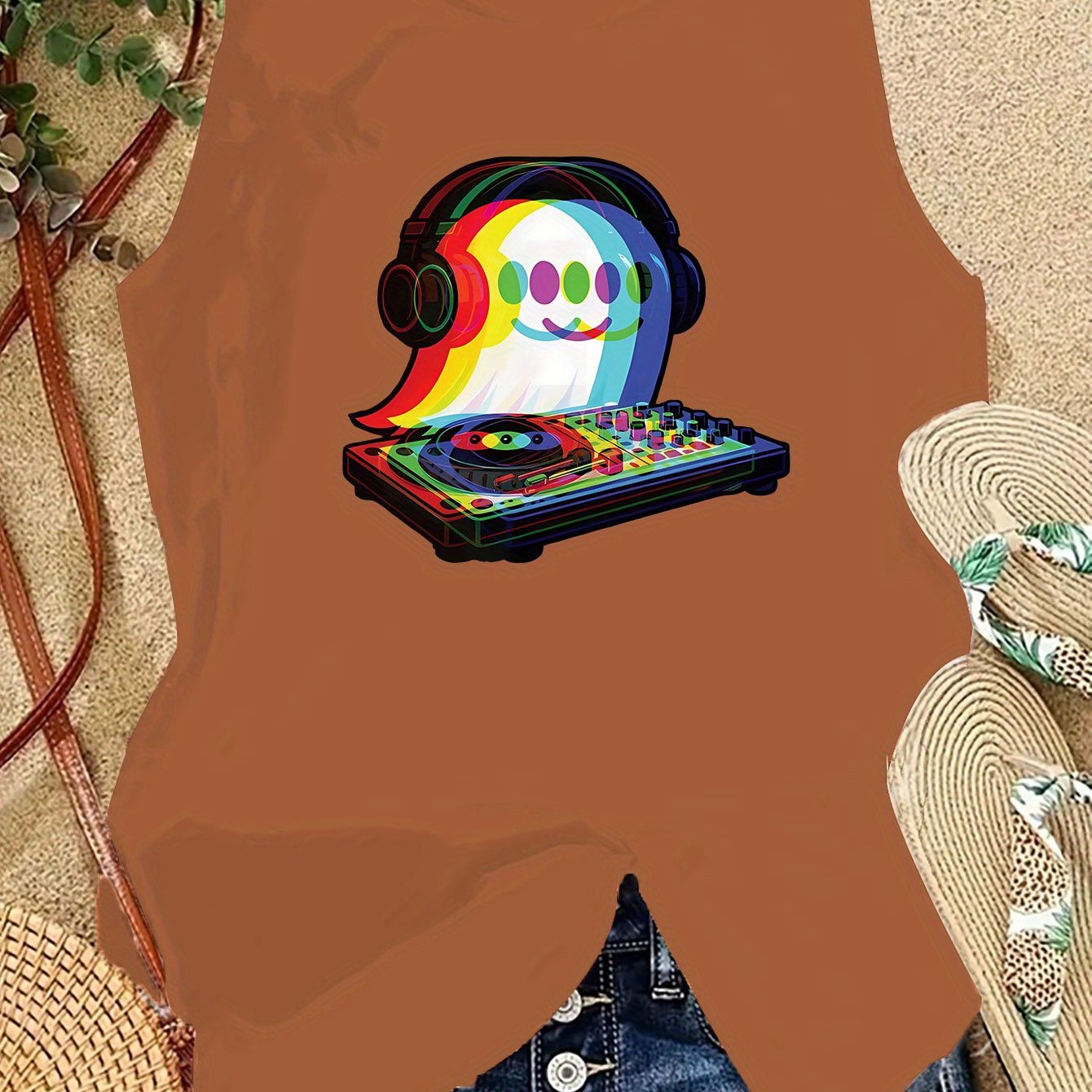 Women's Casual Sleeveless Tank Top with DJ Music Graphic Print - EDM Rave-Inspired Acid House & Psychedelic Pop Design, Stretchy Comfort Fit, Machine Washable for Clubbing, Festivals & Casual Attire, Ladies Tank Tops, Festiva