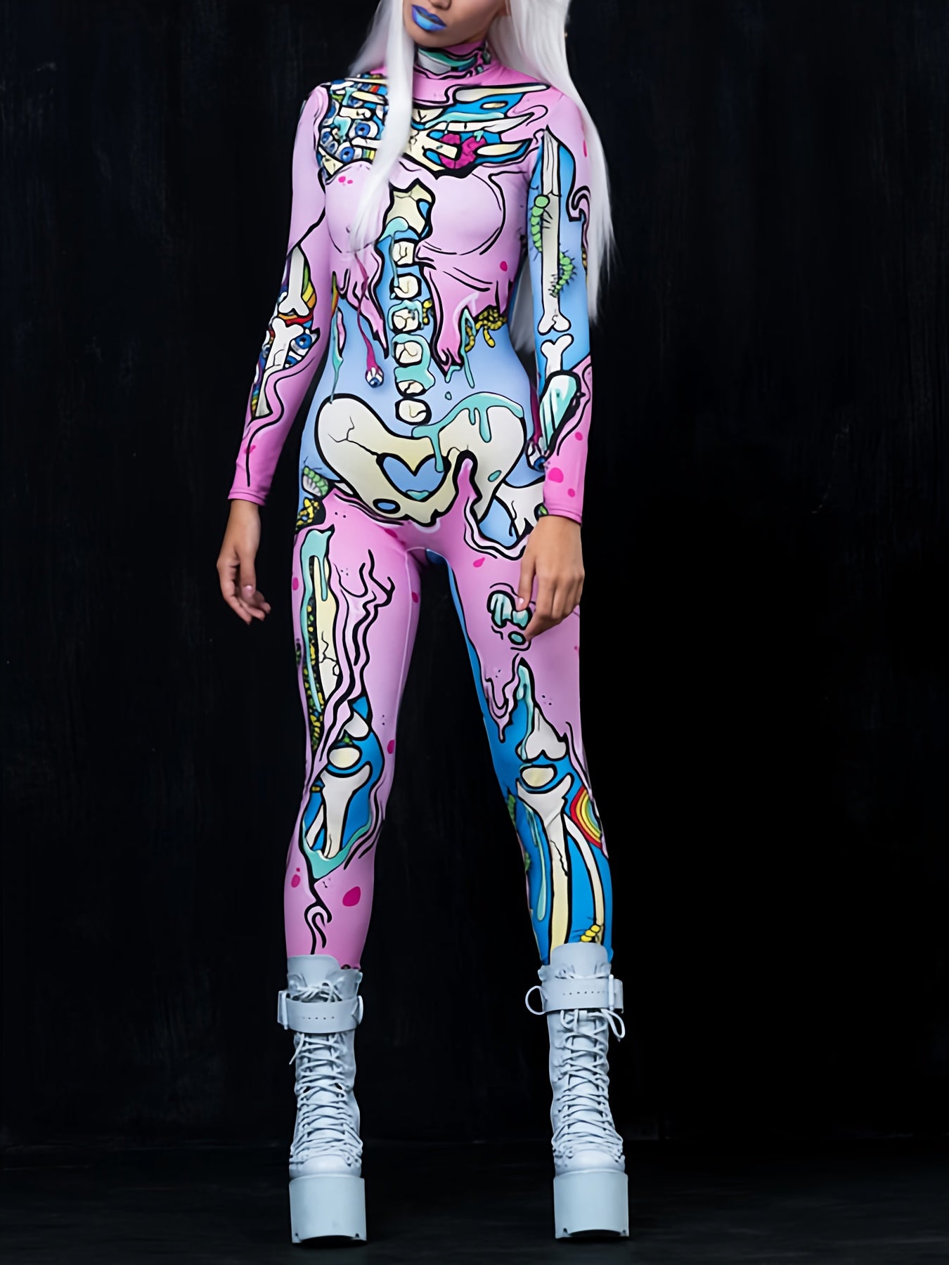 Women's Cute Spooky Skull 3D Print Gothic Halloween Costume Bodysuit for Carnival Holiday Party Cosplay