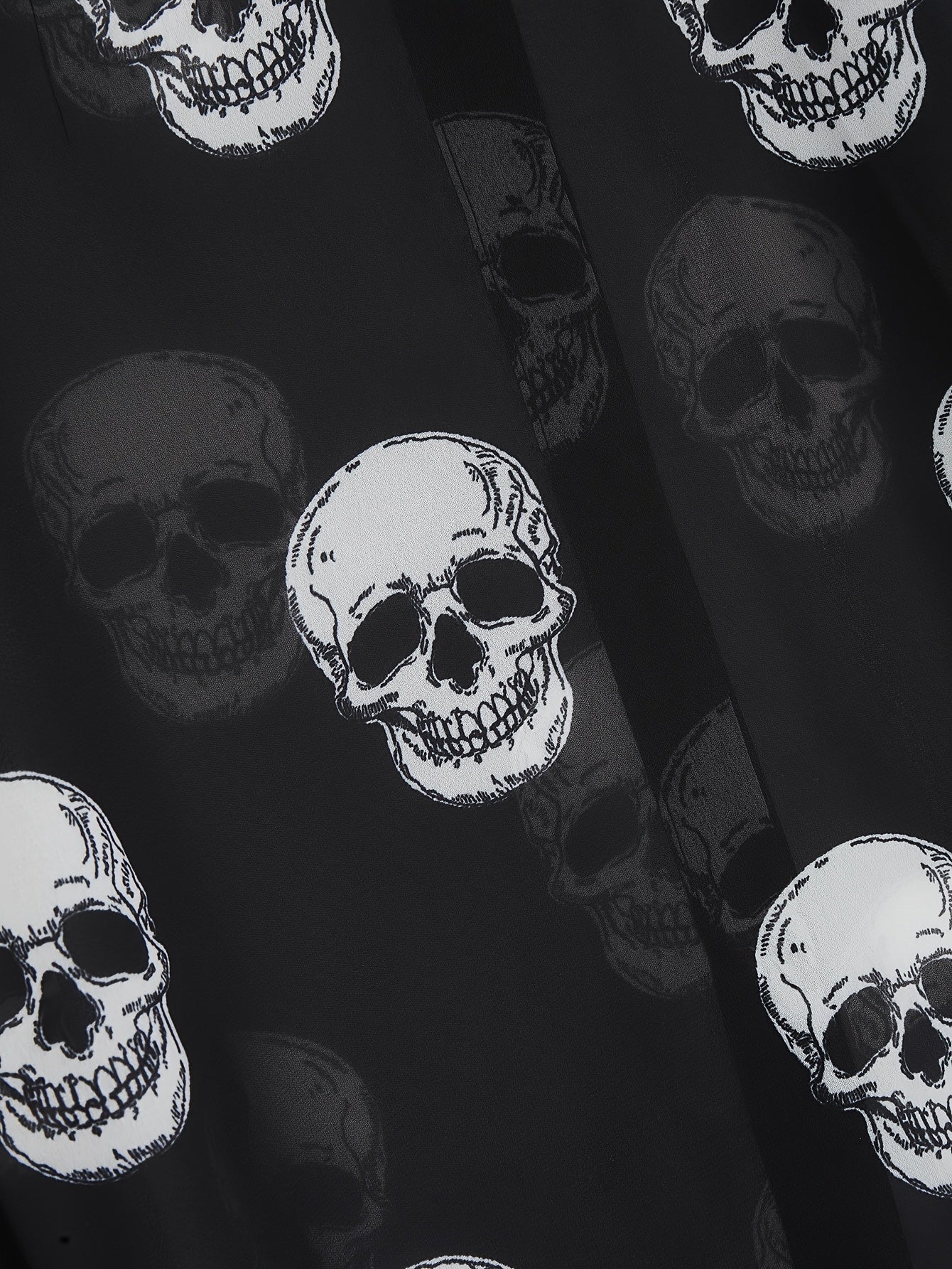 Women'S Elegant Halloween Skull Print Shirt, 100% Polyester Linen Blend, All-Season Lapel Collar, Woven Fabric, 180gsm - Adult Fashion Top