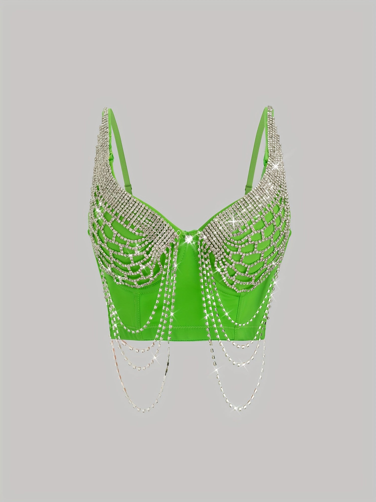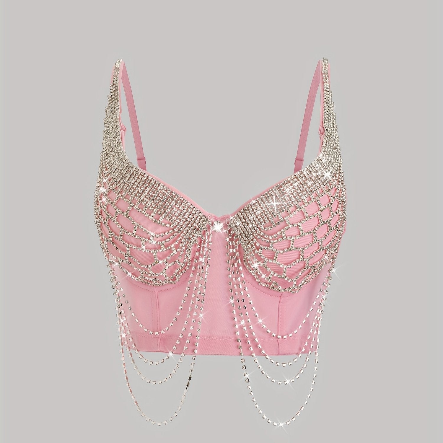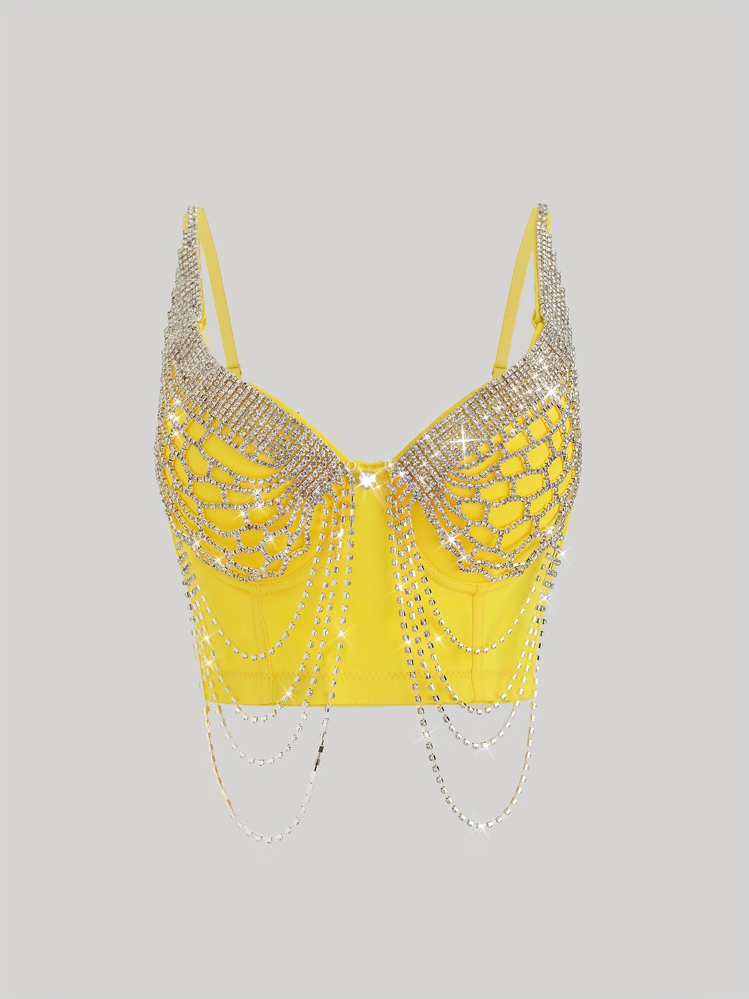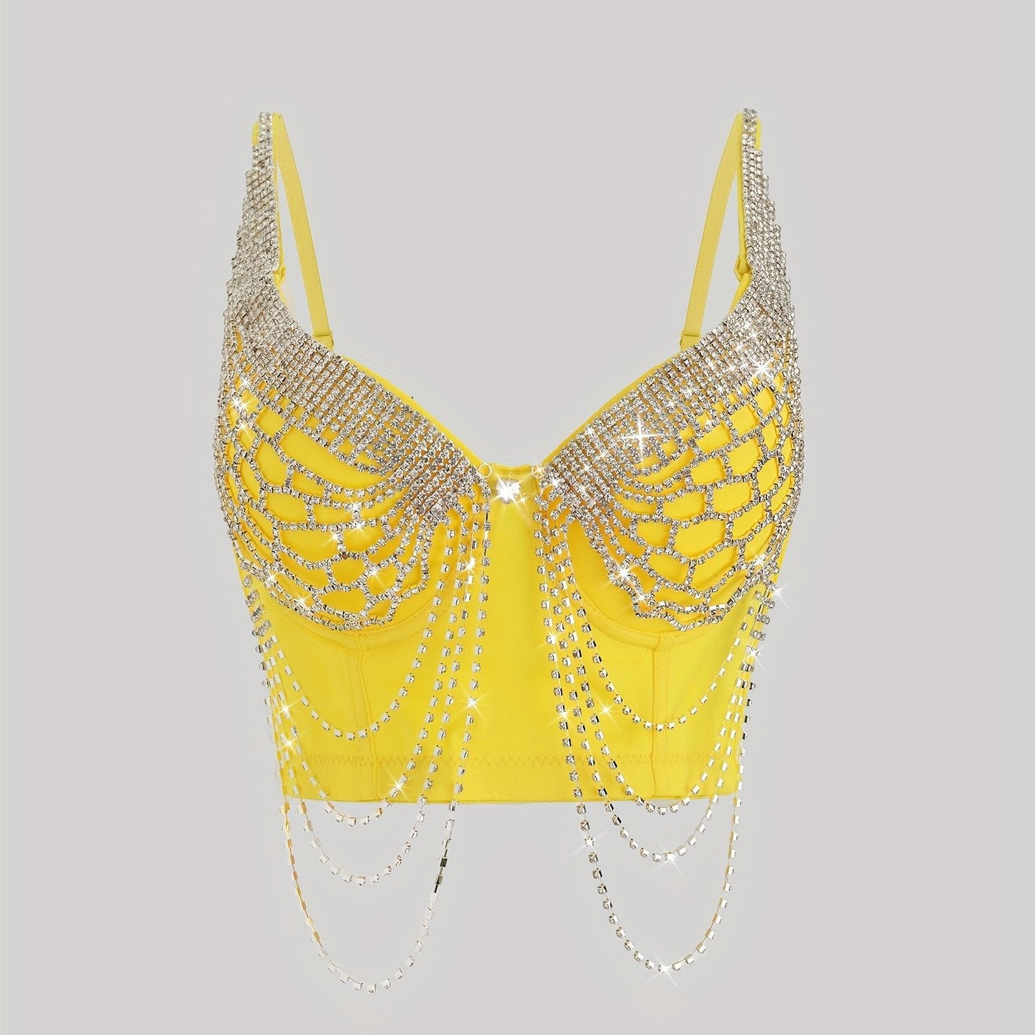 Women'S Glittery Orange Mesh Top with Tassels - Sexy V-Neck, Sleeveless Crop Tank for Casual or Party Wear, All-Season Fashion, Party Attire|Vneck Top|Mesh Fabric