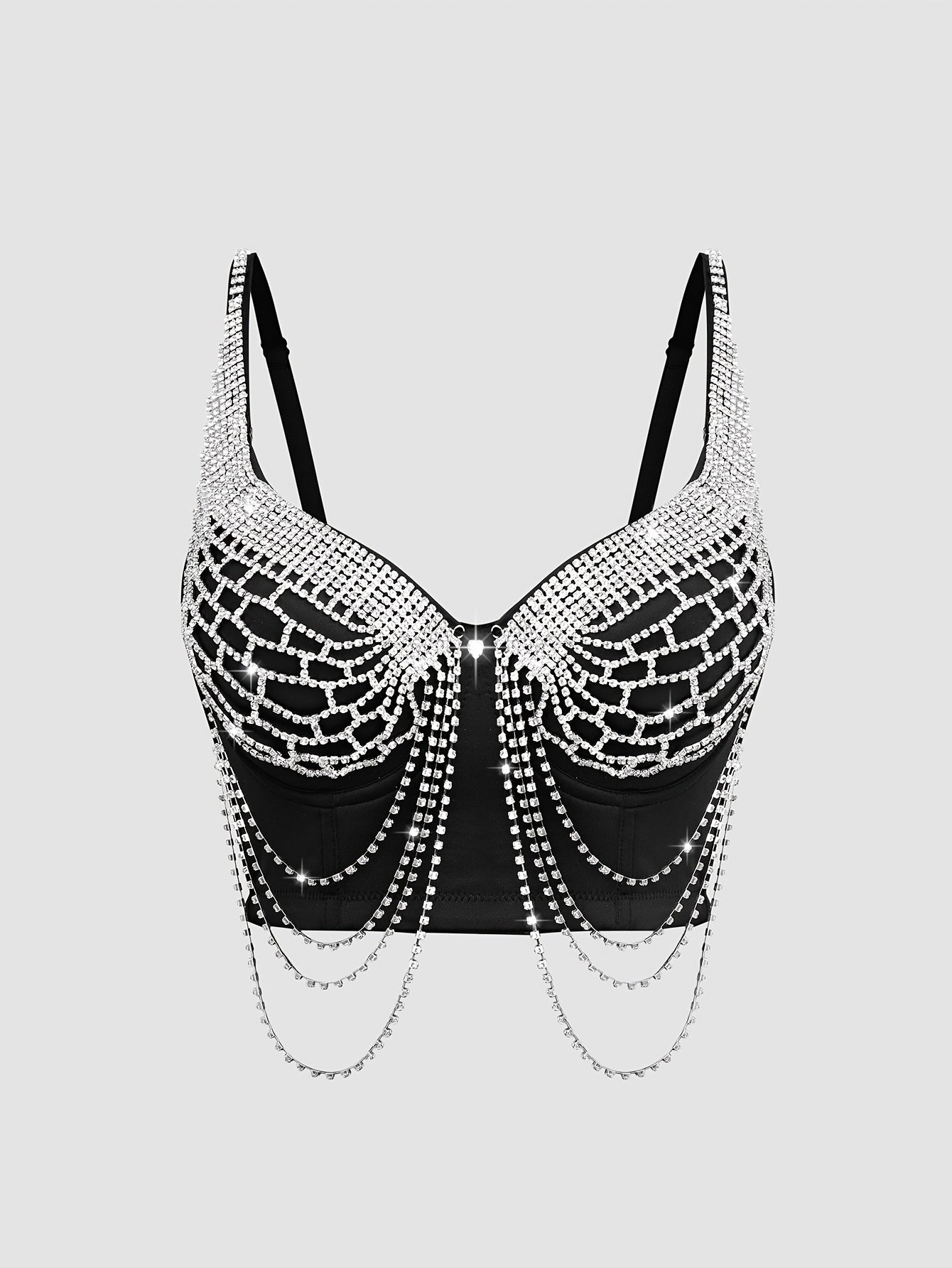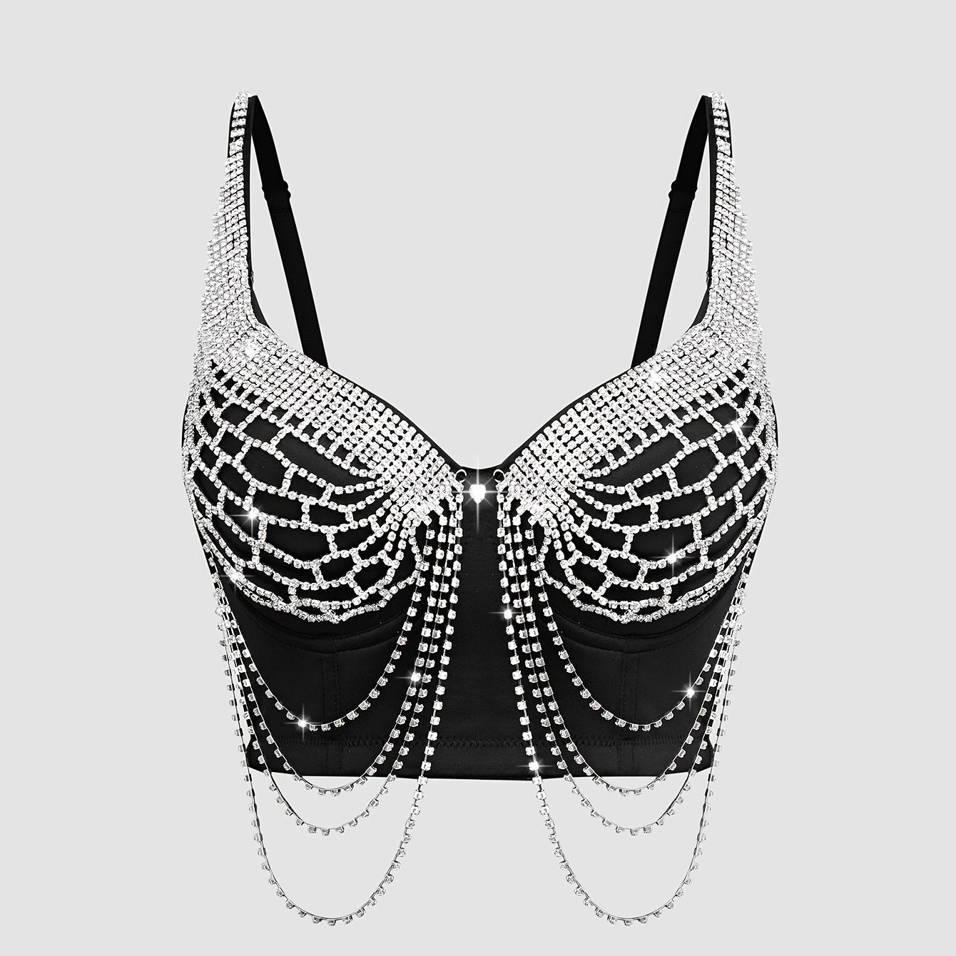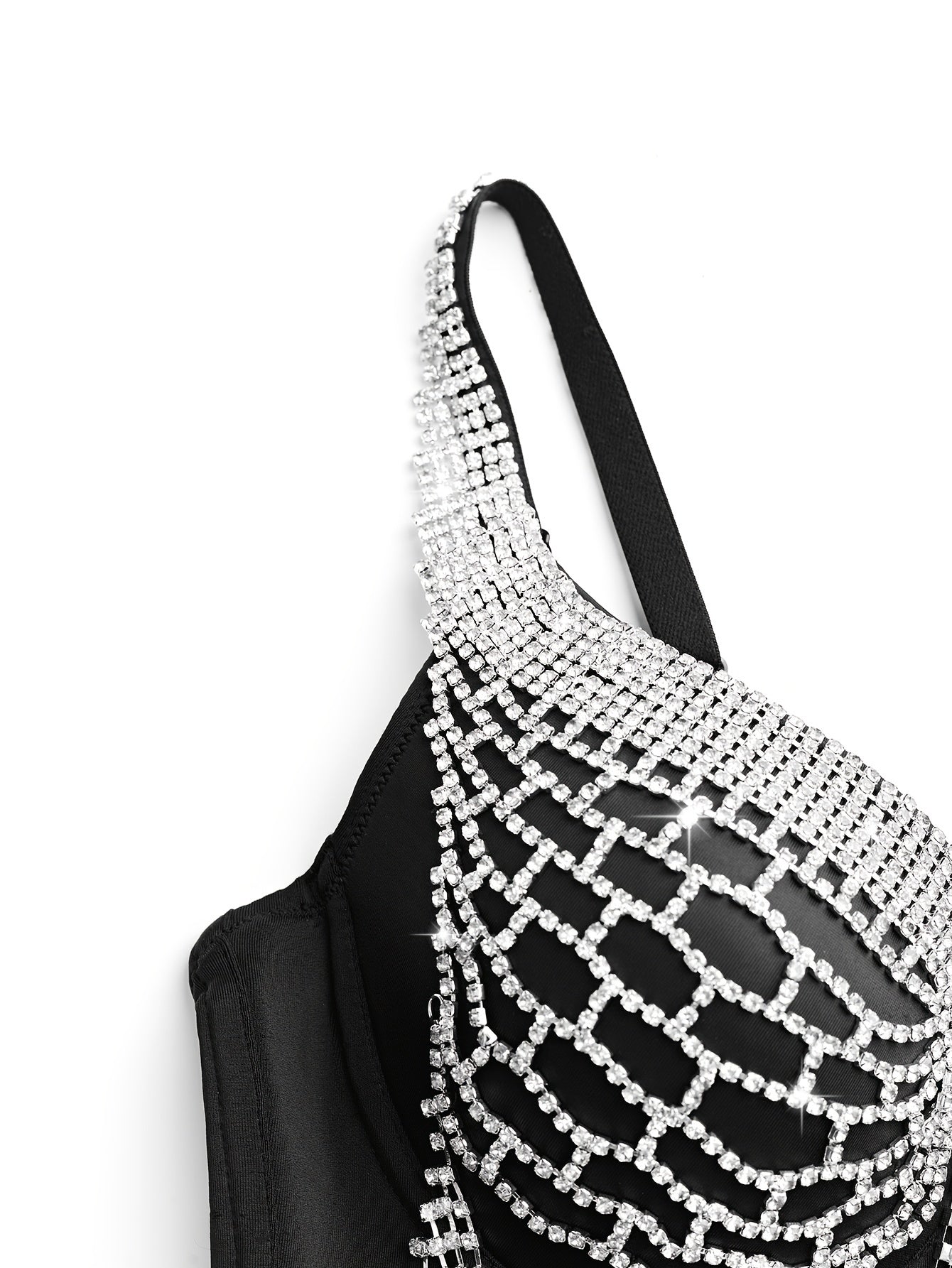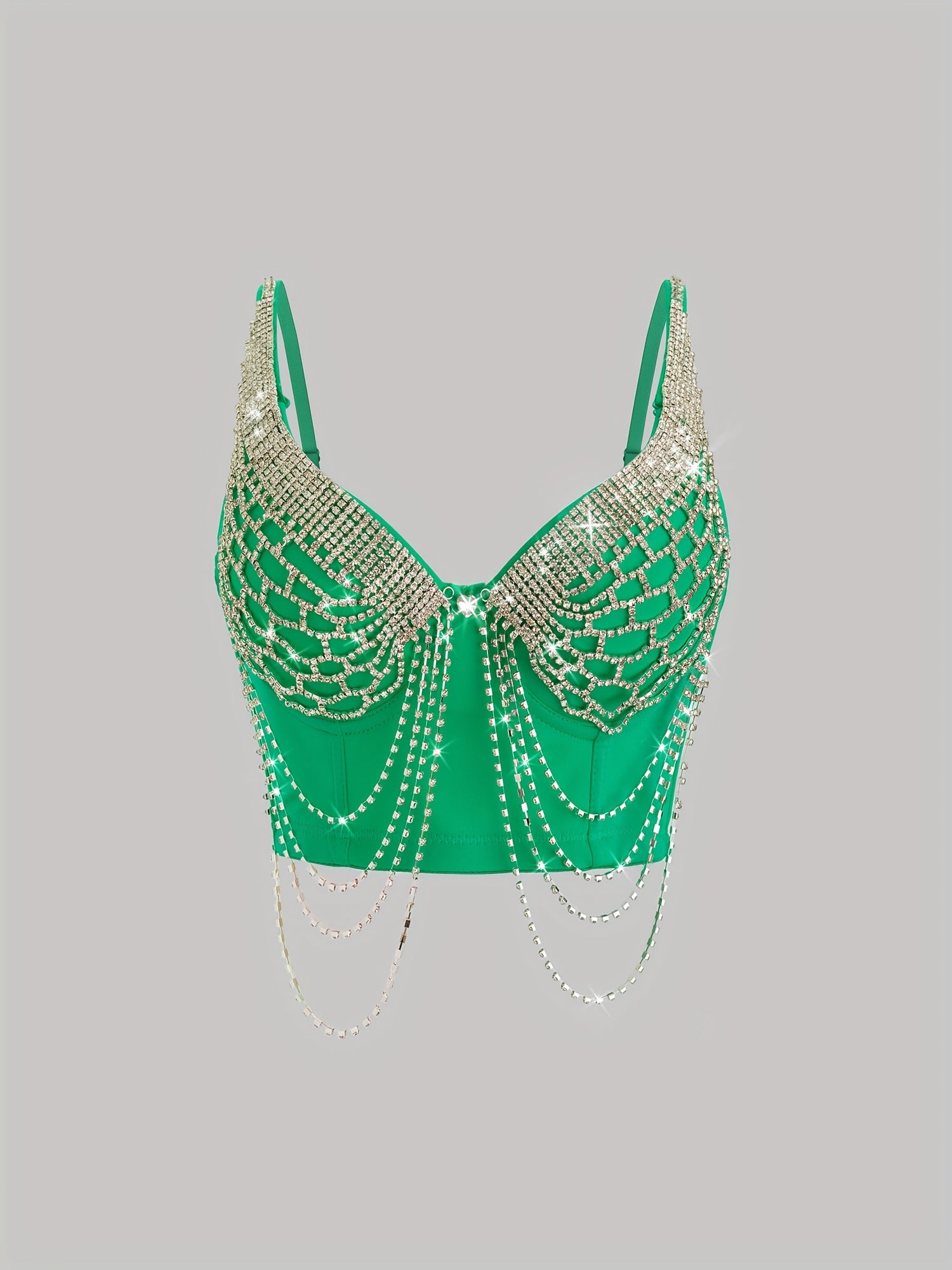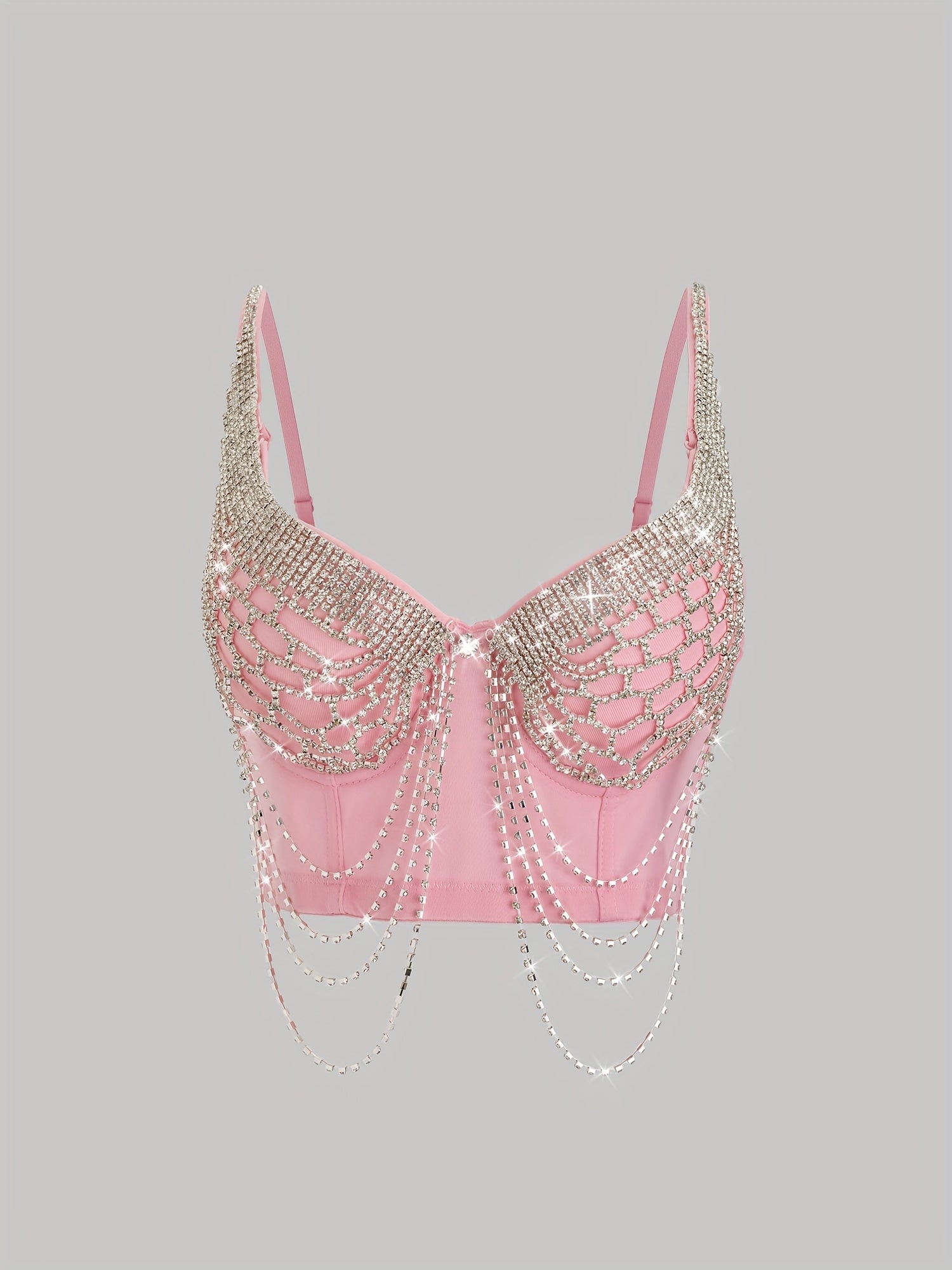 Women'S Glittery Orange Mesh Top with Tassels - Sexy V-Neck, Sleeveless Crop Tank for Casual or Party Wear, All-Season Fashion, Party Attire|Vneck Top|Mesh Fabric