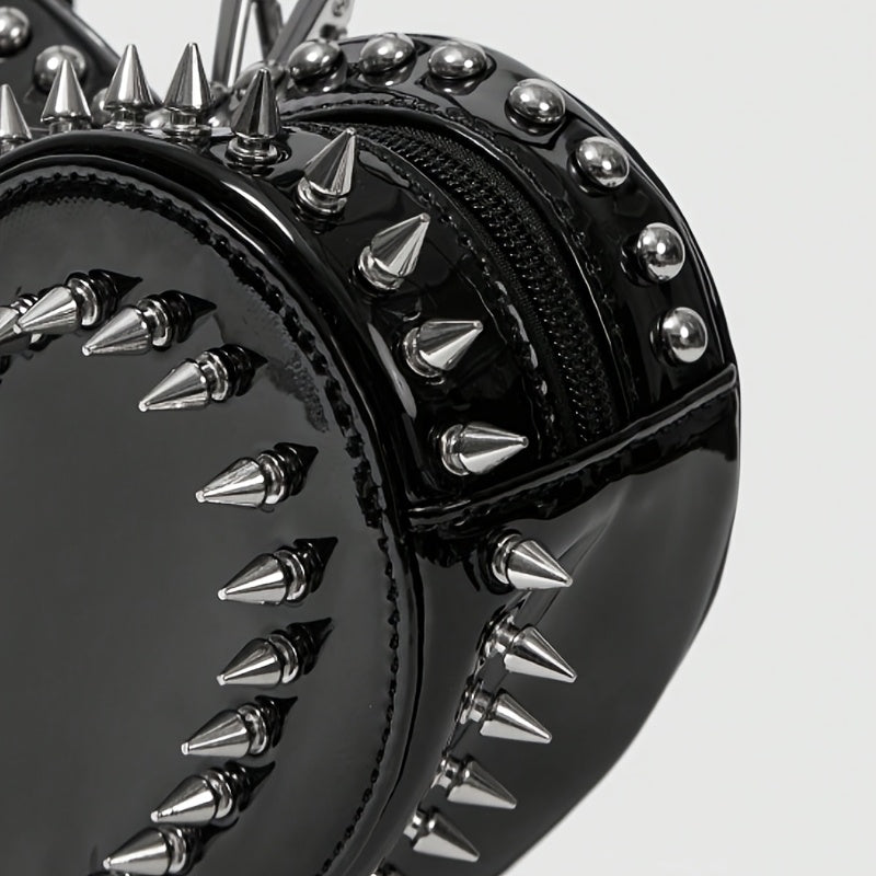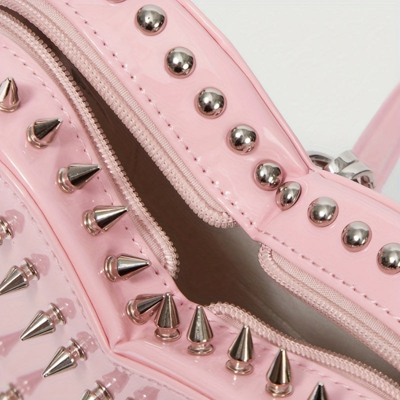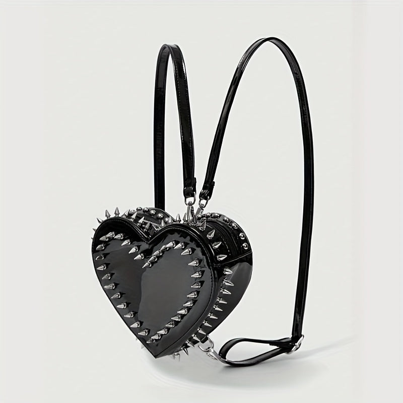 Women'S Punk Gothic Heart-Shaped Chain Backpack - Red Faux Leather with Metallic Studded Design, Adjustable Straps & Zipper Closure, Casual Daypack for Casual Attire, Casual Daypack | Punk Style Backpack | Metallic Studded Ba
