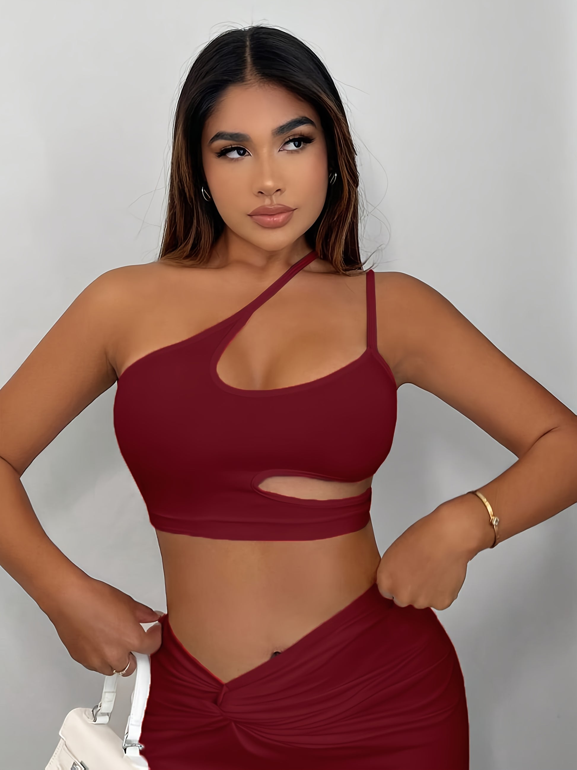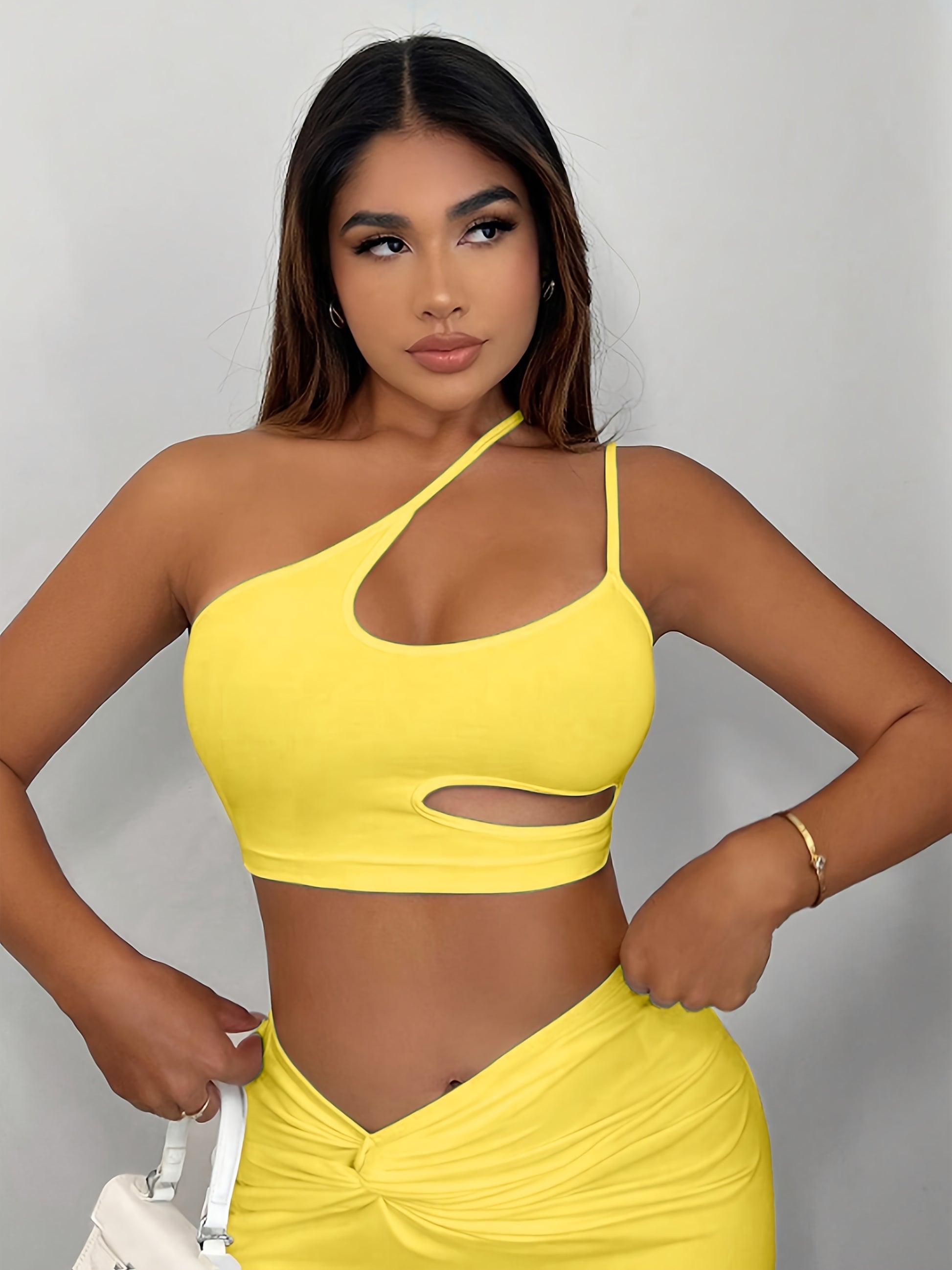 Women'S Sexy Neon Green One-Shoulder Cut-Out Crop Top - Stretchy Workout & Casual Wear, Perfect for Fitness, Parties, and Casual Attire, Fitness Apparel | Neon Green Top | Cutout Design, Gym Clothes