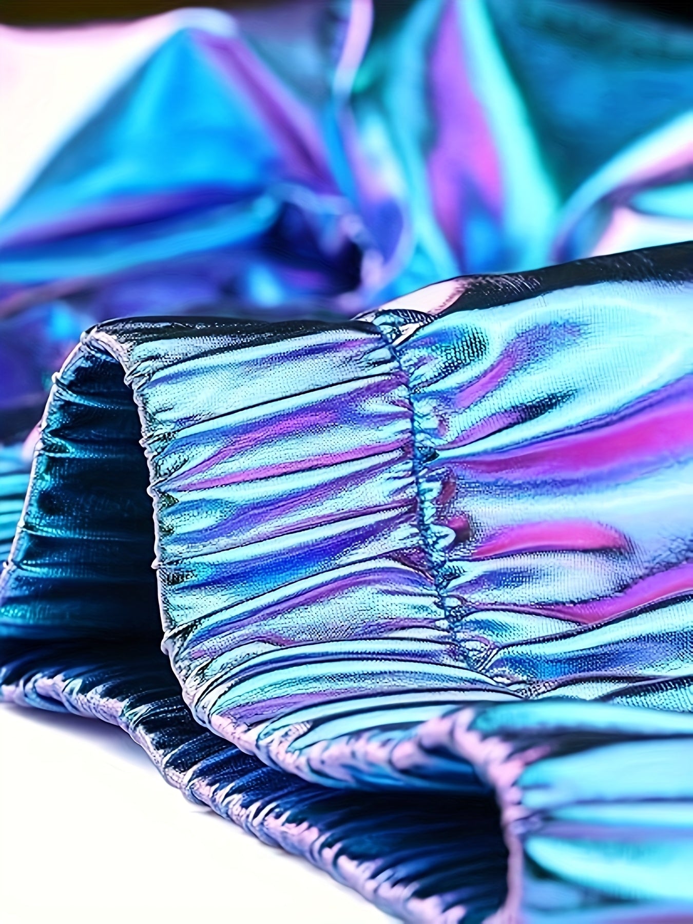 Women's Sexy Short-Length Hooded Sweatshirt - Long Sleeve Holographic Golden Metallic Pullover with Drawstring Hood, Stretchy Fabric for Gym Running Casual Wear, Spring/Autumn Fashion, Gym Hoodie, Seasonal Athletic Apparel, E