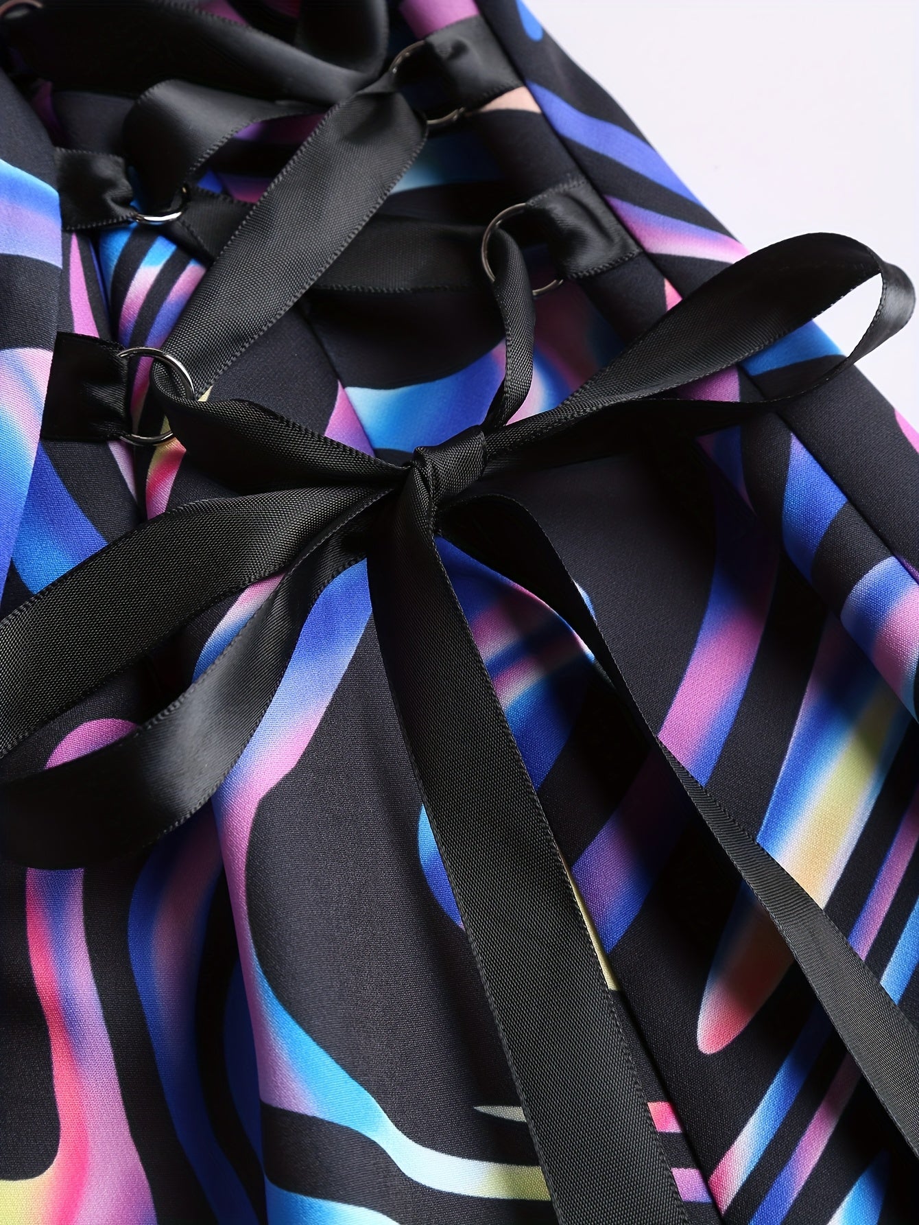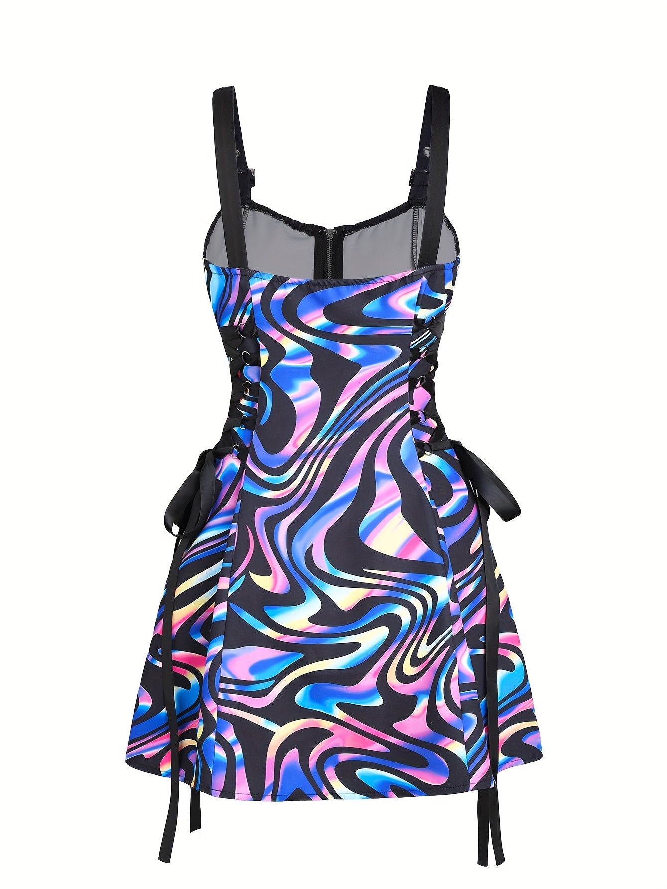 Women's Sleeveless Rainbow Striped Polyester Dress with Adjustable Straps and Front Zipper Closure - Casual Chic Design for All Seasons, Cute Dresses