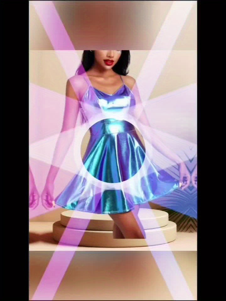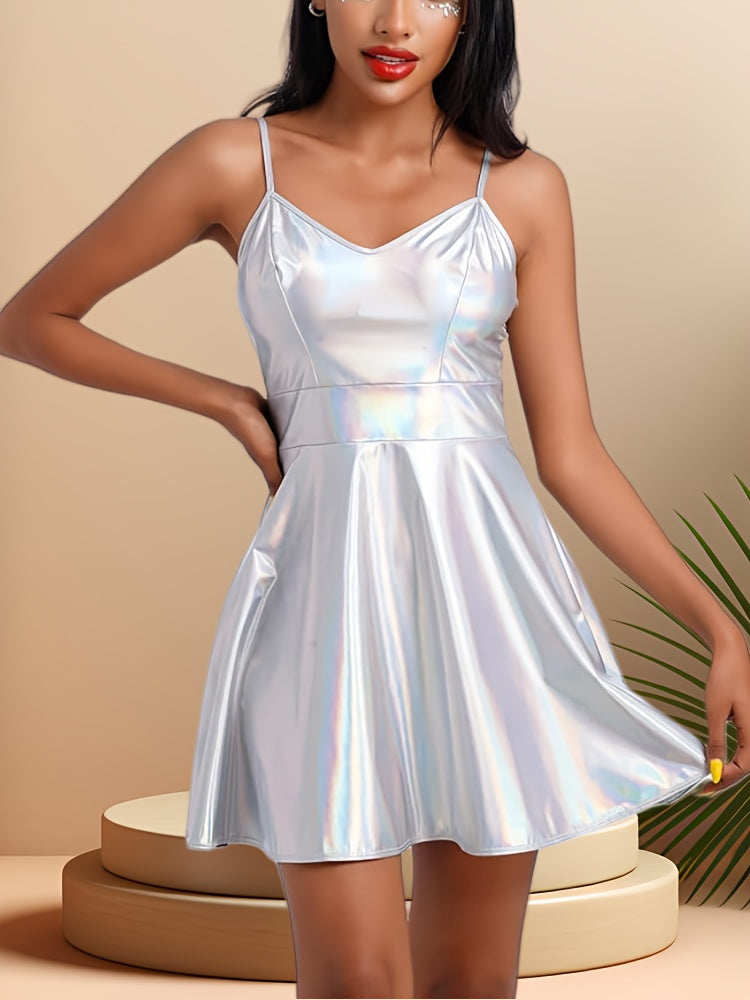 Women'S Sleeveless V-Neck High-Waisted Mini Dress - Shimmering Metallic Floral Print, Backless Party Dress with Flared Skirt, Perfect for Formal Events and Special Occasions, Formal Event Dress | Vneck Dress | Metallic Floral