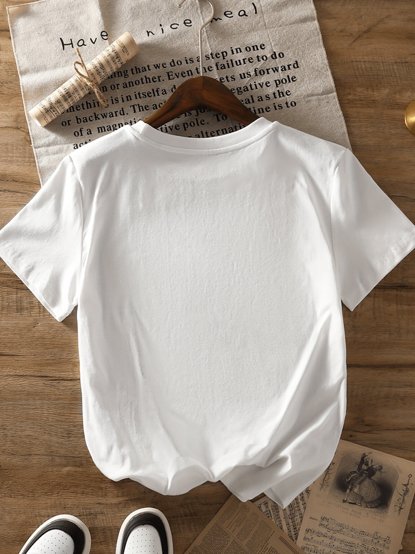 Women's Slim Fit RAVE Graphic T-Shirt - White Casual Short Sleeve Round Neck Polyester Top with Vibrant Pink & Blue Lettering, Machine Washable for Casual Attire & Parties, Party Outfit, Modern Aesthetic, Smooth Texture