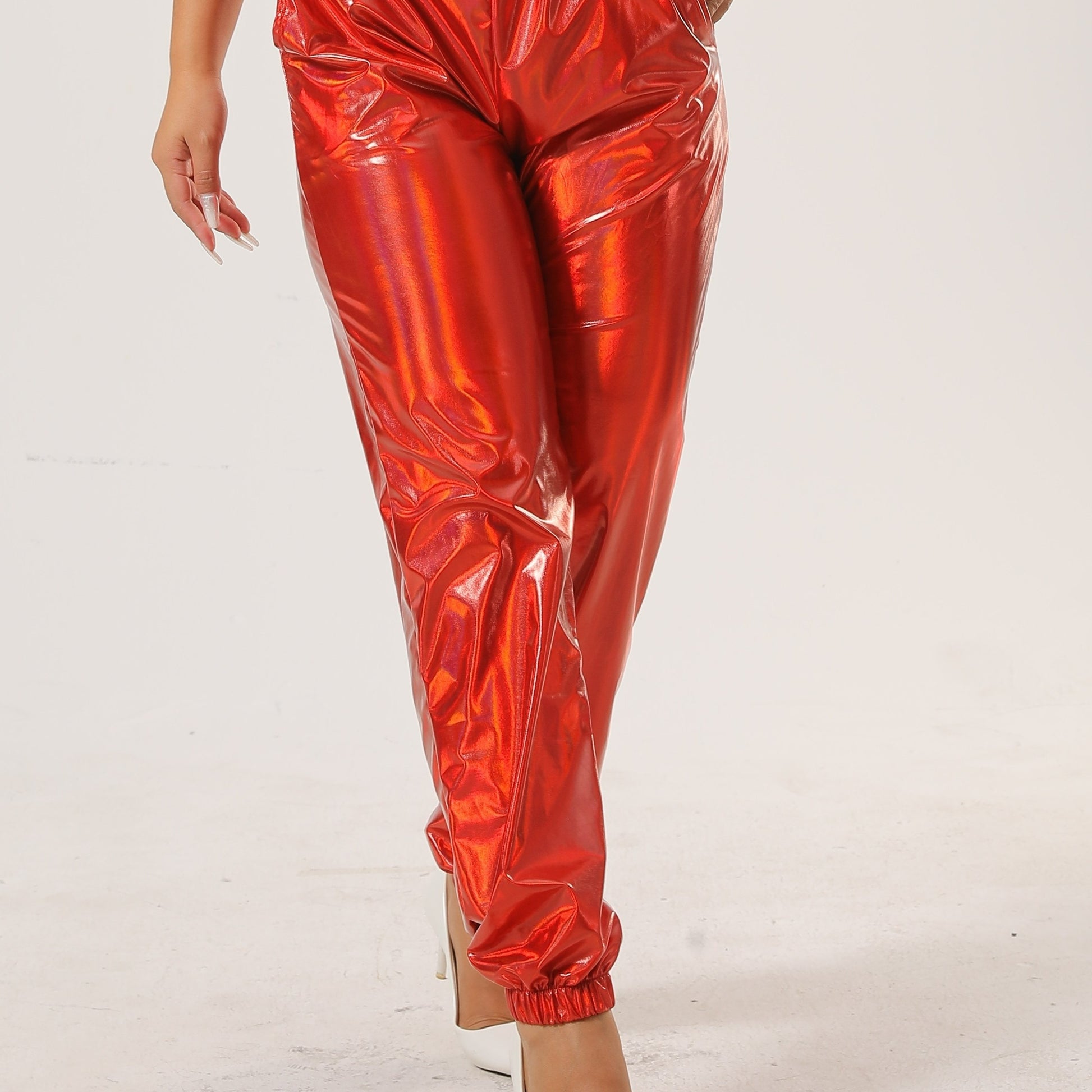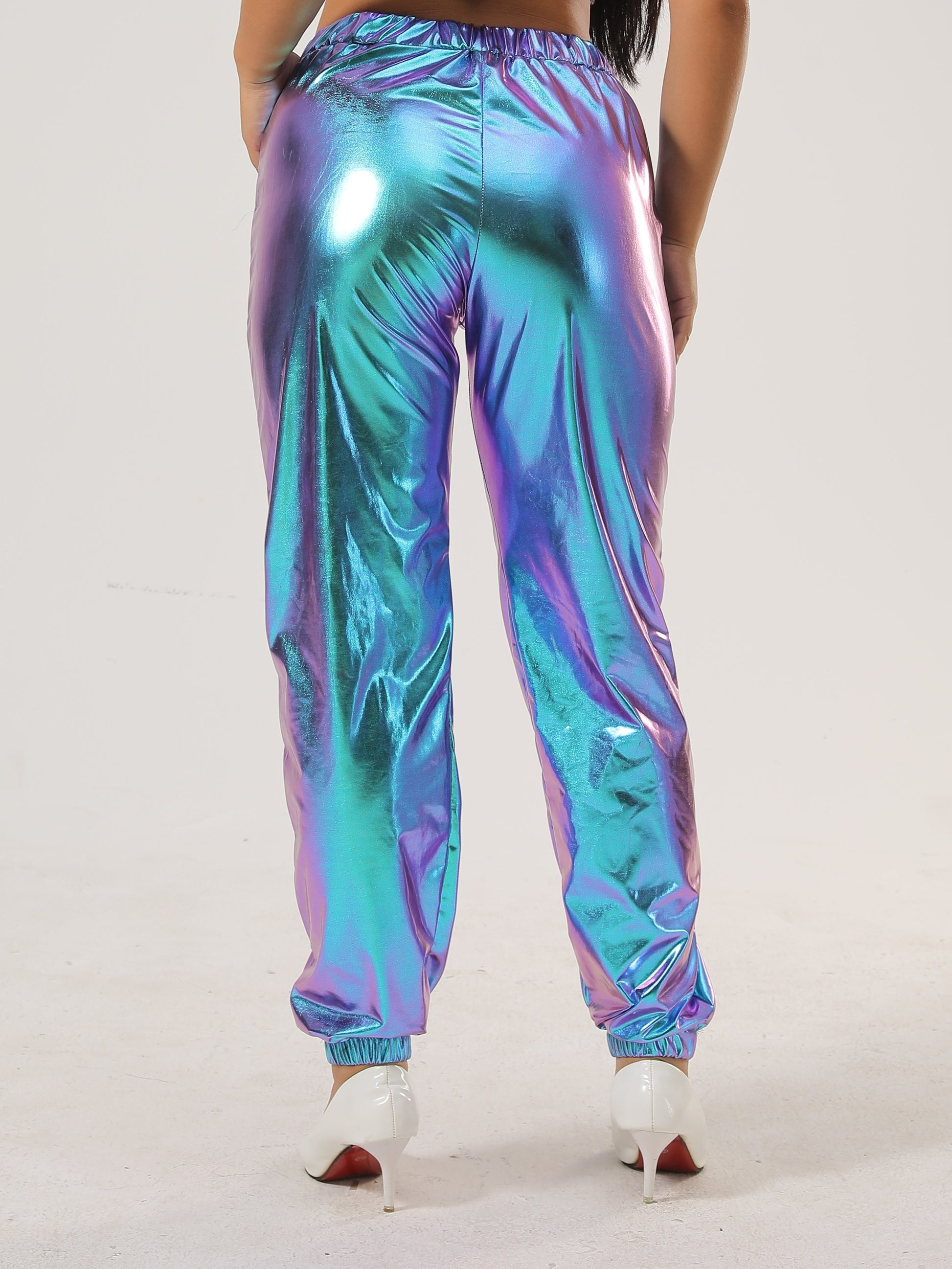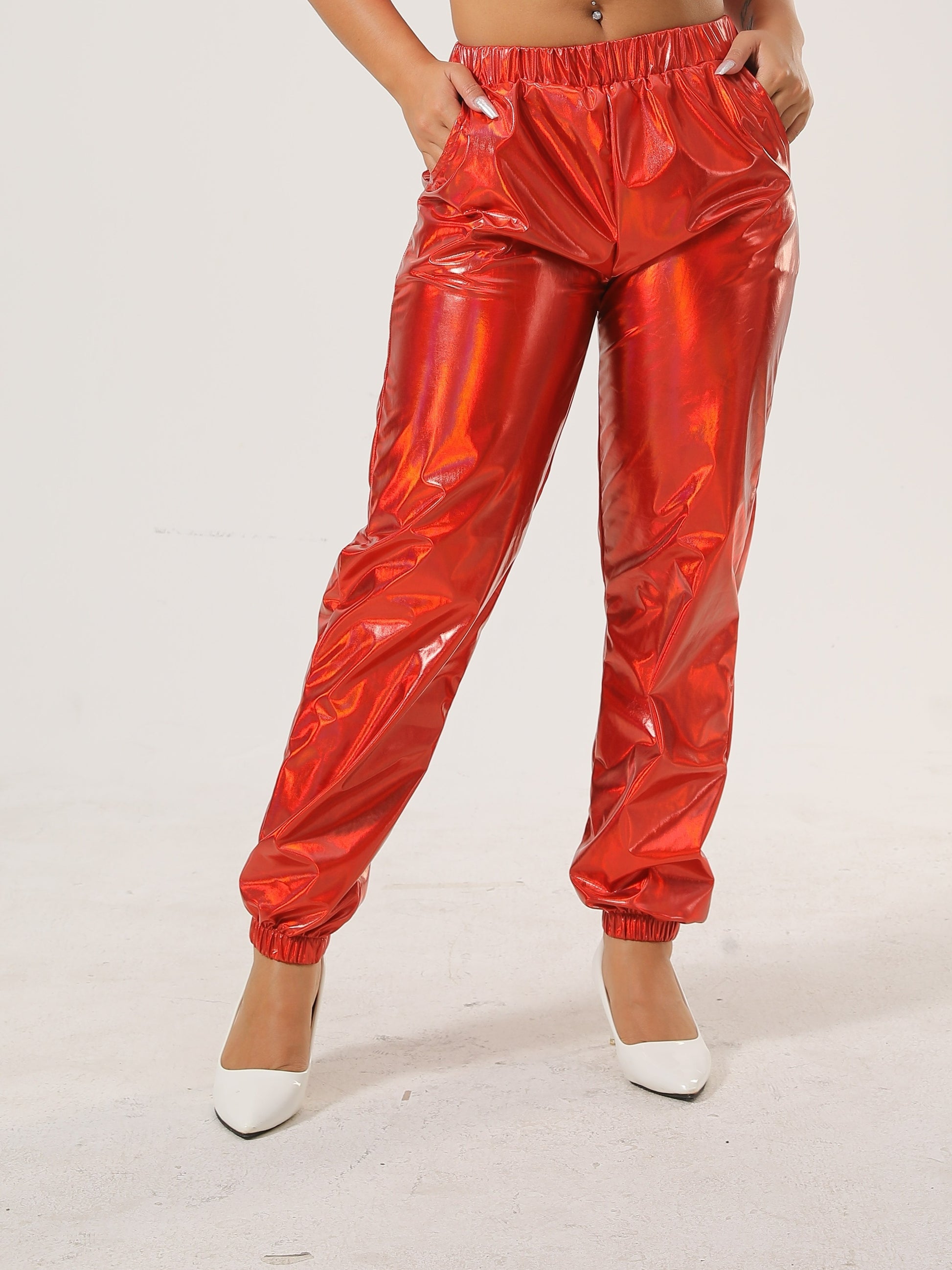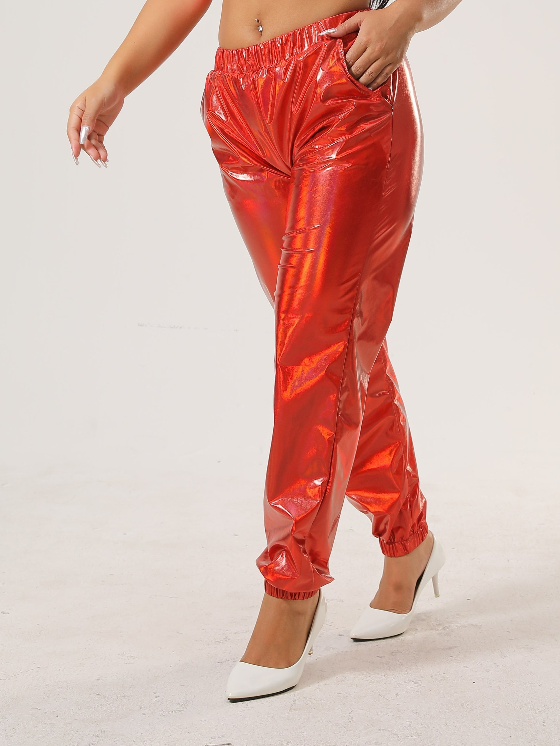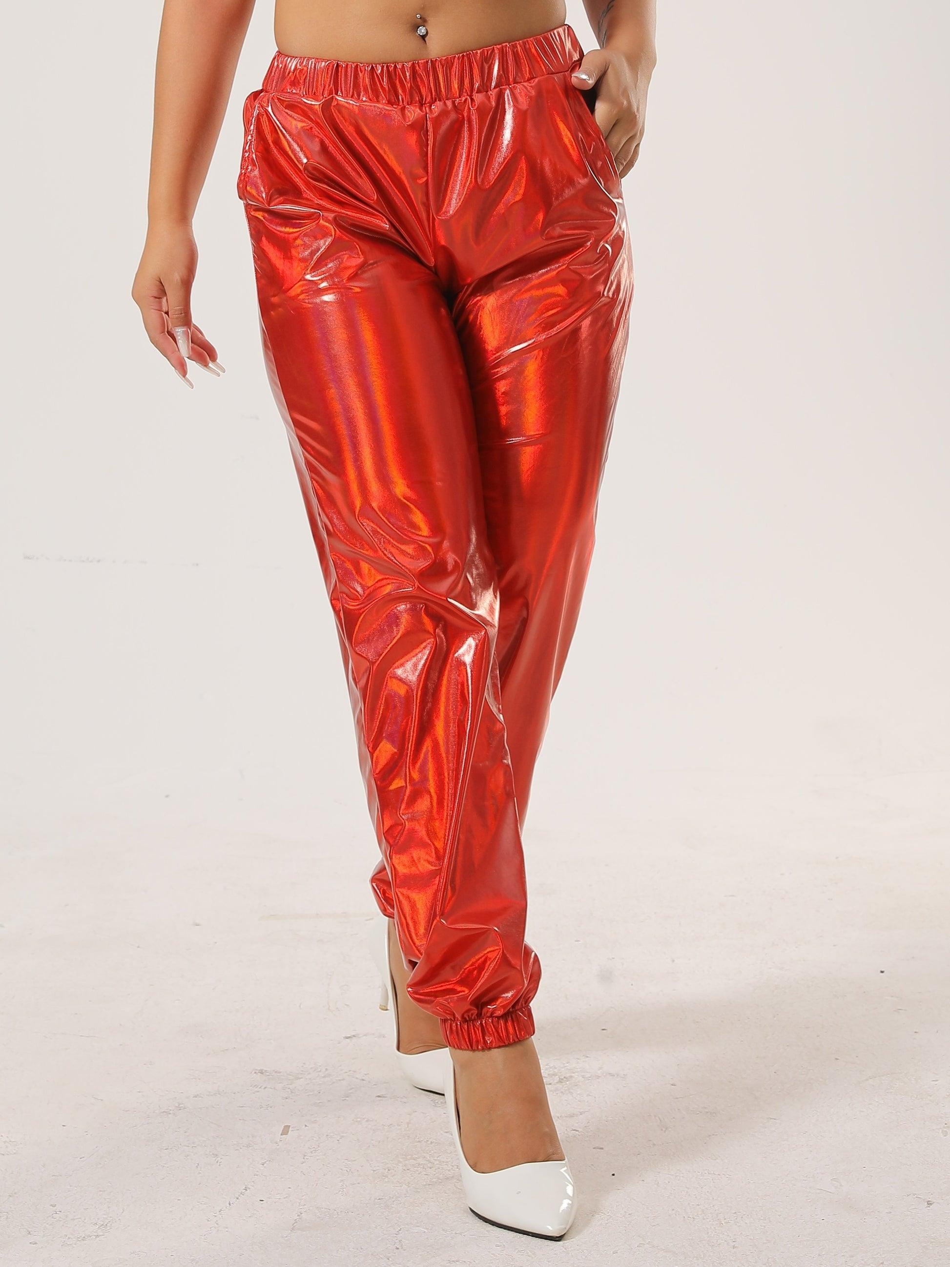 Women's Vibrant Purple Casual Tapered Leggings with Elastic Waistband & Side Pockets - Medium-Stretch All-Season Comfort for Lounge, Workouts & Casual Attire, Leggings, Lounge Wear, Fashionable Jogger Style, Medium Elasticity