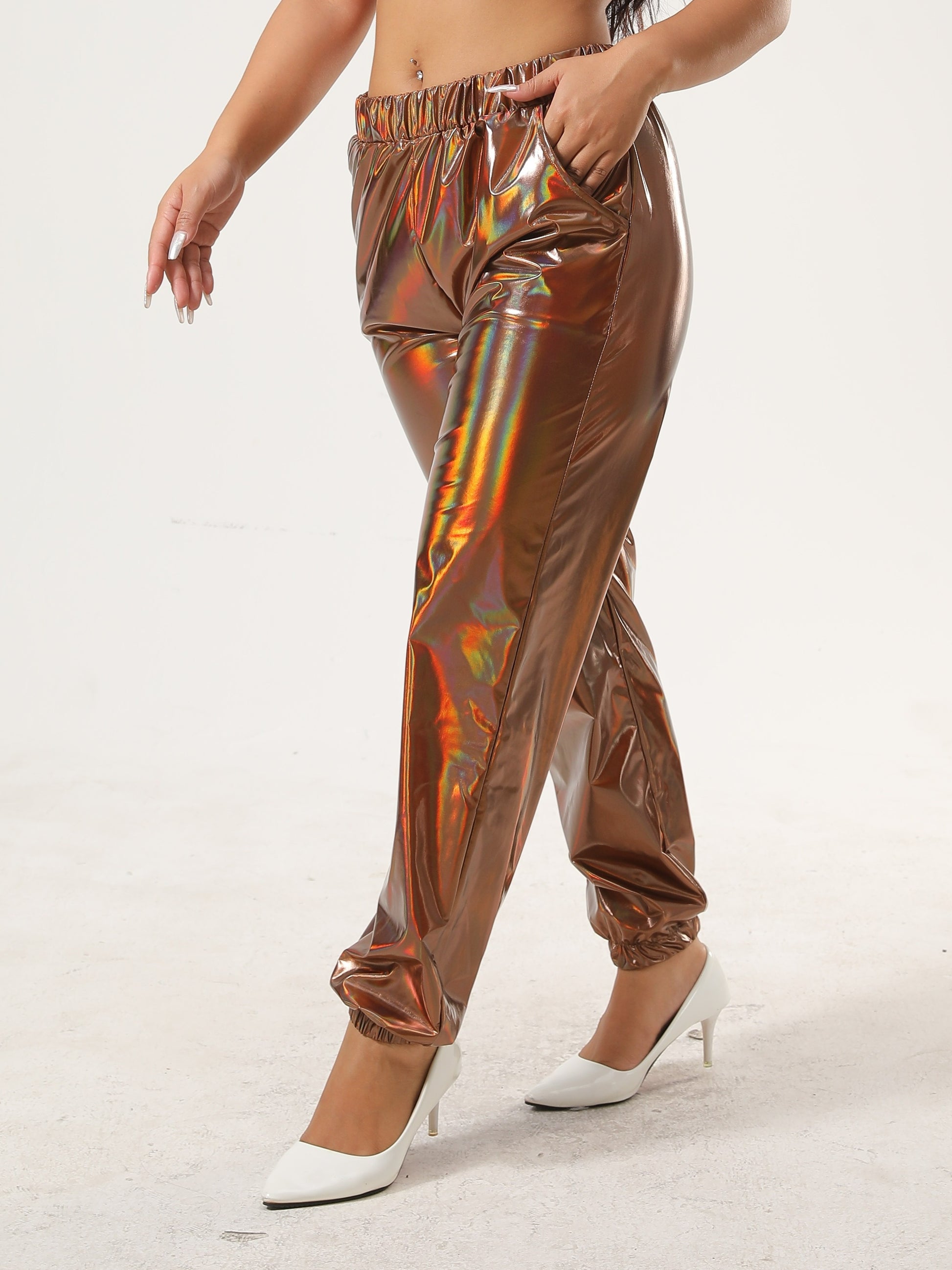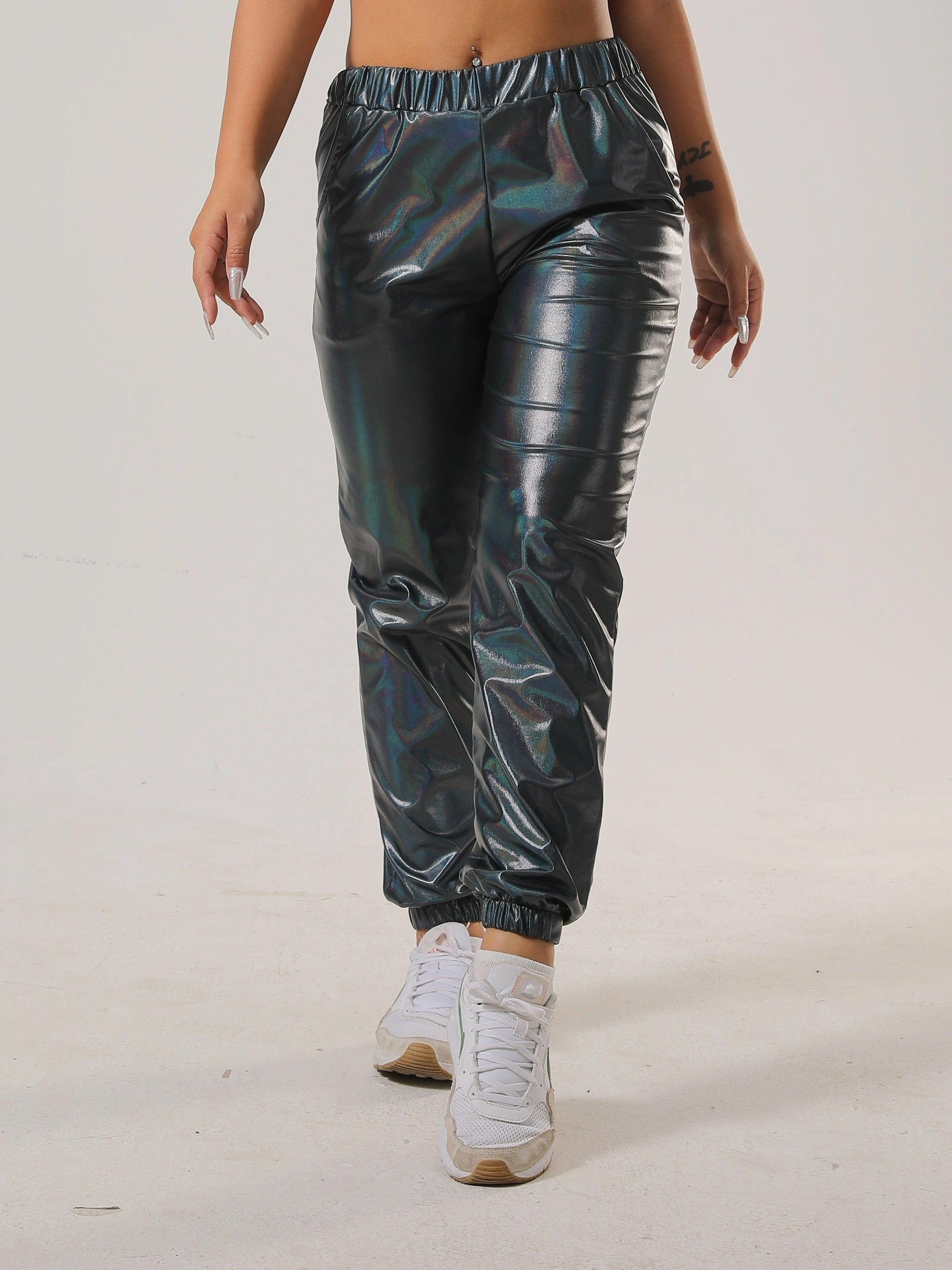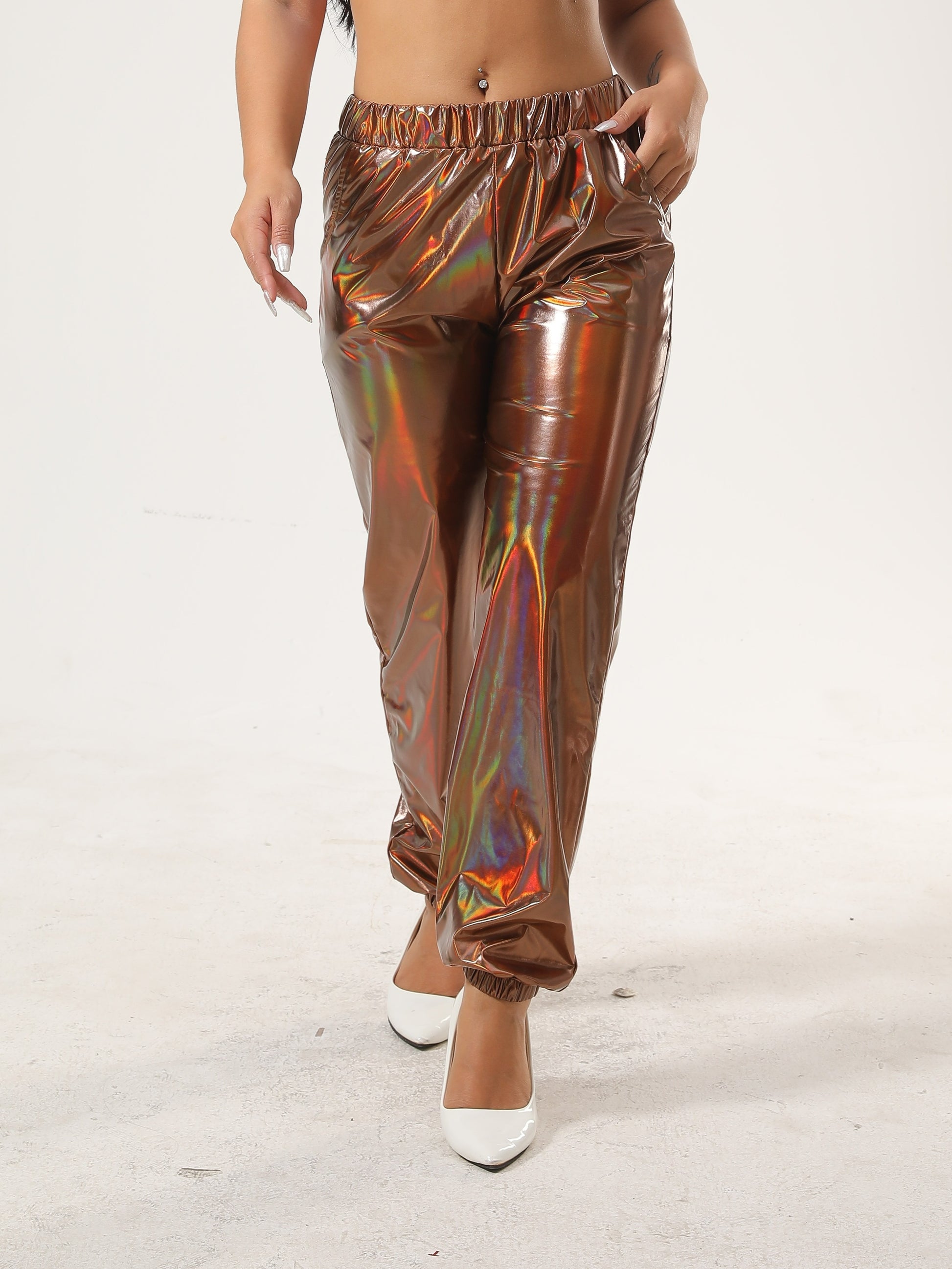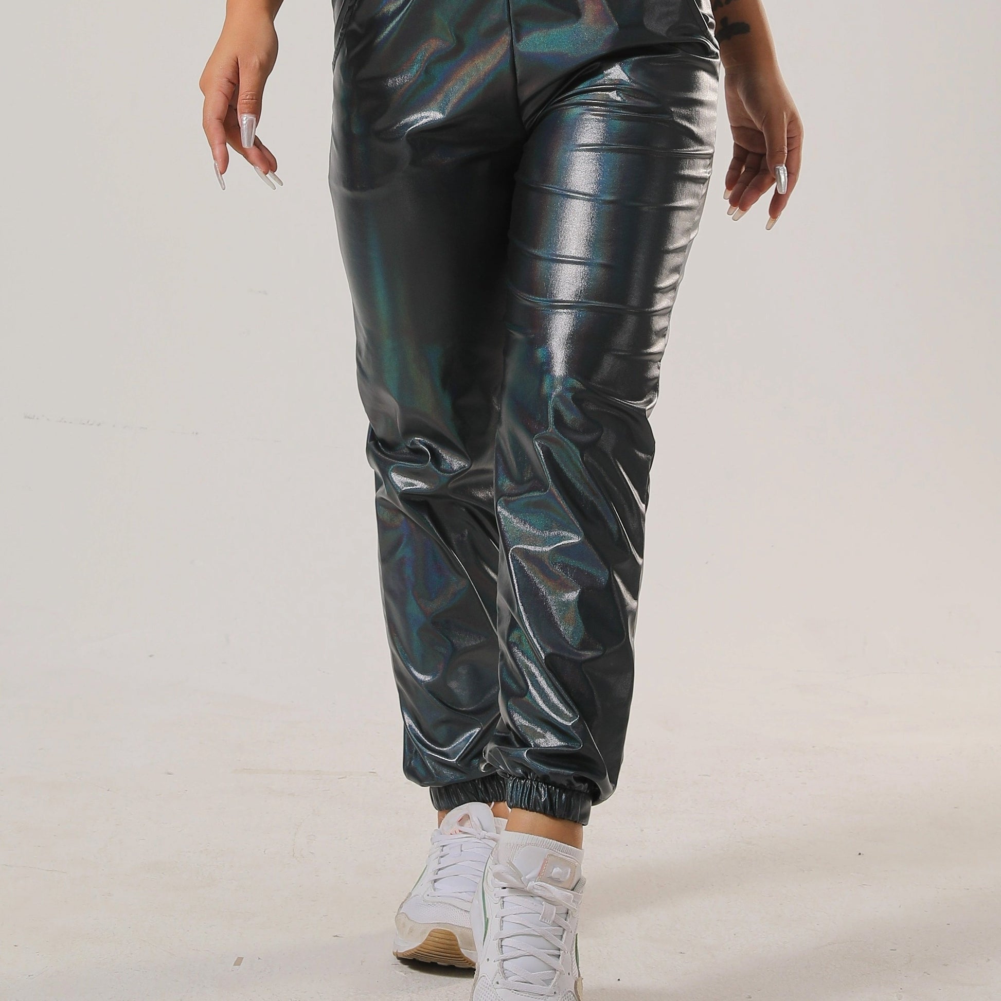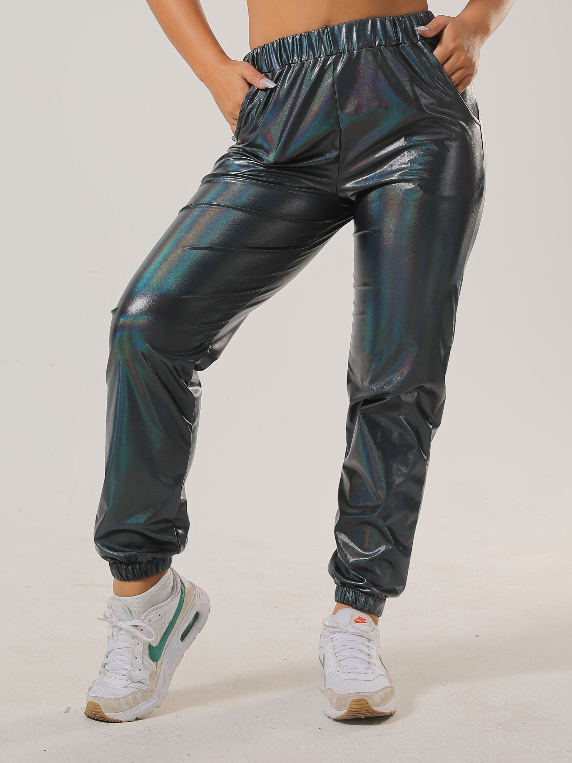 Women's Vibrant Purple Casual Tapered Leggings with Elastic Waistband & Side Pockets - Medium-Stretch All-Season Comfort for Lounge, Workouts & Casual Attire, Leggings, Lounge Wear, Fashionable Jogger Style, Medium Elasticity