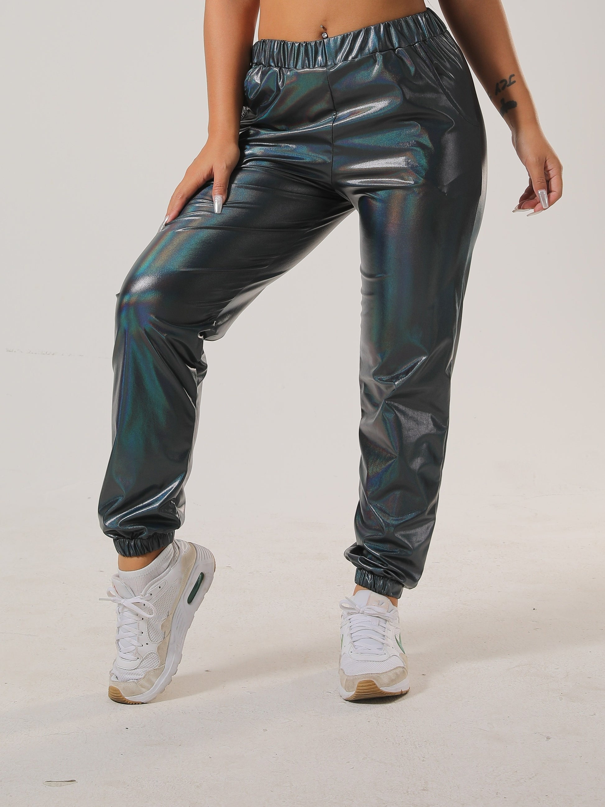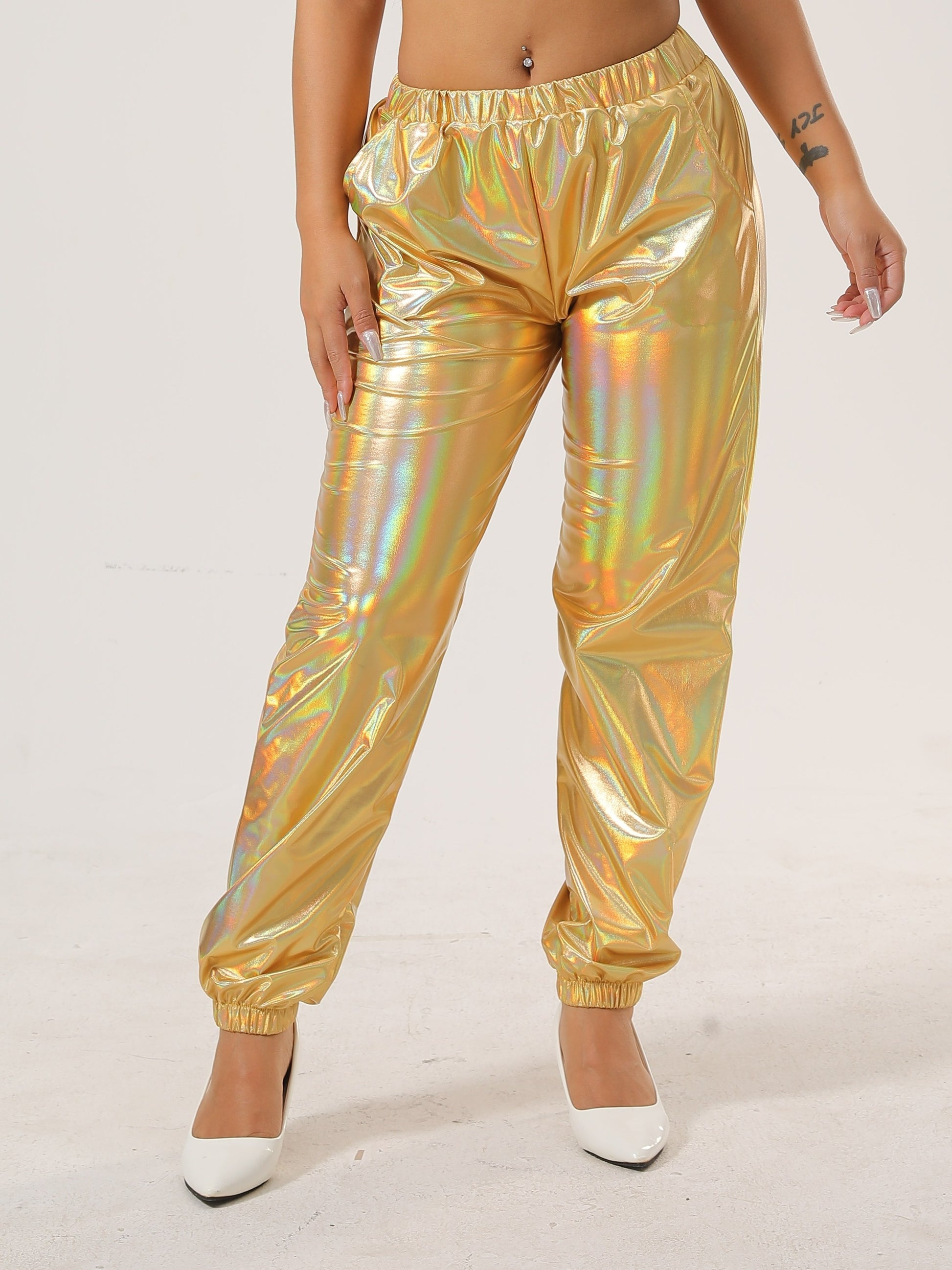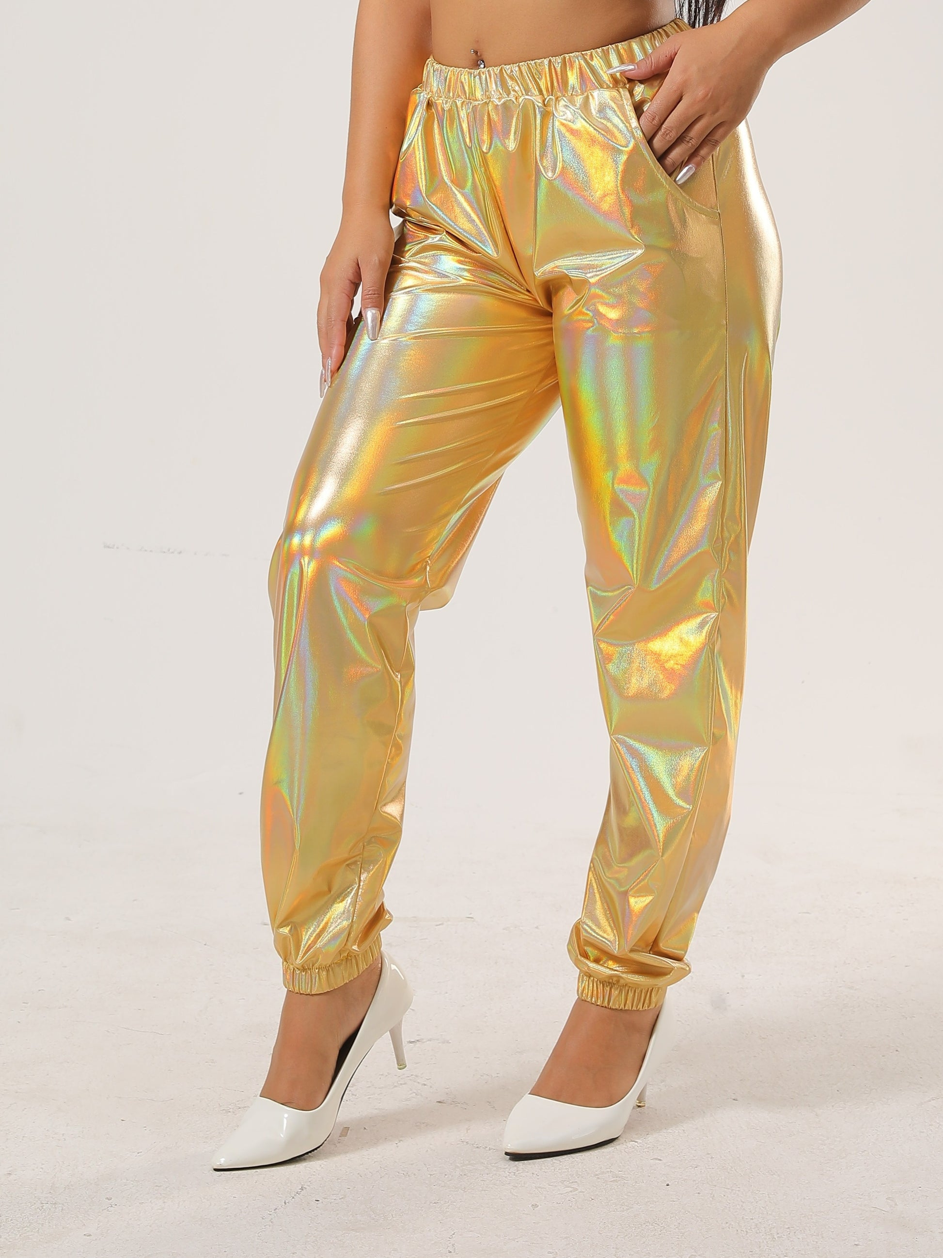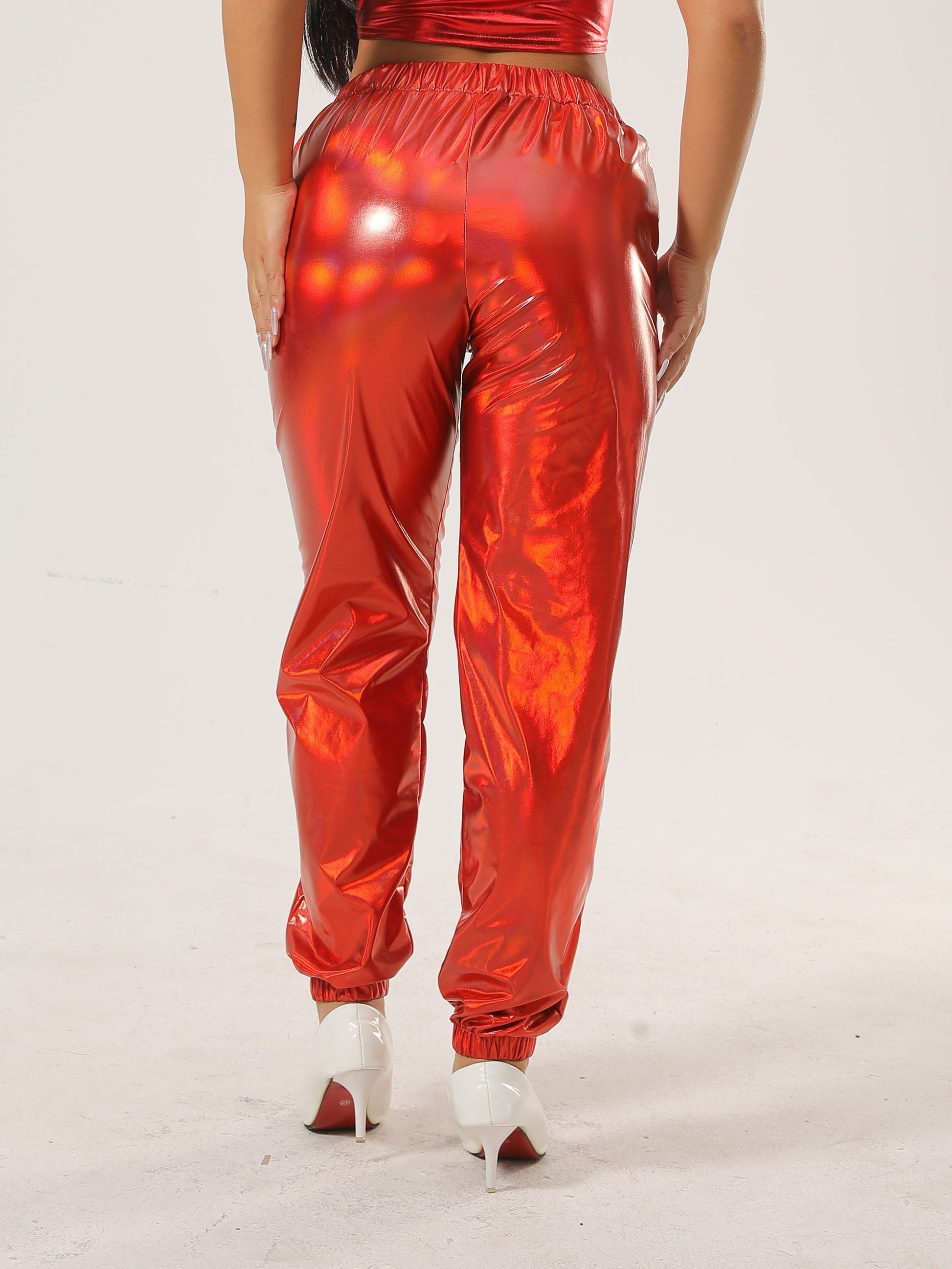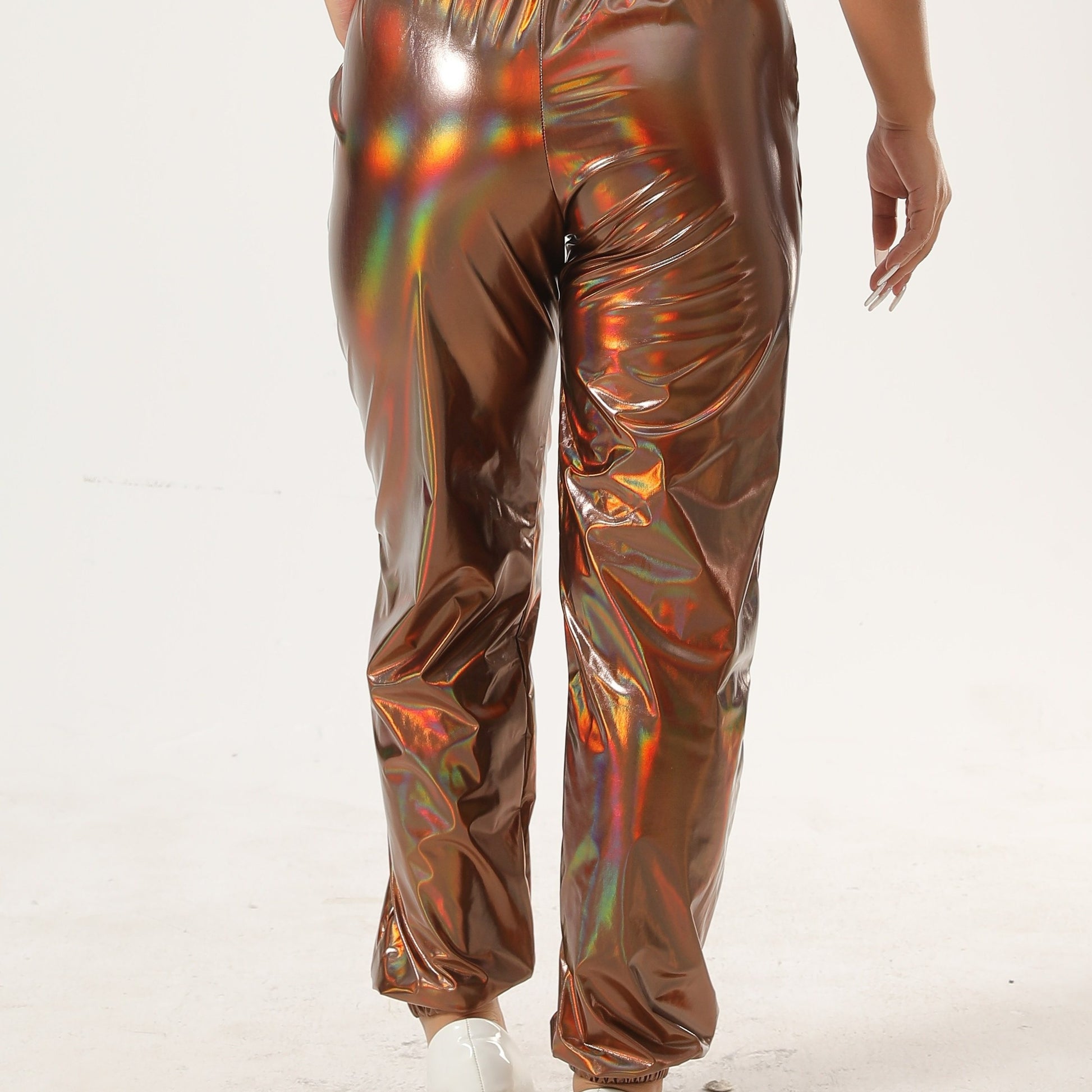 Women's Vibrant Purple Casual Tapered Leggings with Elastic Waistband & Side Pockets - Medium-Stretch All-Season Comfort for Lounge, Workouts & Casual Attire, Leggings, Lounge Wear, Fashionable Jogger Style, Medium Elasticity